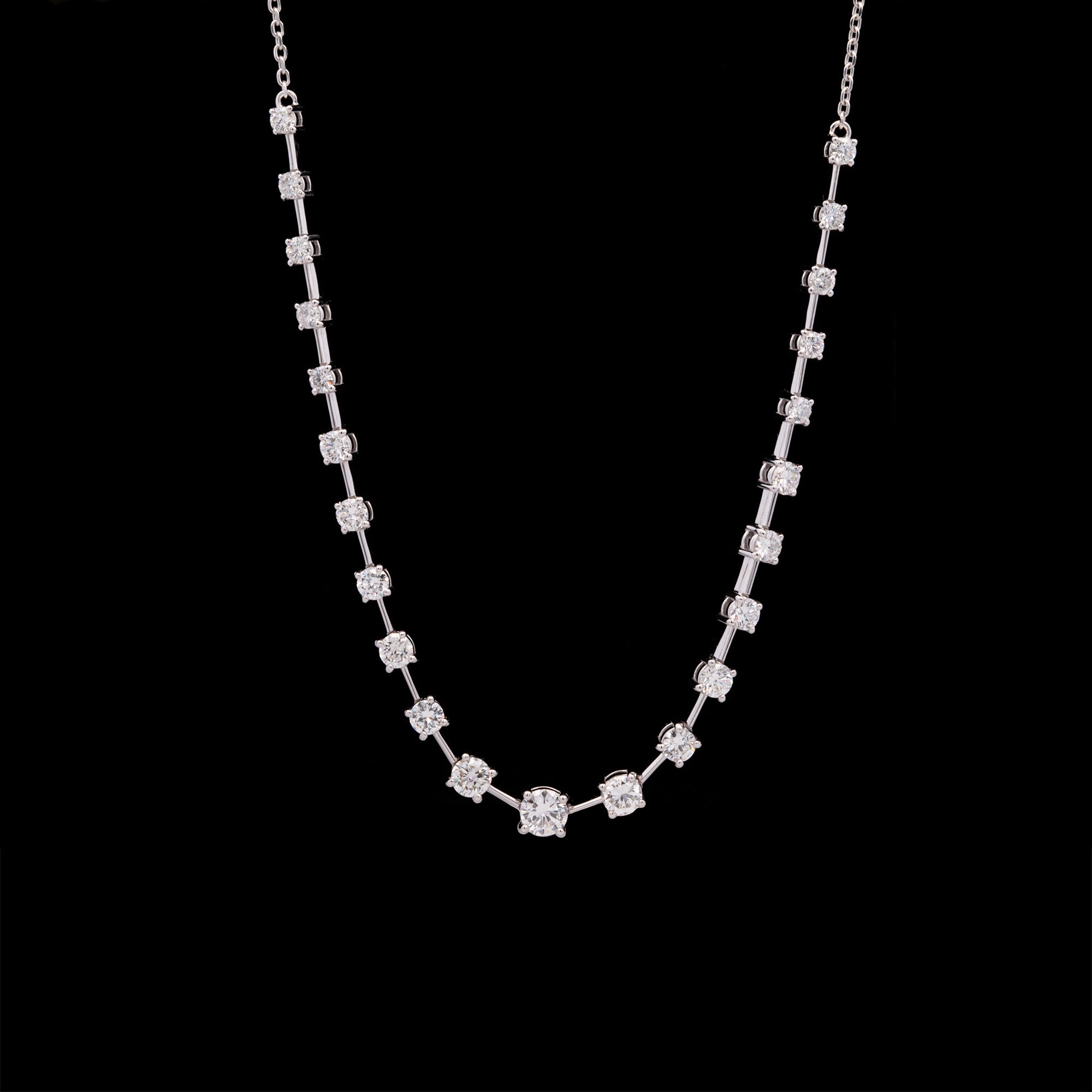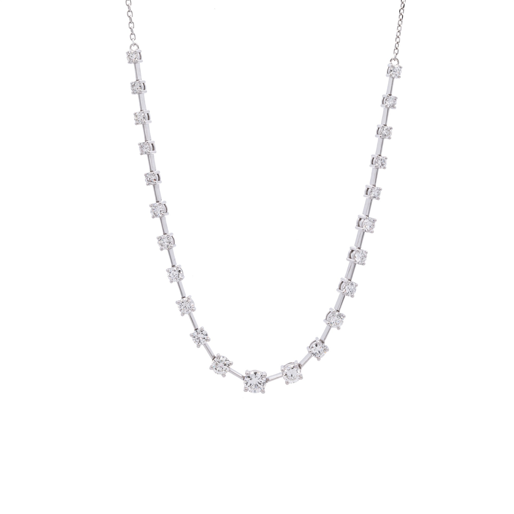 14K White Gold Graduated Diamond Necklace, 17 Inches. Twenty-Three Diamonds Weigh A Total Of 3.02 Carats.