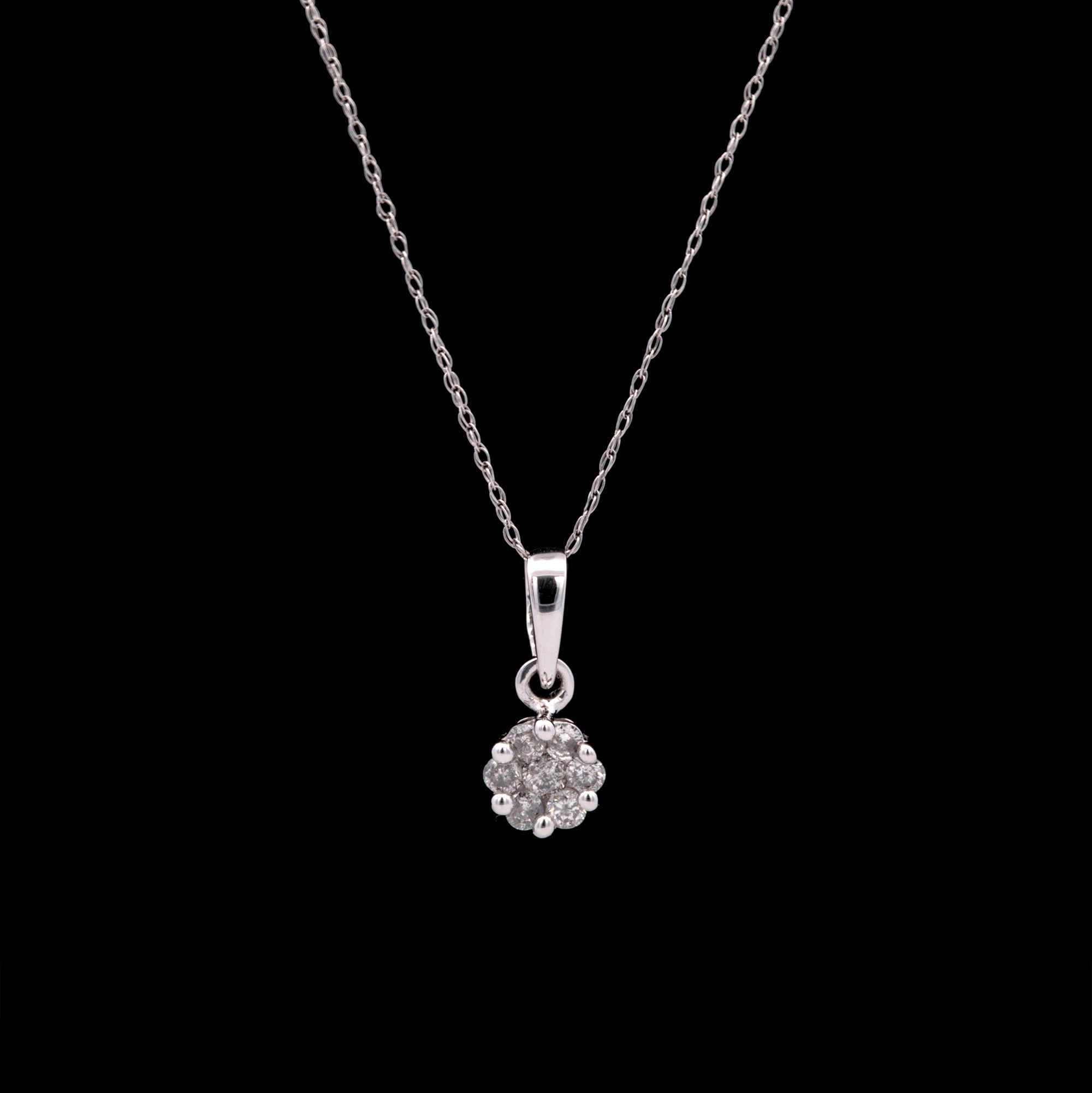 14K White Gold Illusion Set Diamond Pendant With 18 Inch Chain. Diamonds Weigh a Total Of 0.25 Carats.