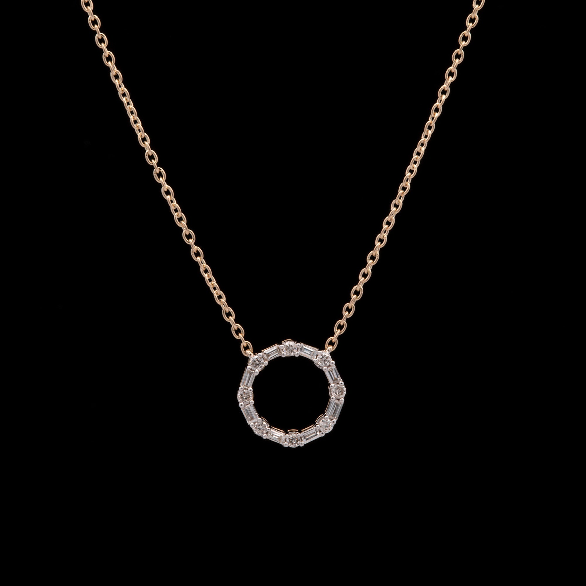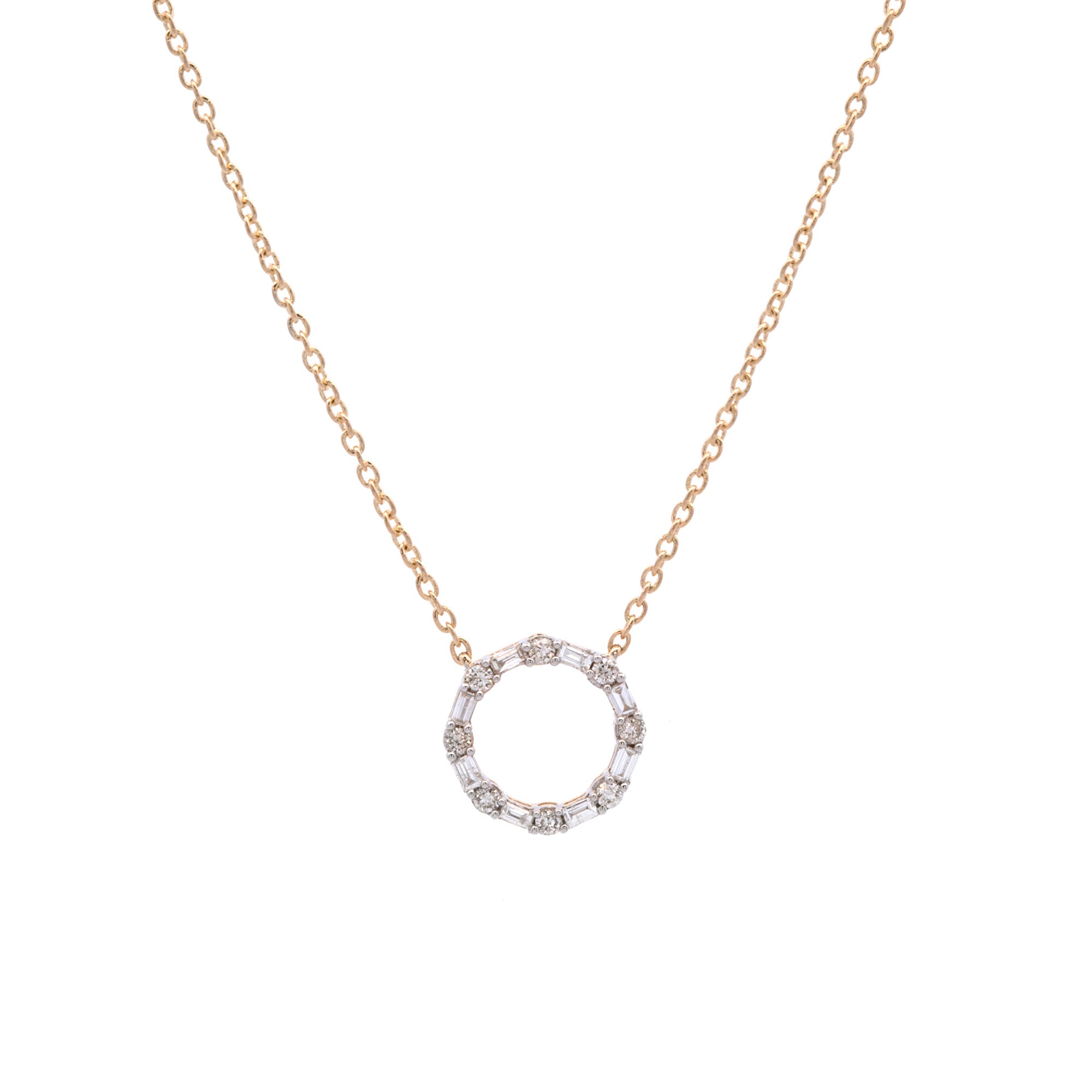 14K Yellow Gold Baguette And Round Diamond Circle Necklace, 18 Inches