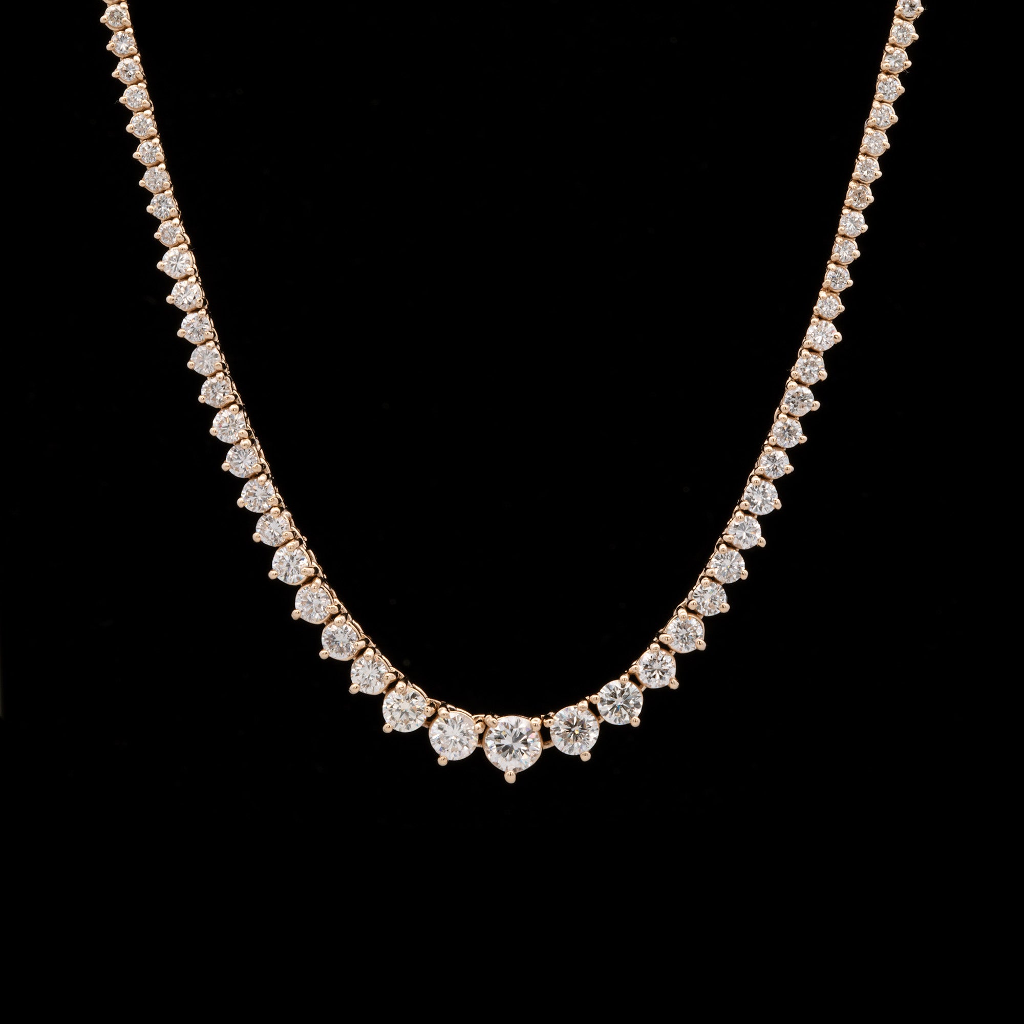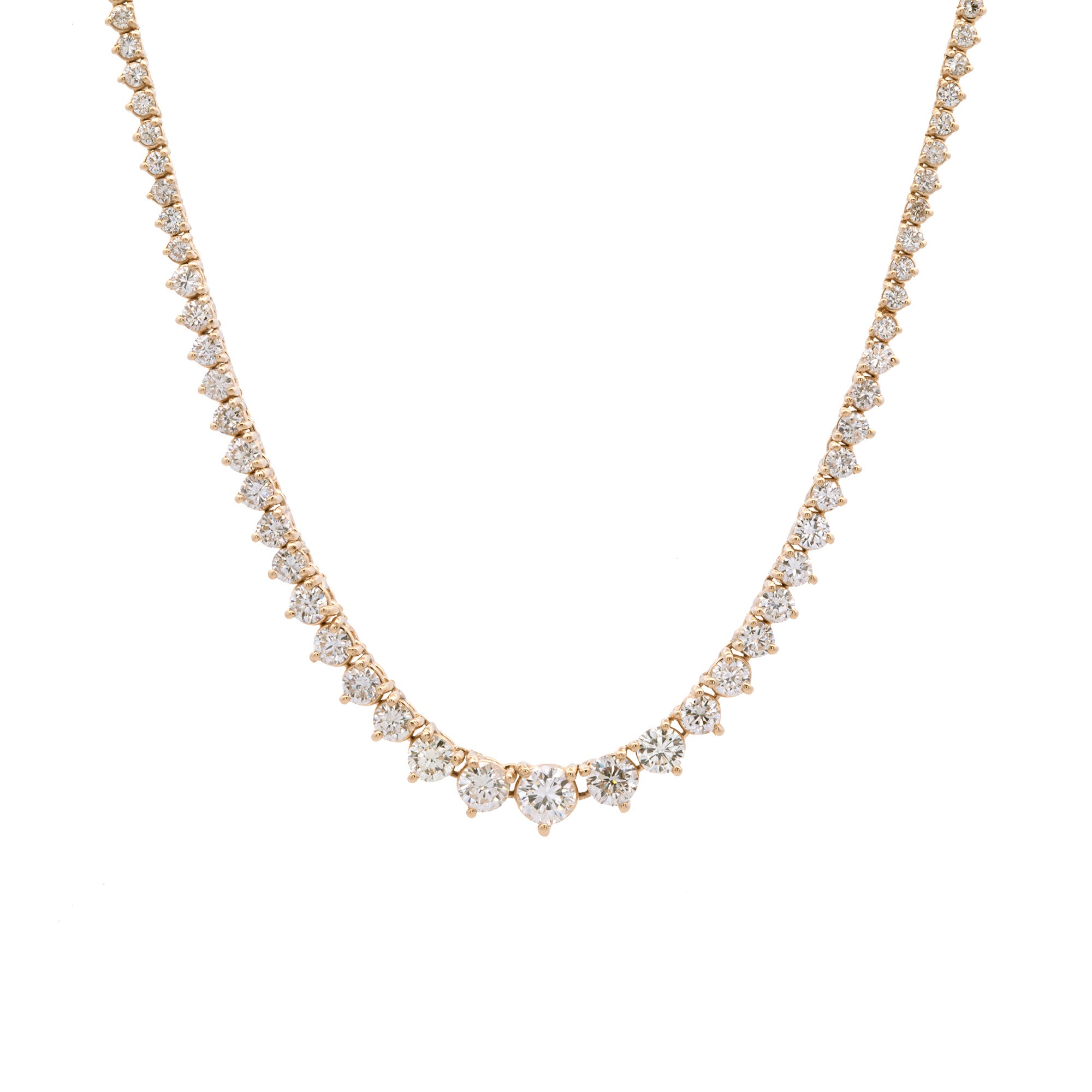 14K Yellow Gold Graduated 5.36ctw Diamond Line Necklace. Two Hundred Five Diamonds Weigh A Total Of 5.36 Carats And Have F-G Color, VS2 Clarity.