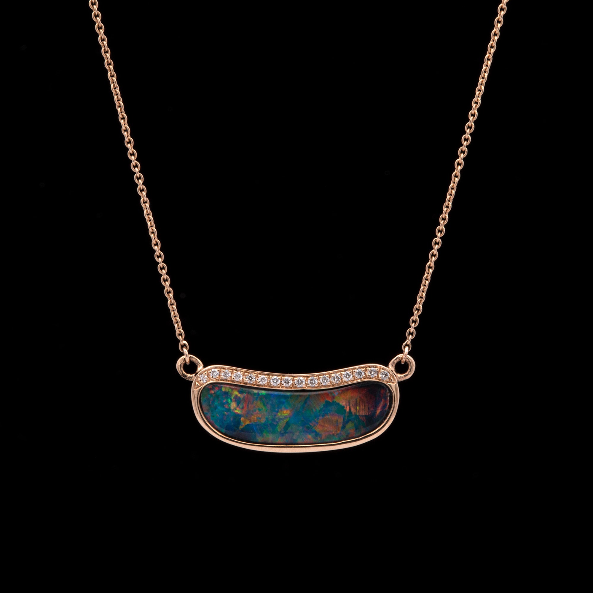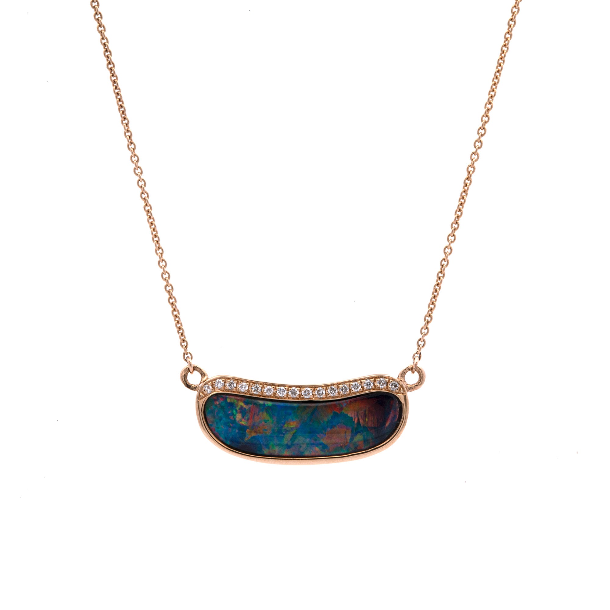 14K Yellow Gold Opal Necklace With Diamond Accents.