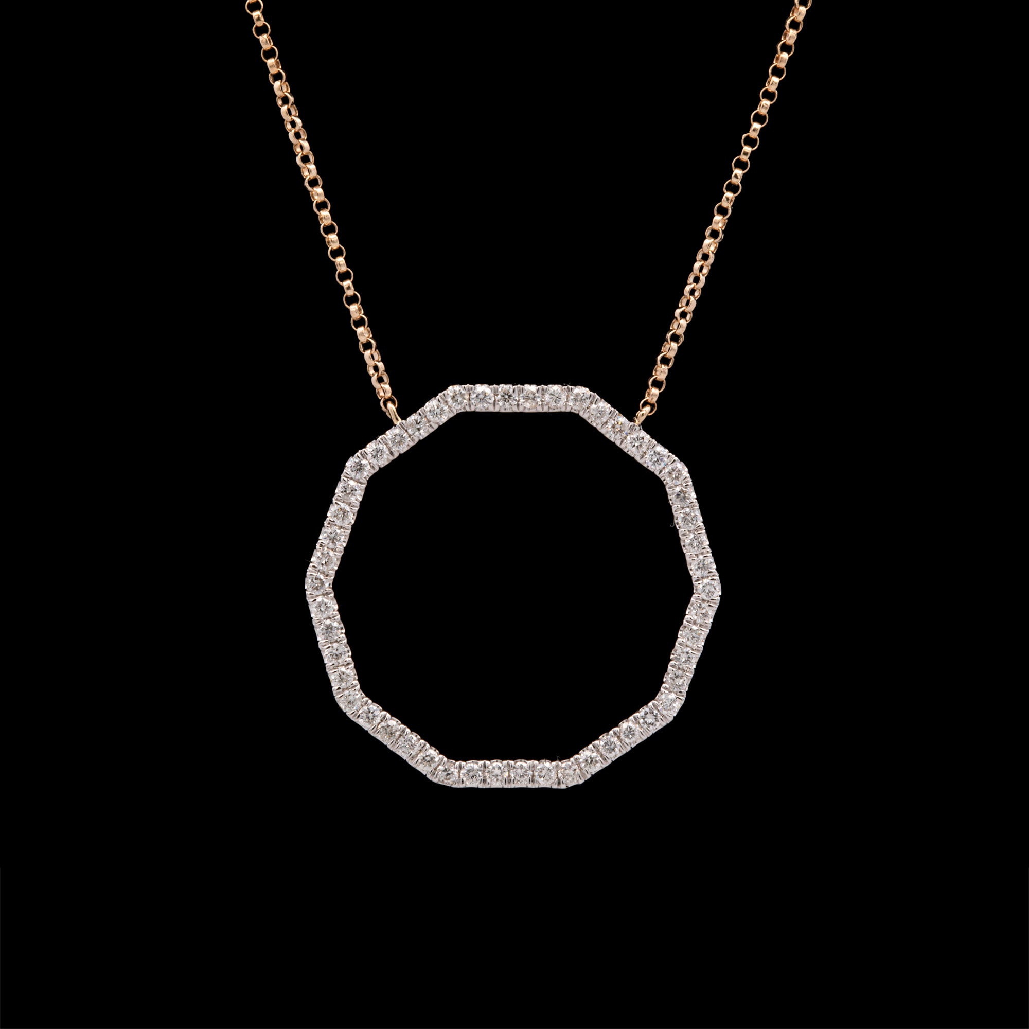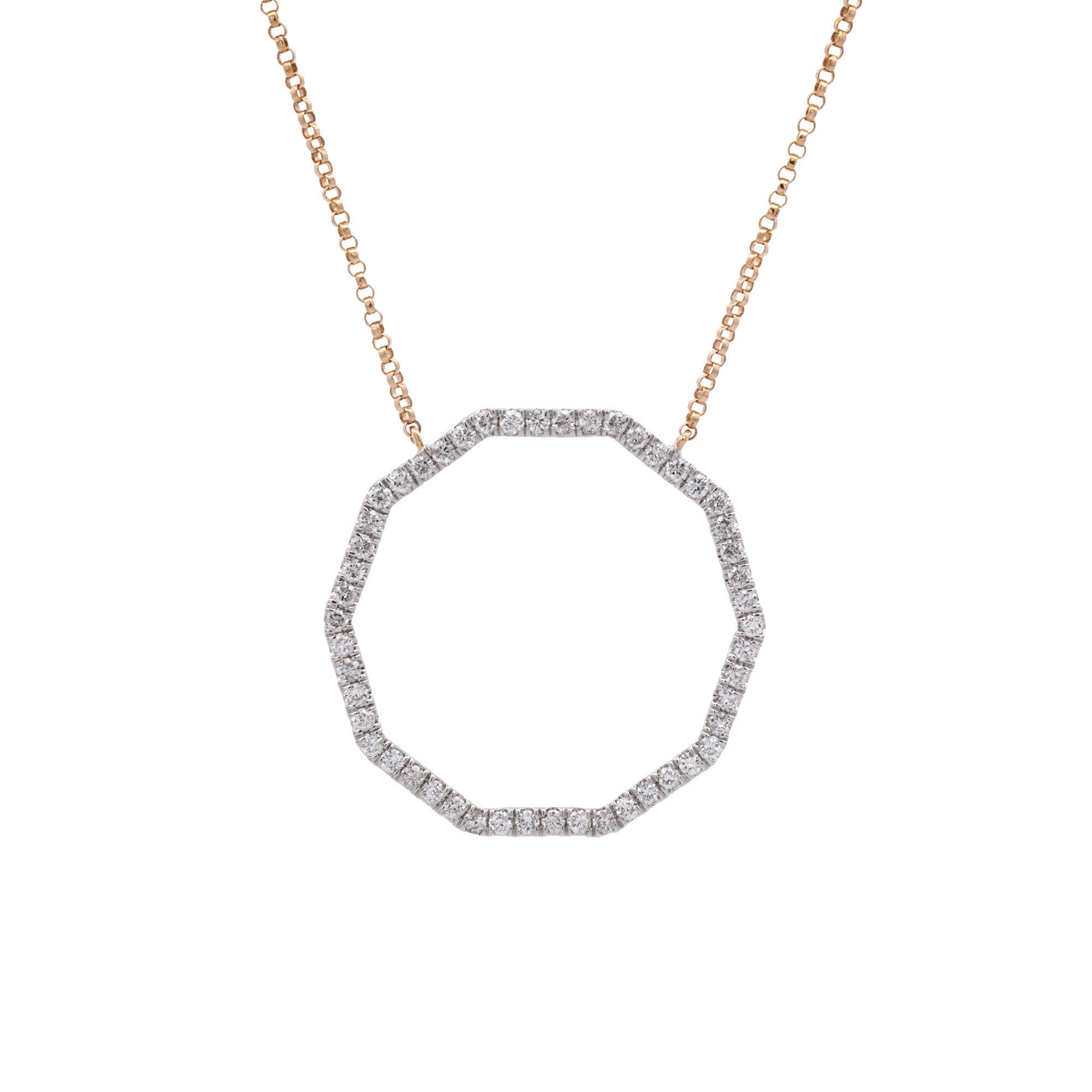 14K Yellow Gold Open Octagon Diamond Necklace, 18 Inches