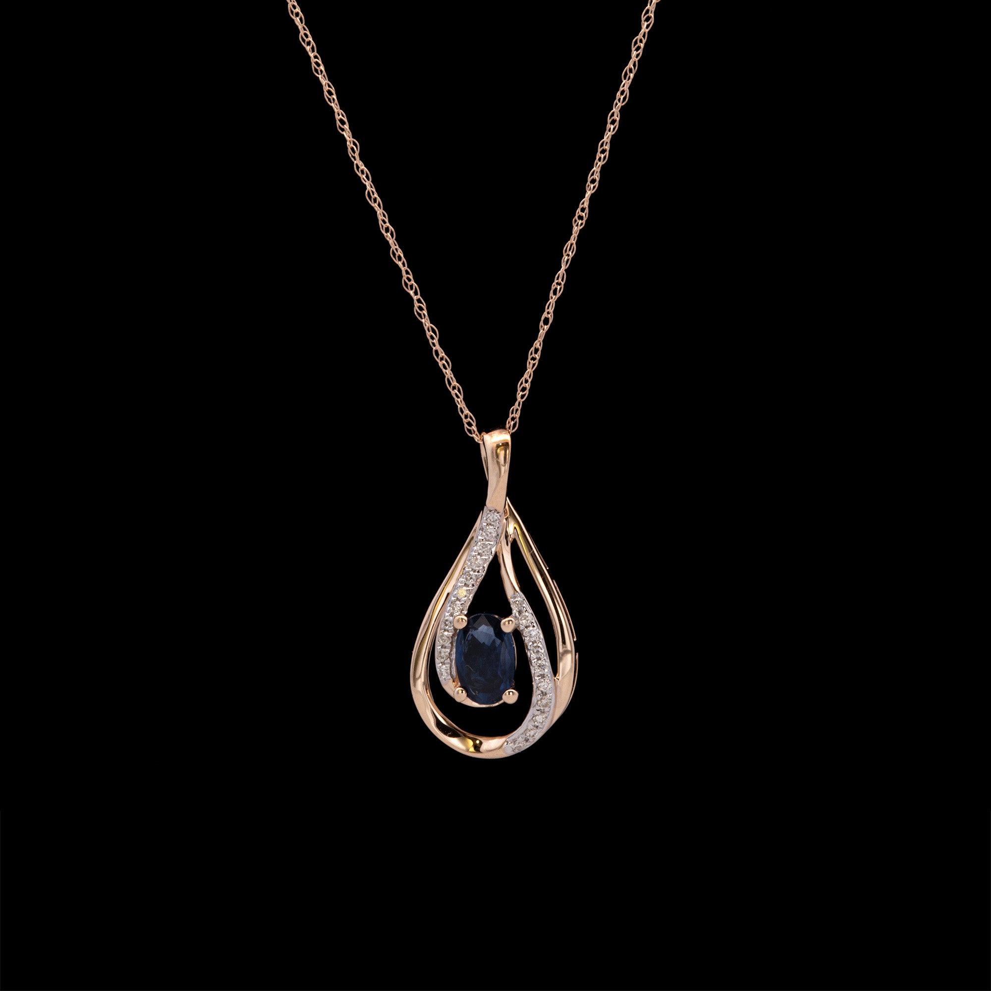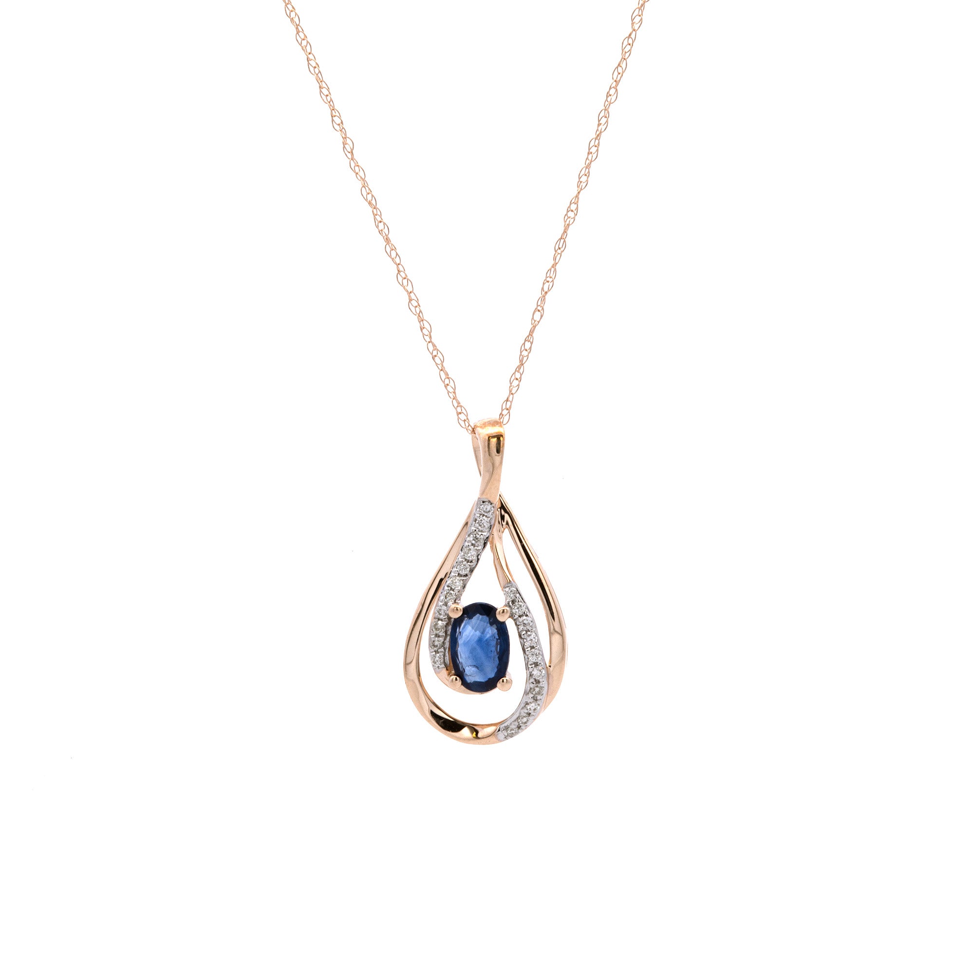 14K Yellow Gold Sapphire And Diamond Teardrop Pendant With 18 Inch Chain