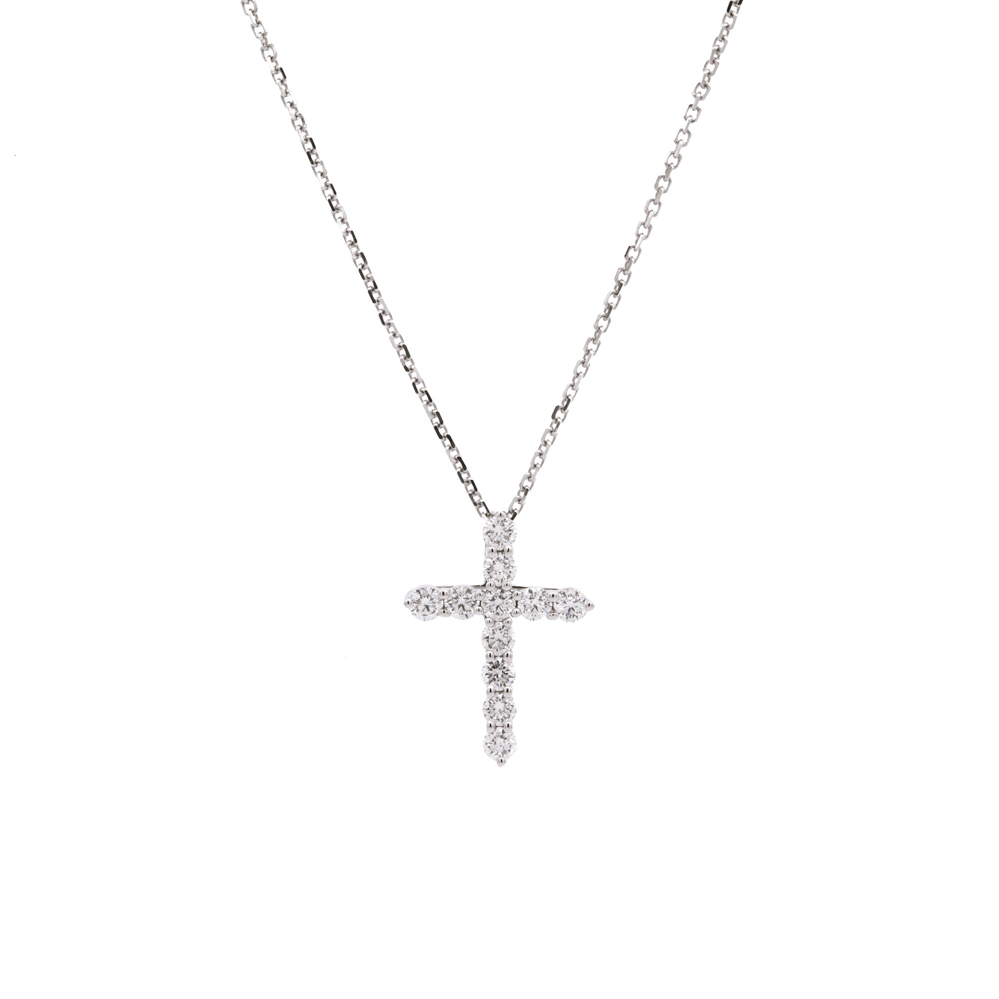 18K White Gold Diamond Cross Pendant With 18 Inch Chain