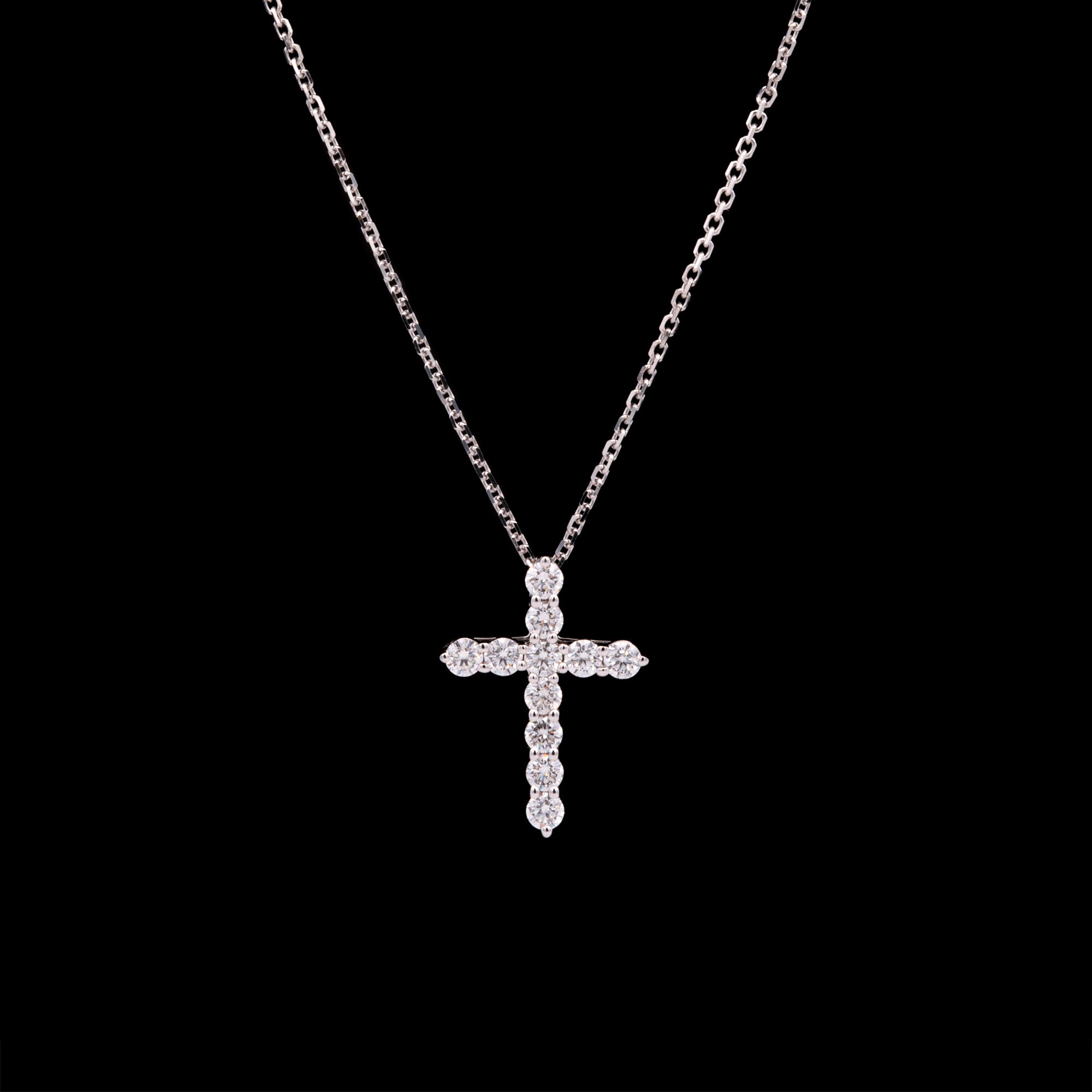 18K White Gold Diamond Cross Pendant With 18 Inch Chain. Eleven Round Diamonds Weigh A Total Of 0.56 Carats And Have G-H Color, SI1-SI2 Clarity.