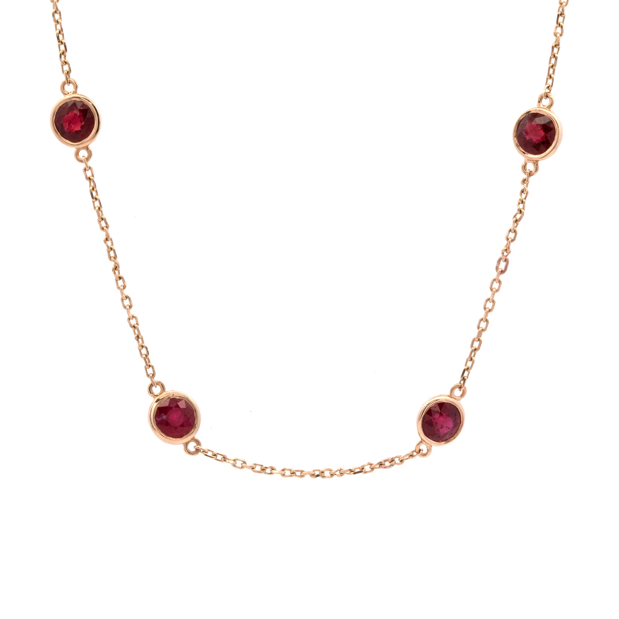 18K Yellow Gold Ruby Station Necklace, 24 Inches. The Rubies Weigh A total Of 8.52 Carats.
