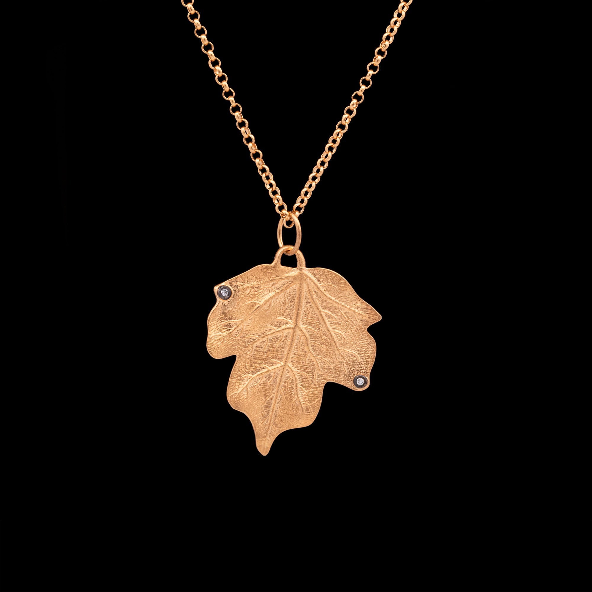 Sterling Silver and 24K Yellow Gold Maple Leaf Pendant With Diamond Accent, 21 Inches. Chain Has Jump Ring At 17 inches And 19 Inches. Hand Made In Turkey.