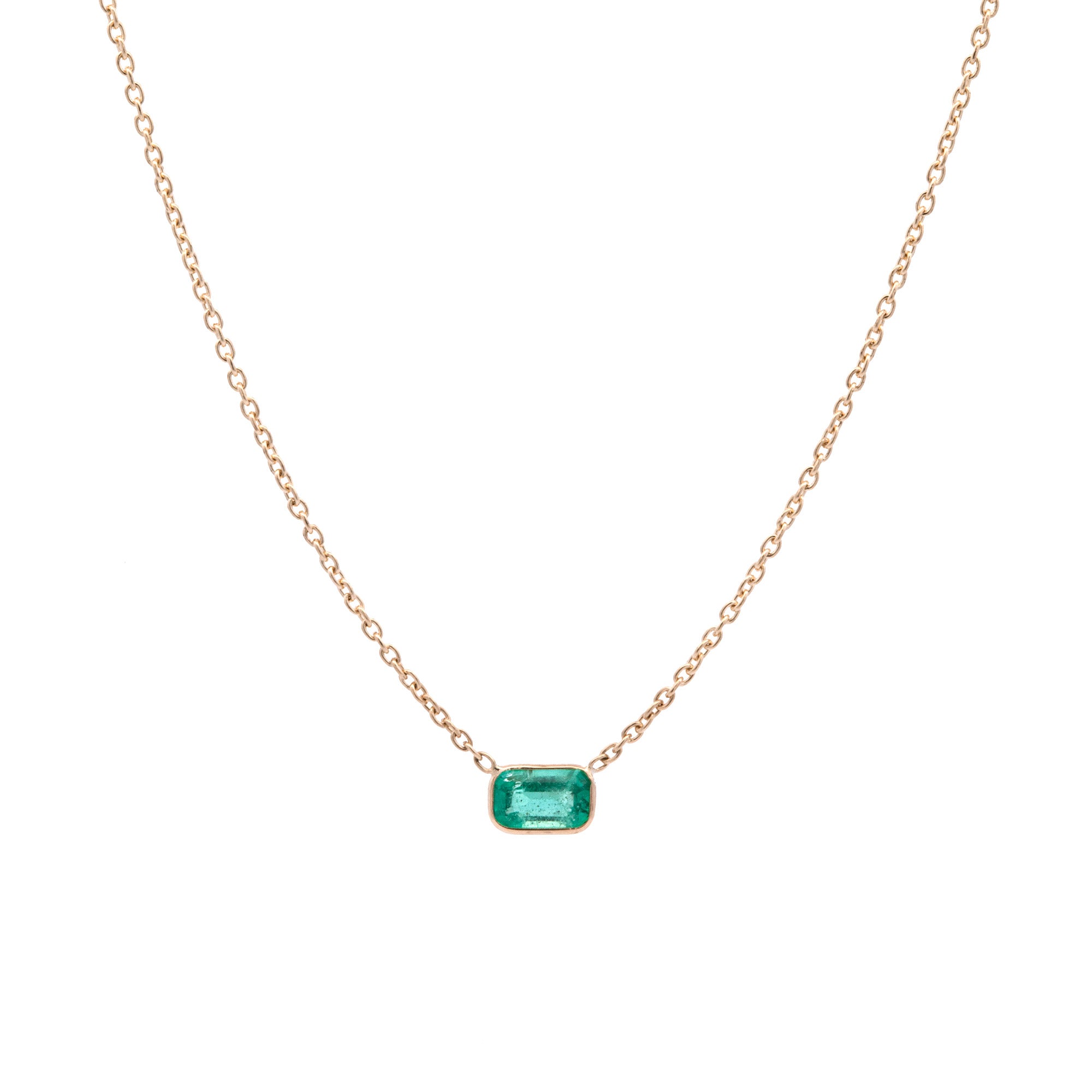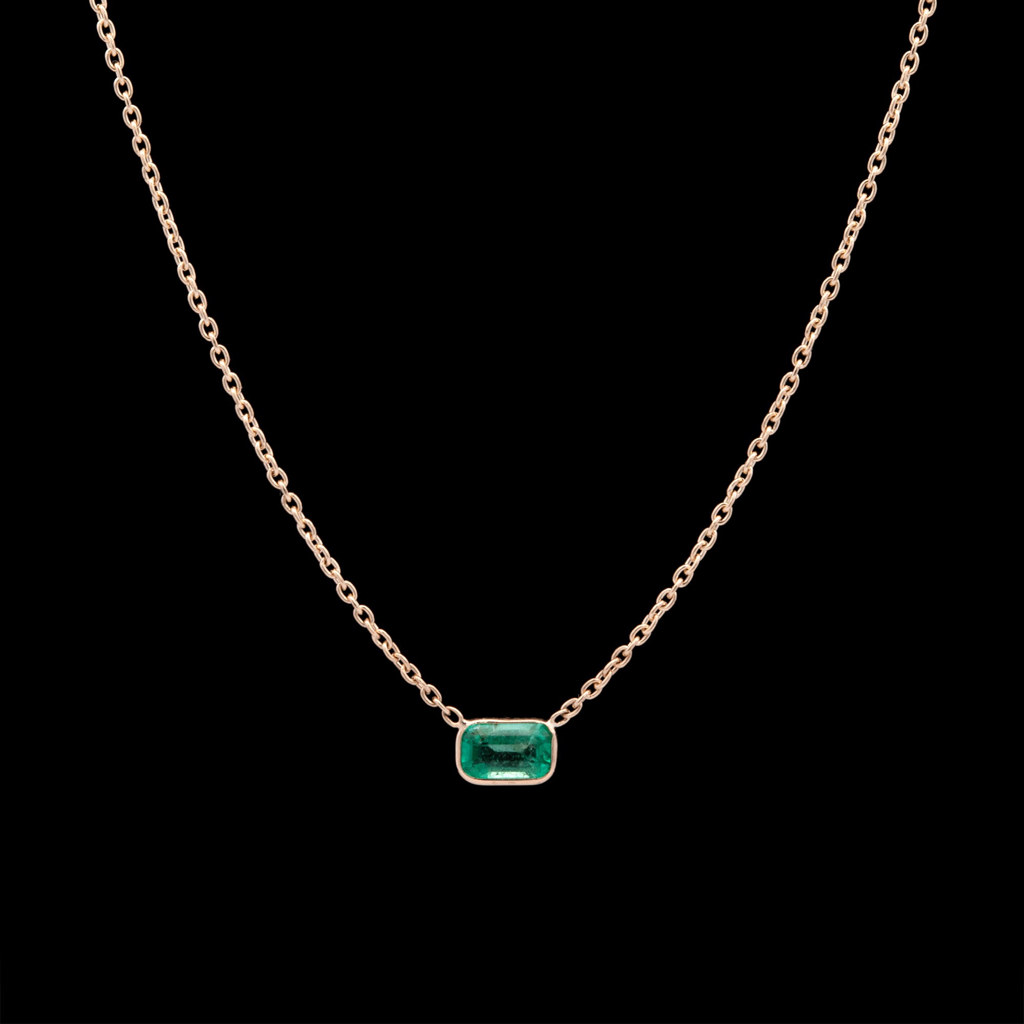 Custom 14K Yellow Gold Bezel Set Emerald Necklace, 18 Inches