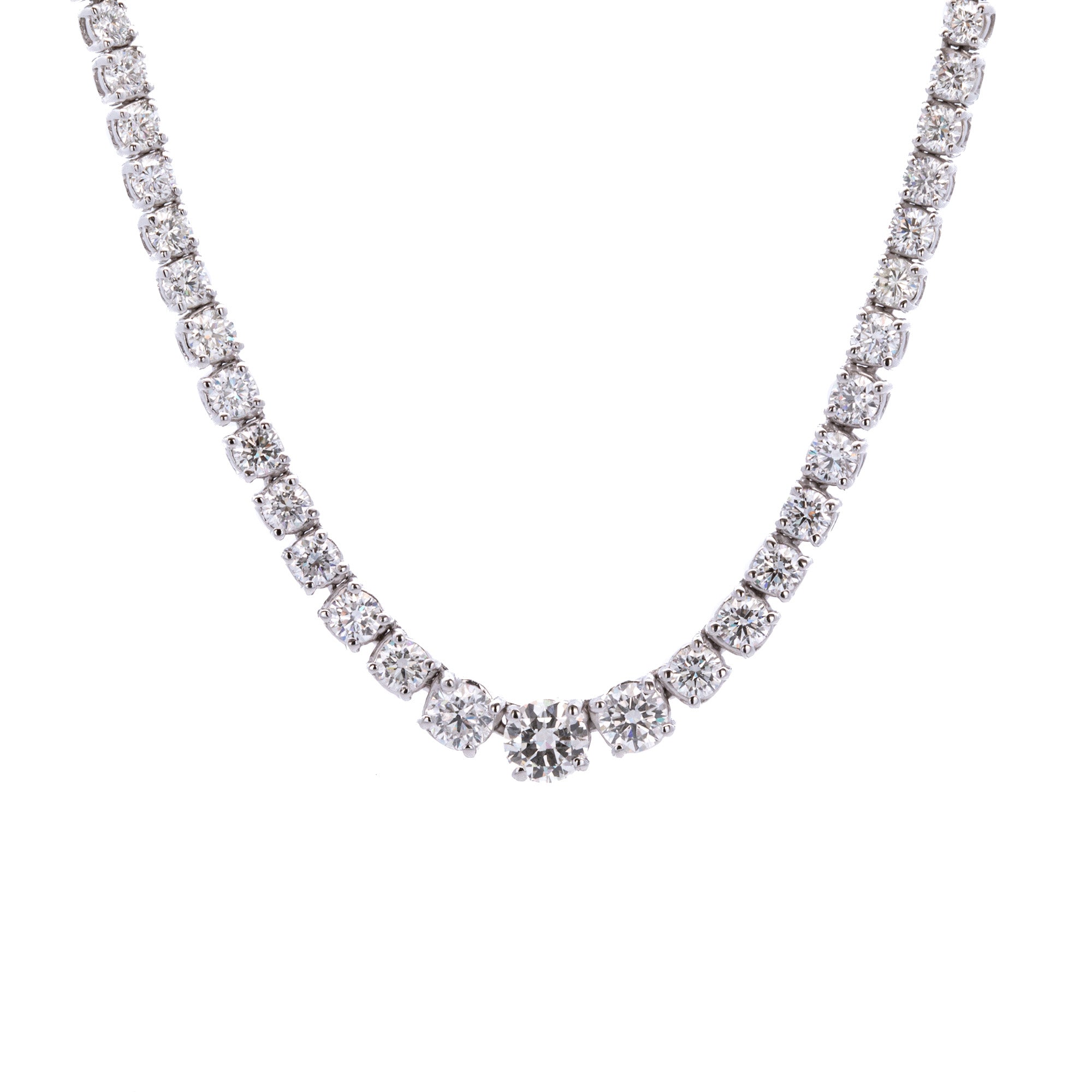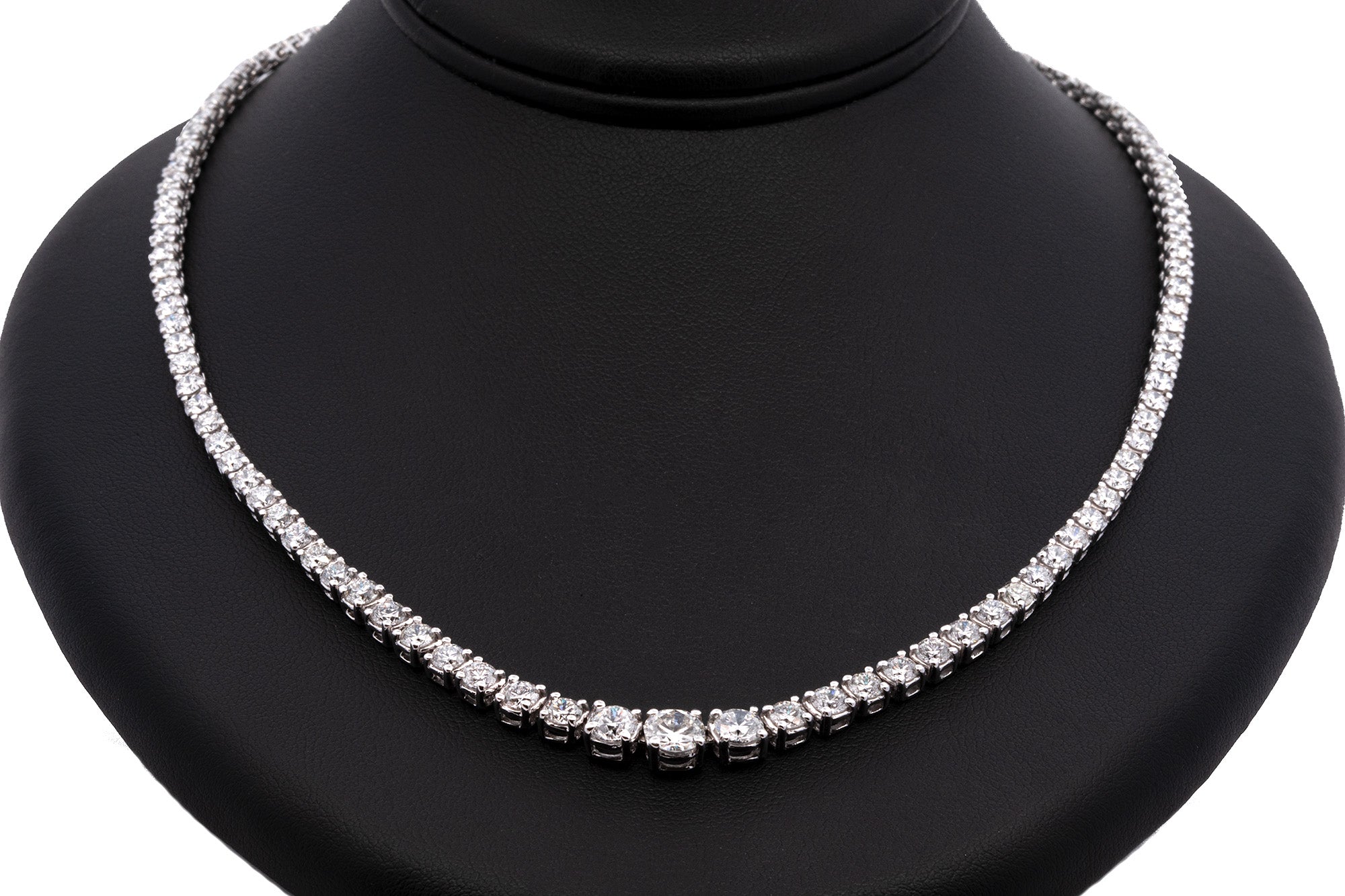 Custom 18K White Gold Graduated 11.75ctw Diamond Necklace, 15.5 Inches