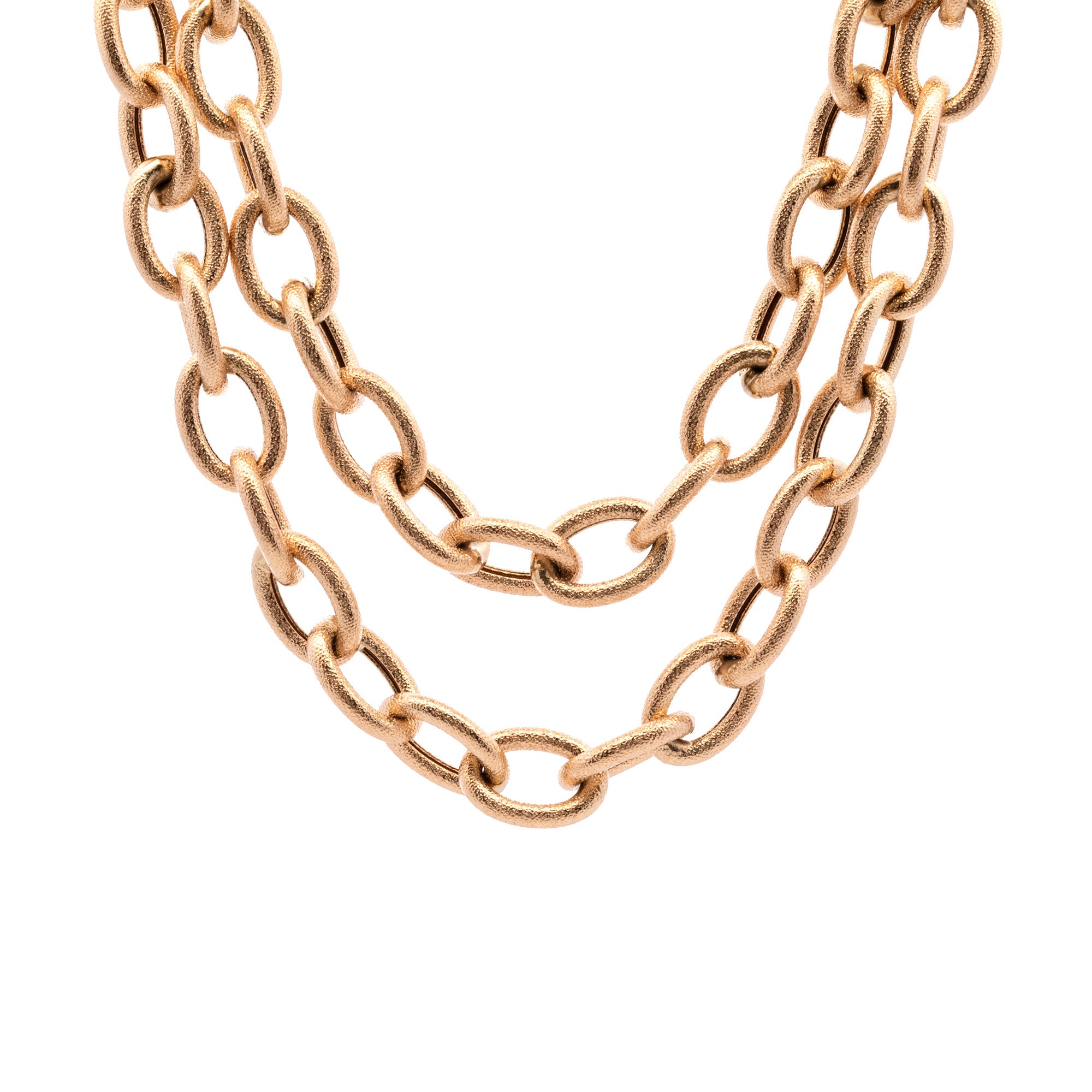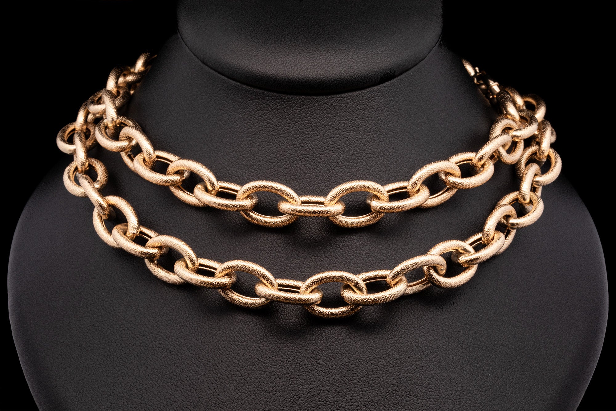 Custom 18K Yellow Gold Florentine Finish Oval Link Necklace, 32 Inches.
