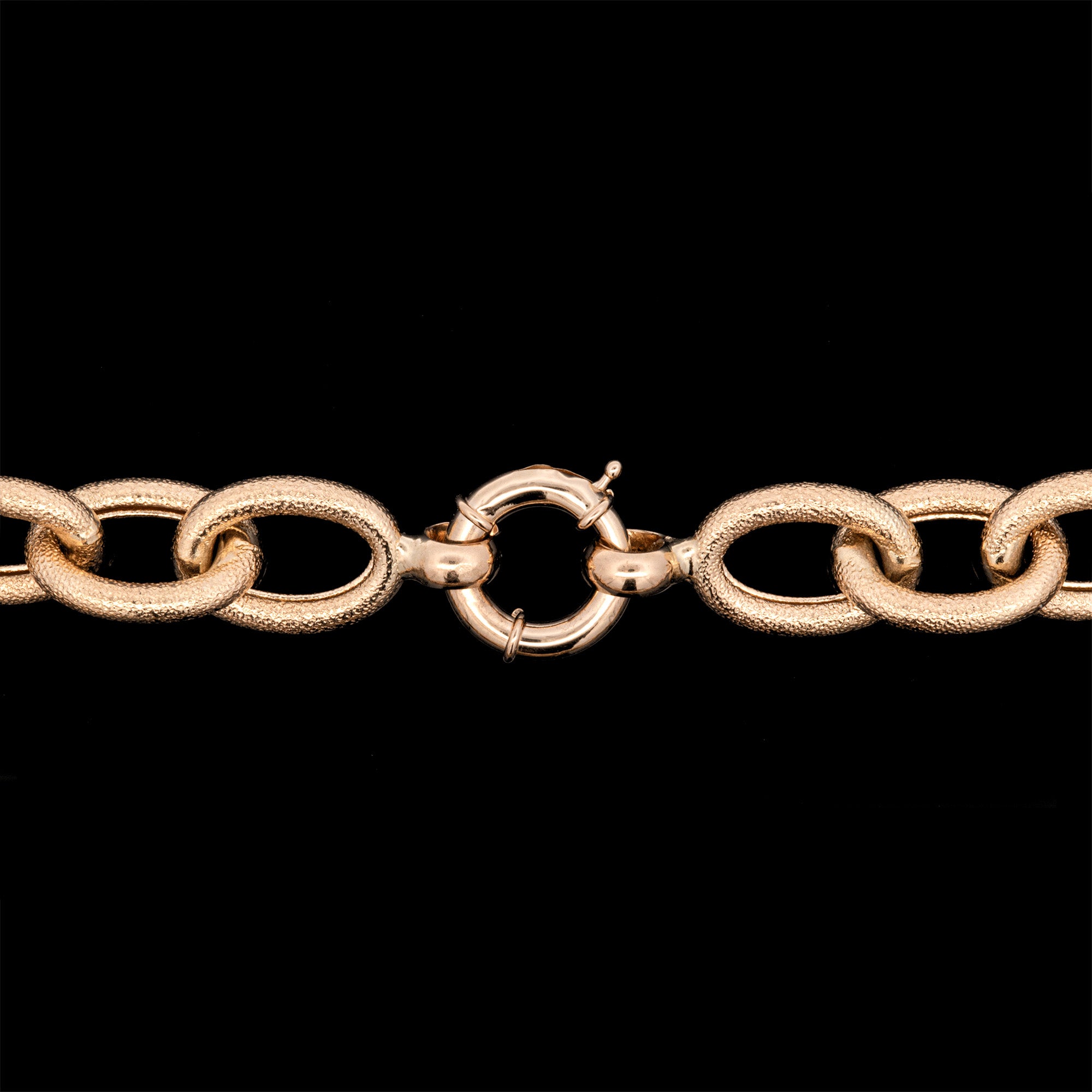 Custom 18K Yellow Gold Florentine Finish Oval Link Necklace, 32 Inches