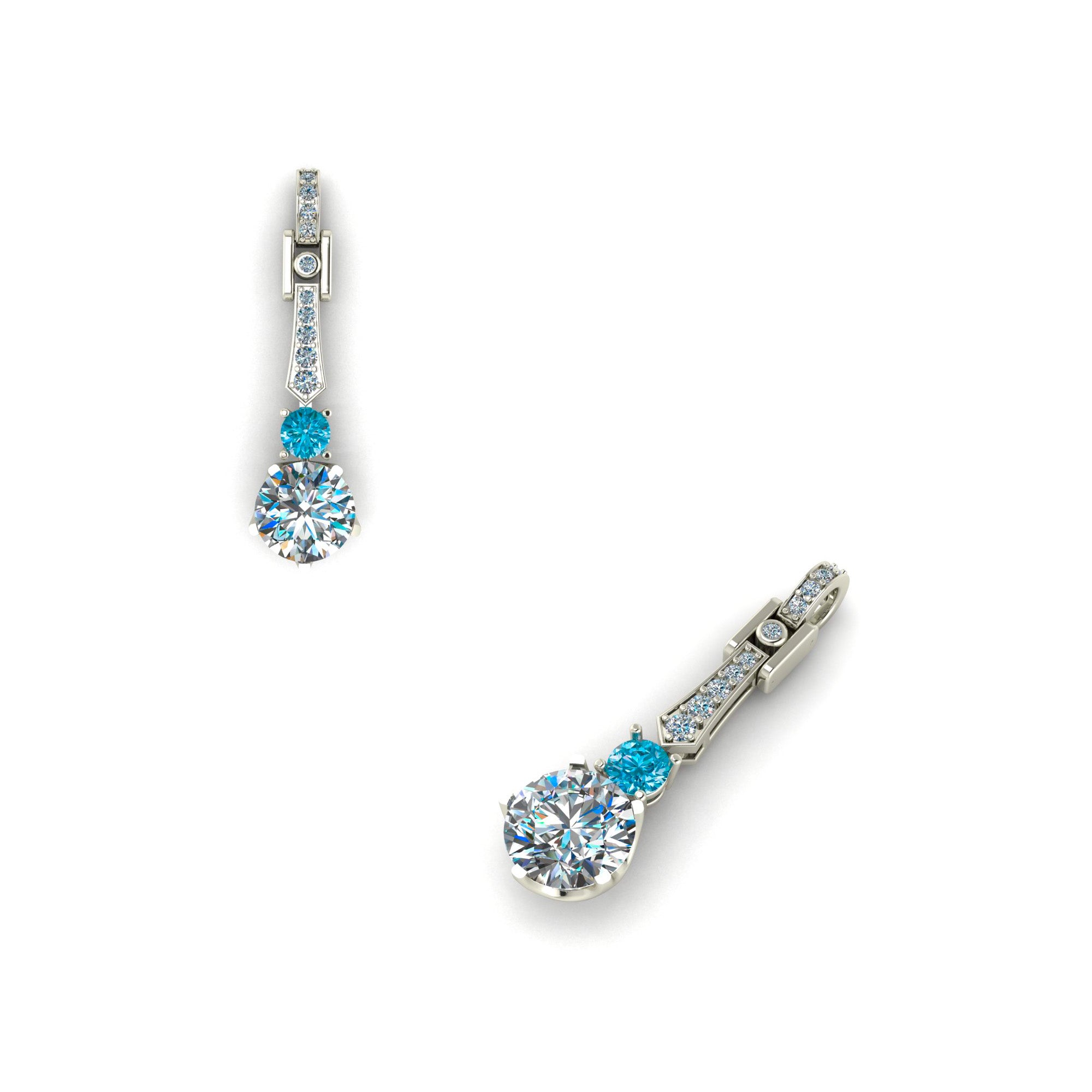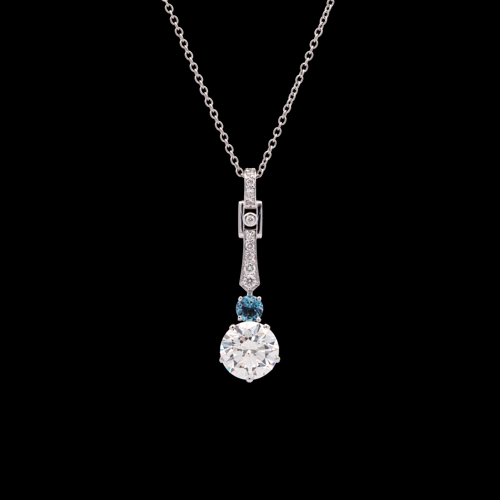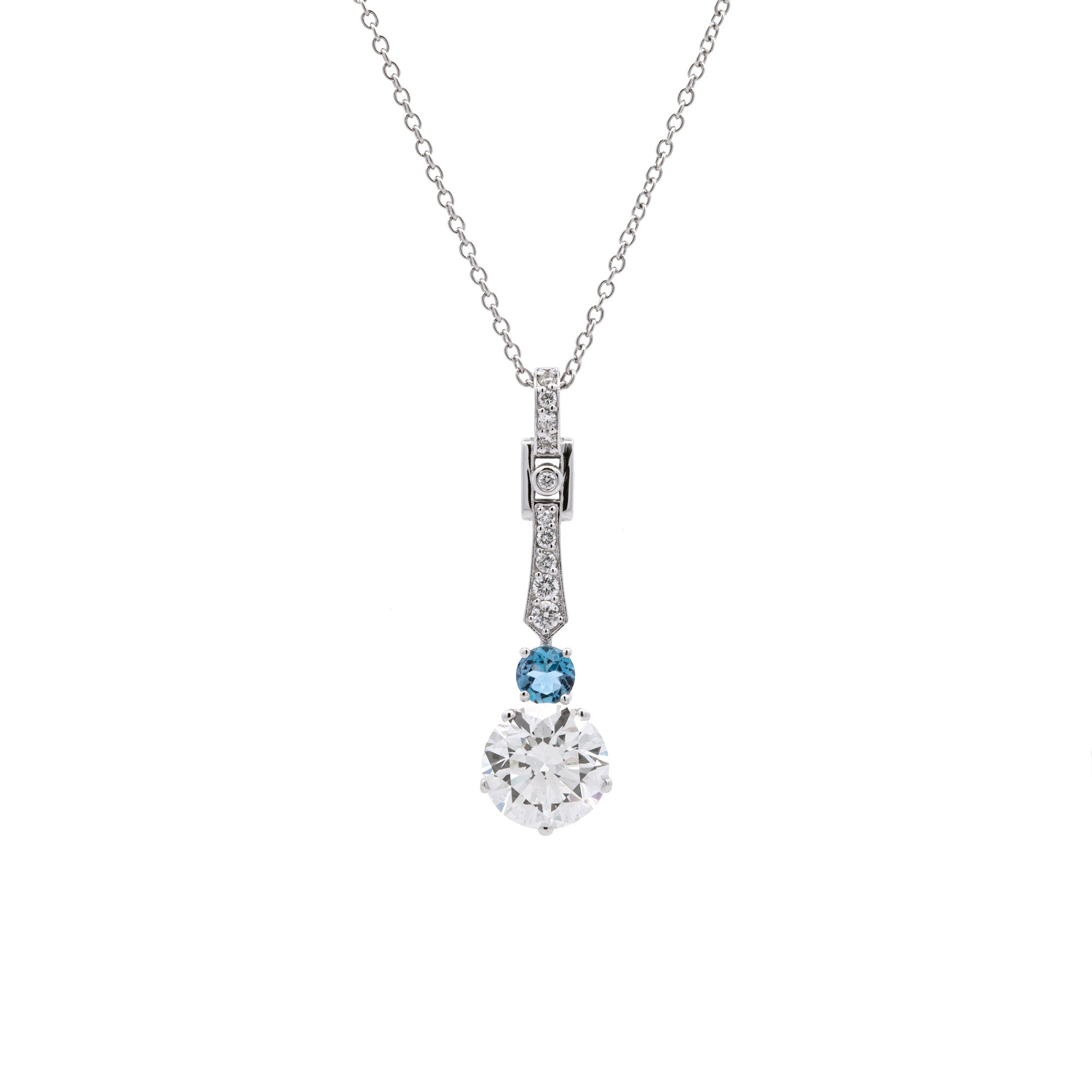 Custom Platinum Art Deco Inspired Dimond And Aquamarine Drop Pendant With 18 Inch Chain
