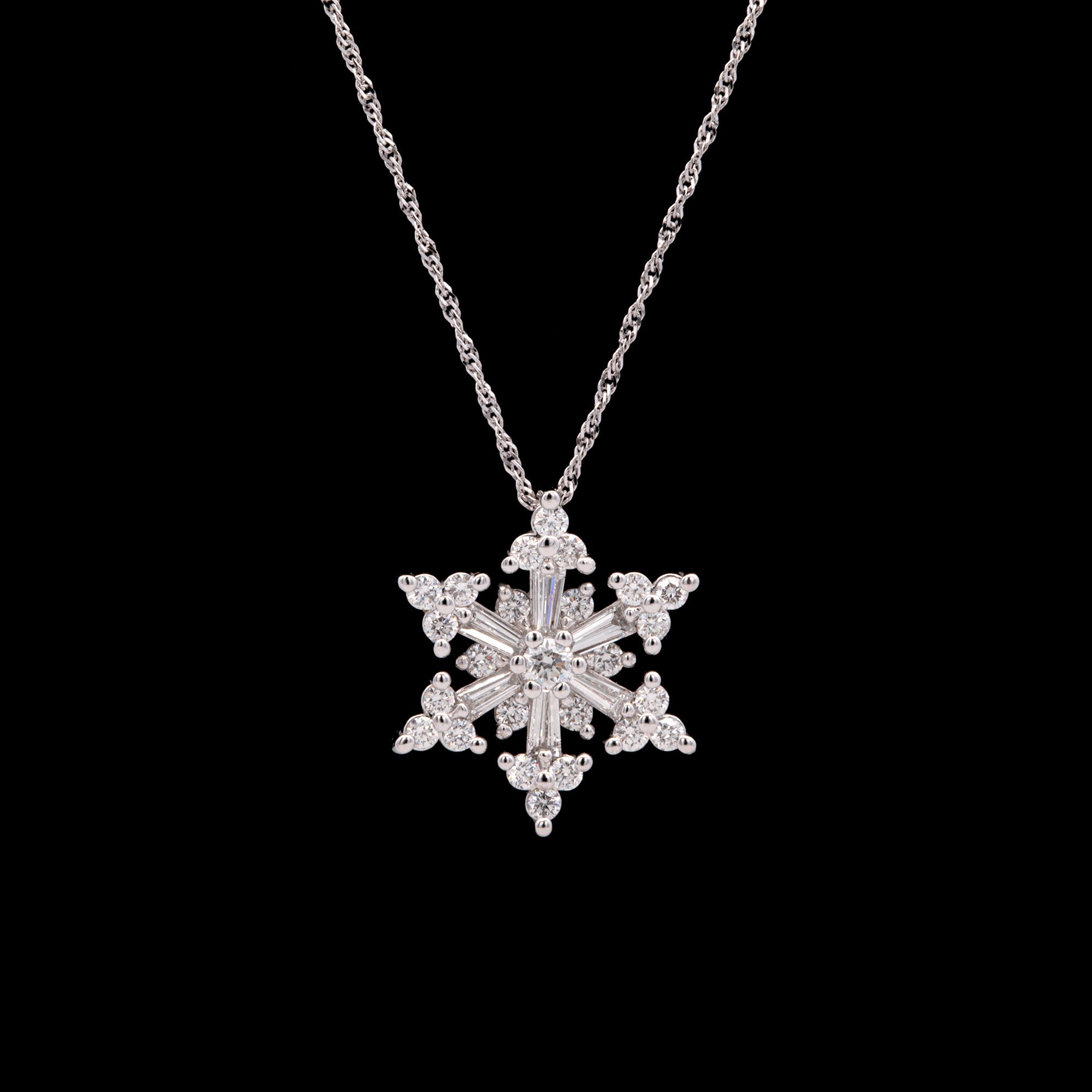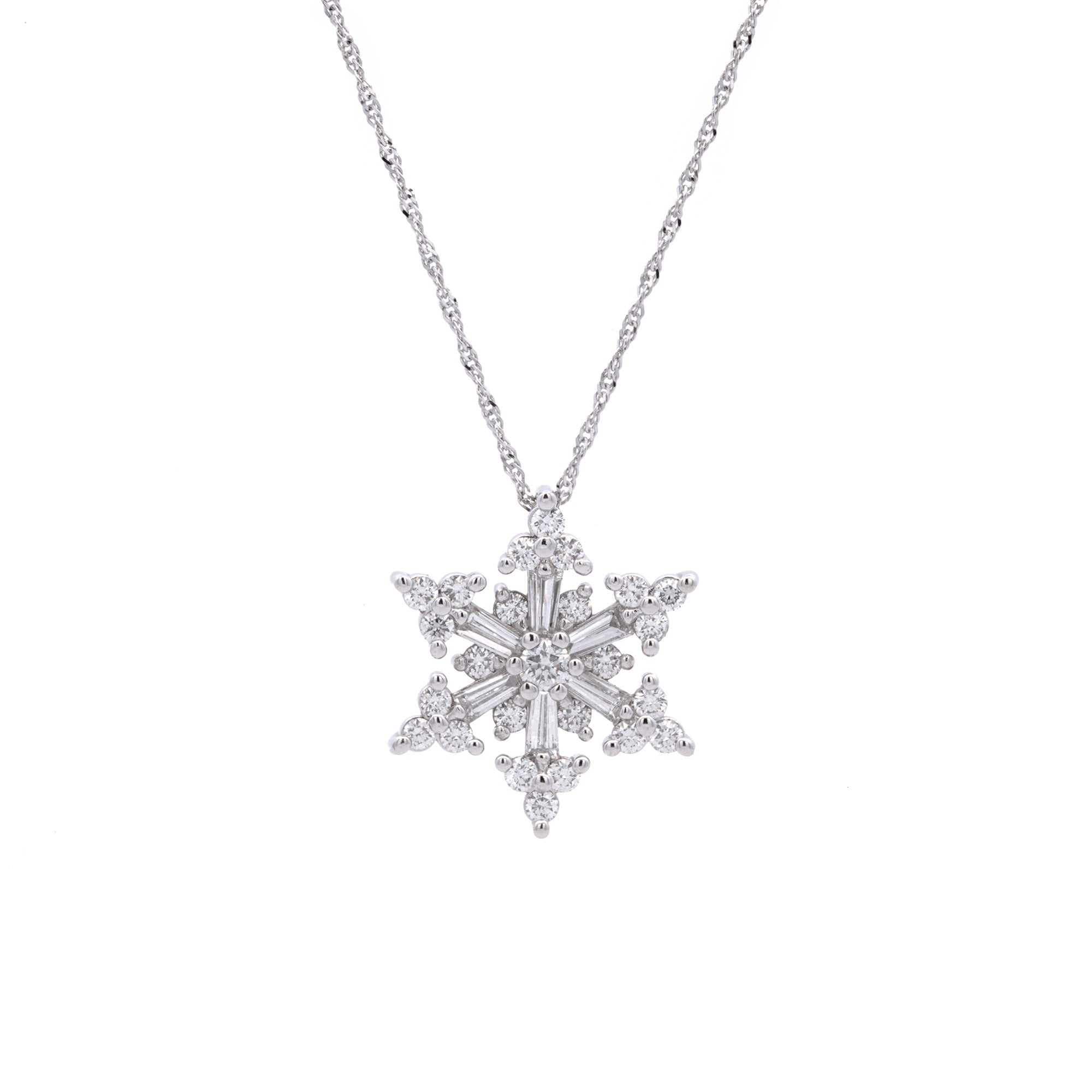 Large Stowe Strong Mixed Cut Diamond Snowflake Pendant With 18" Chain, 14K White Gold
