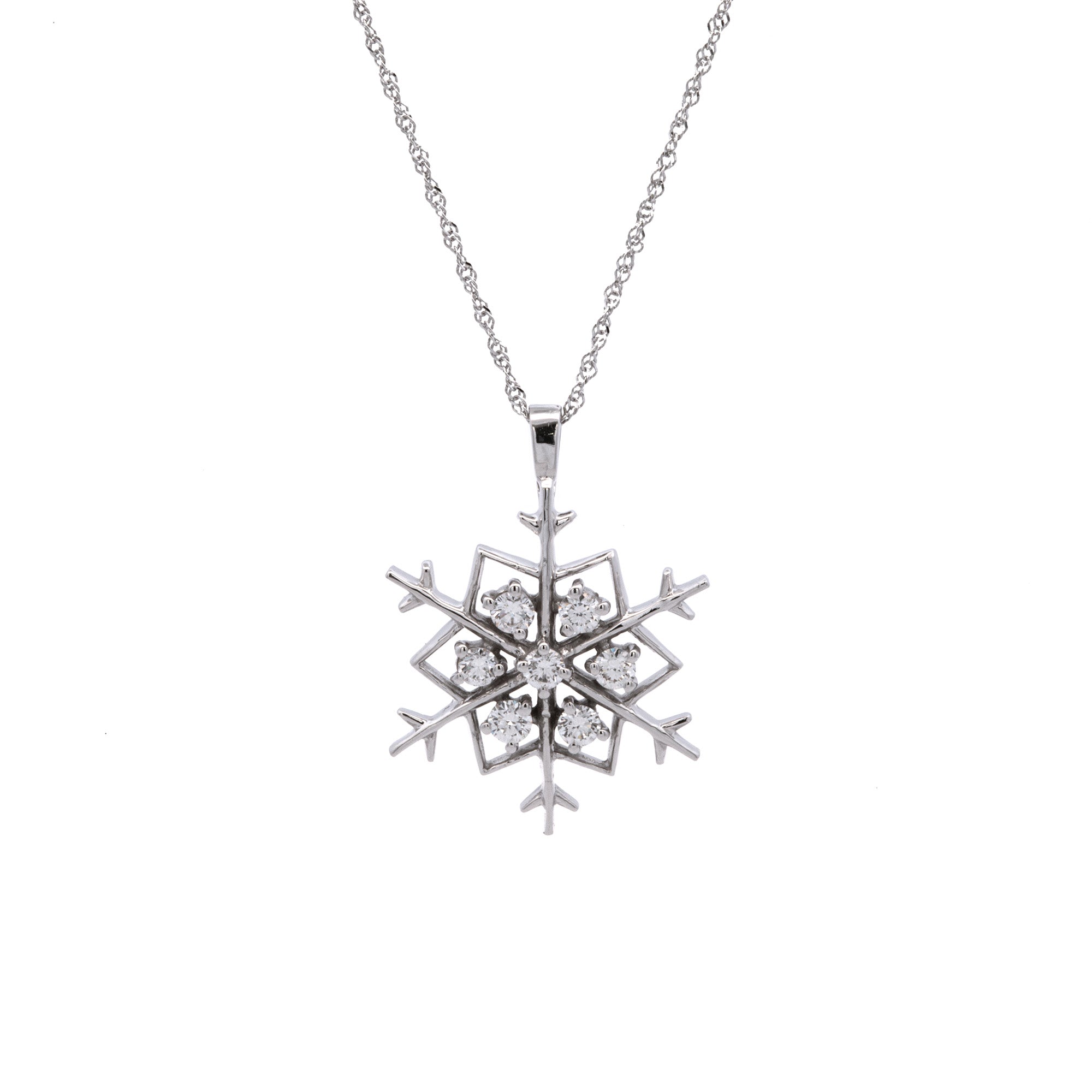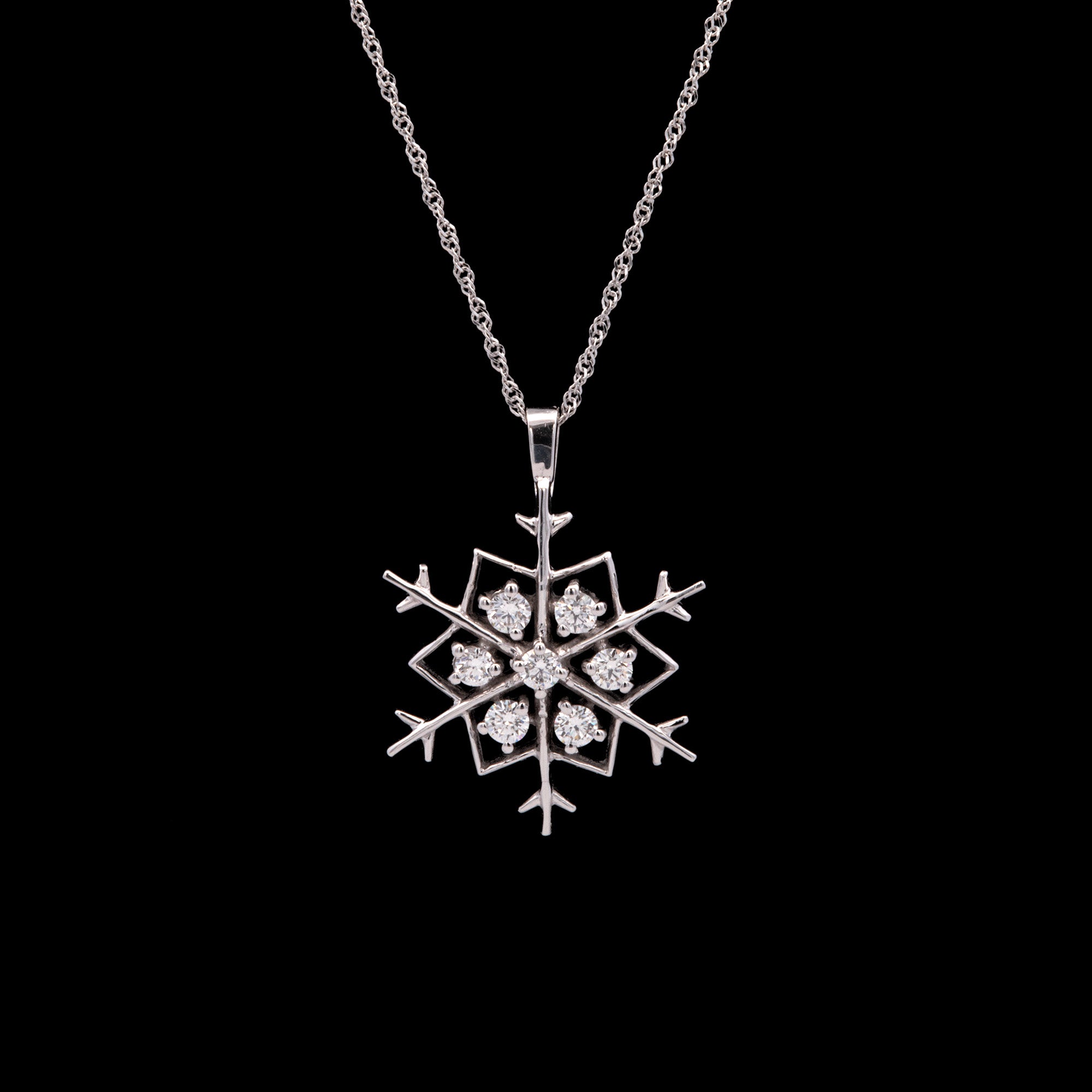 14K White Gold Middlebury Small Diamond Snowflake Pendant With 18 Inch Chain. Diamonds Weigh A Total Of 0.38 Carats And Have G-H Color, VS1 Clarity. Diameter Measures 18mm.
