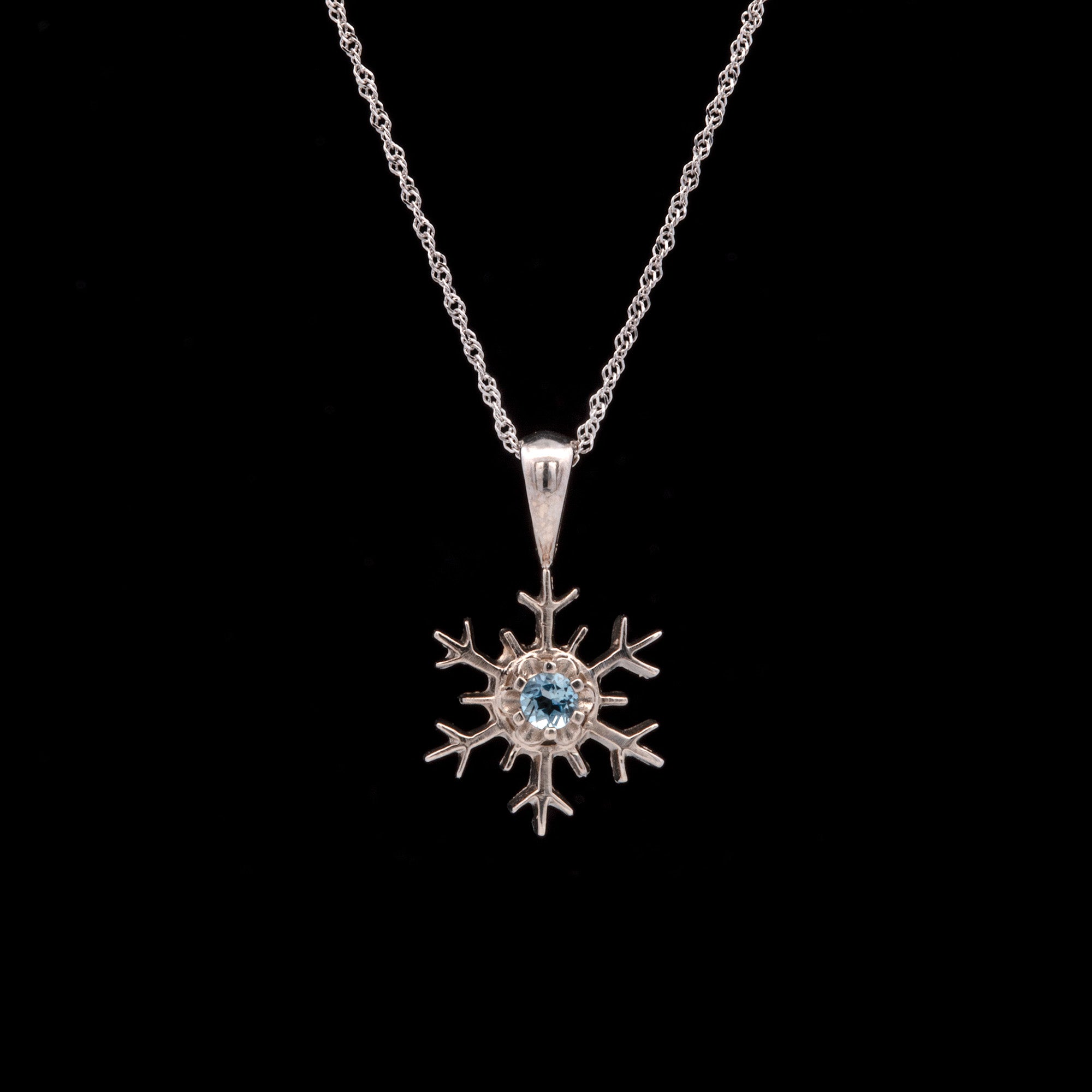 Montpelier Aquamarine Snowflake Pendant With 18" Chain, 14K White Gold