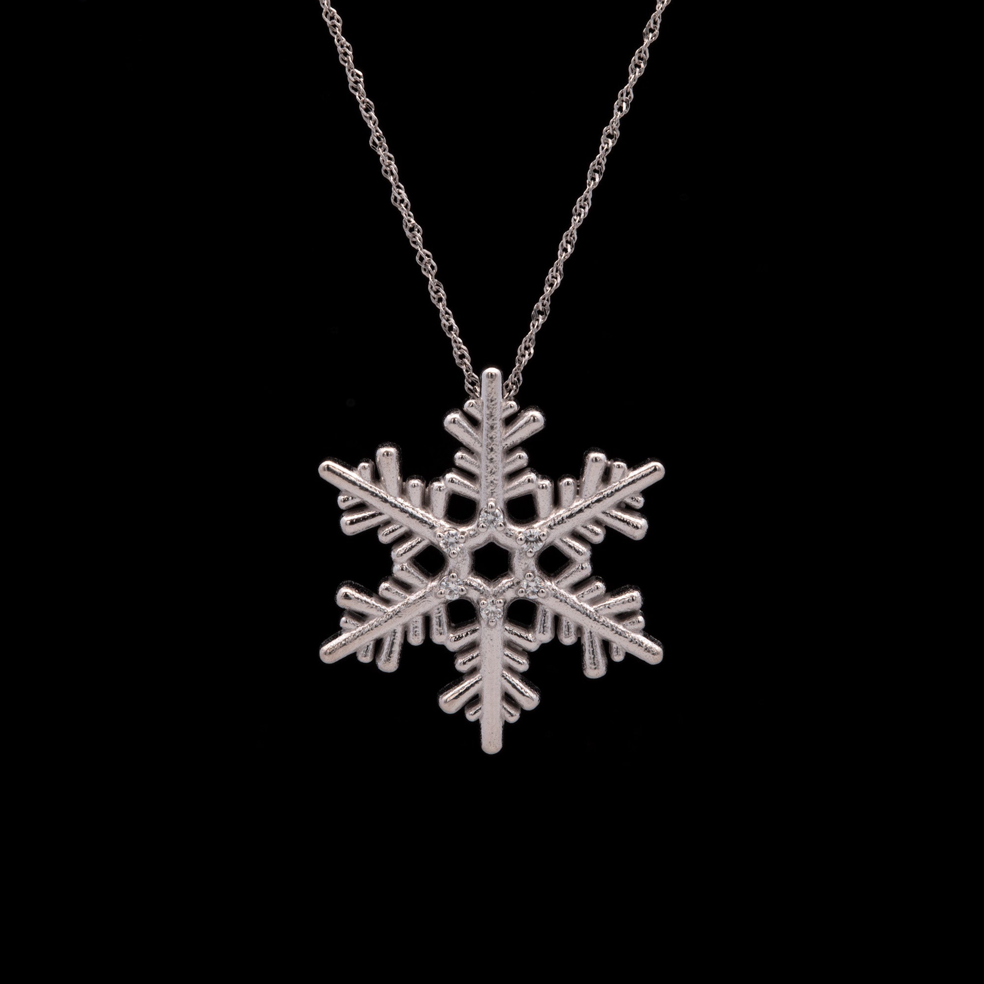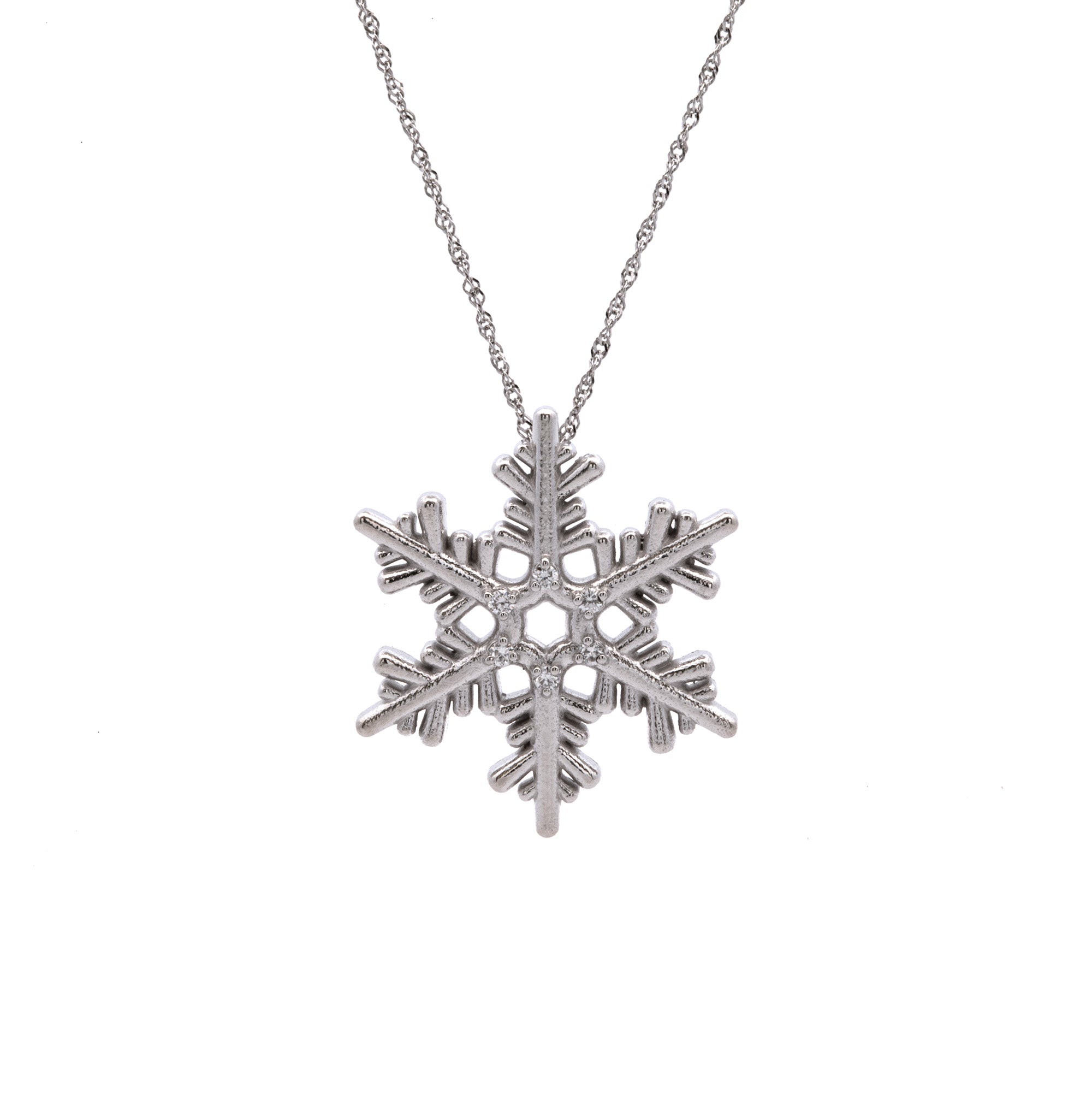 14K White Gold Richmond Diamond Snowflake Pendant With 18" Chain. Diamonds Weigh A Total Of 0.06 Carats And Have G-H Color And VS1 Clarity. Diameter Measures 21mm.