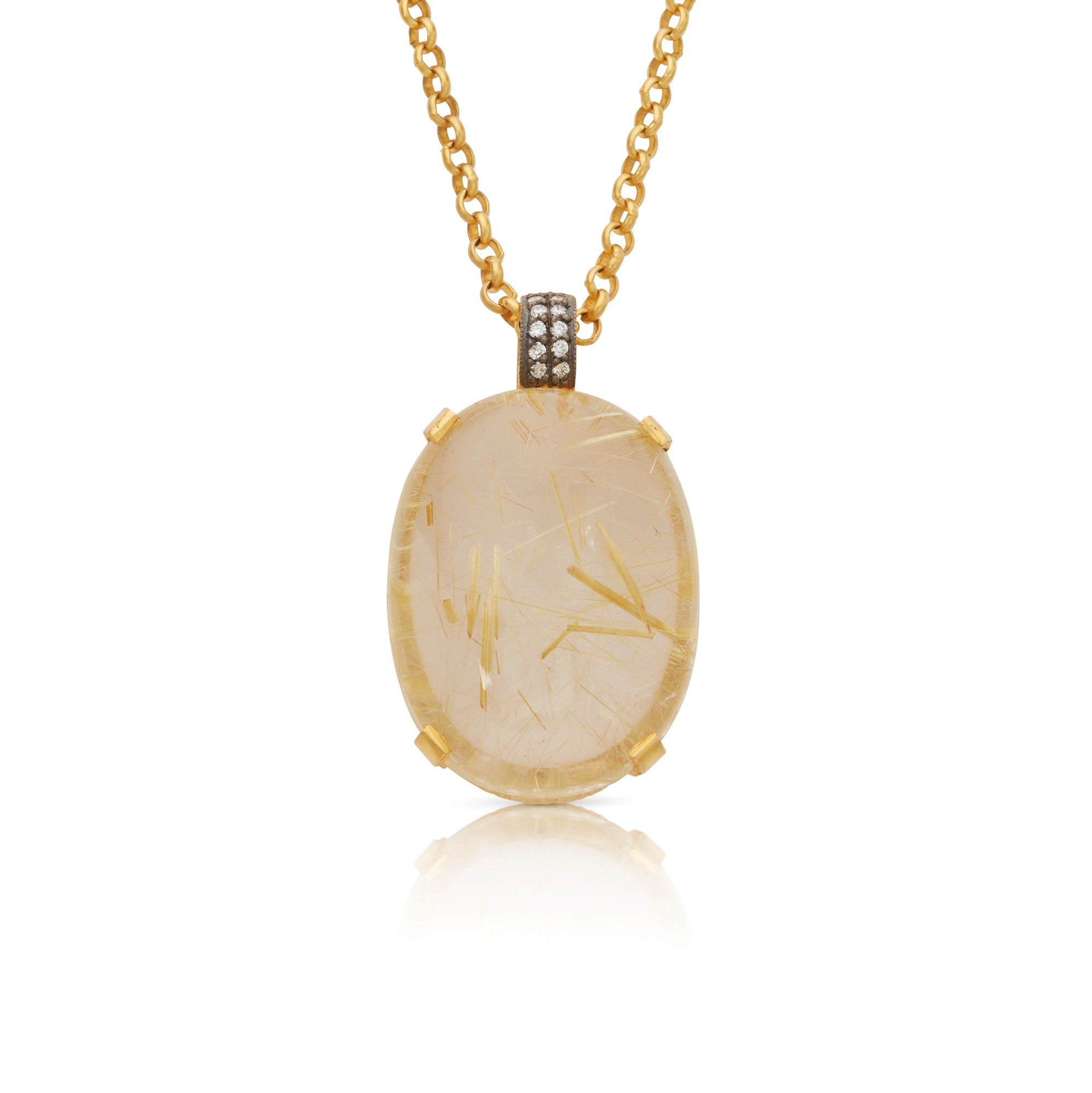 Rutilated Quartz Pendant with Diamond Accents, Sterling Silver and 24K Yellow Gold