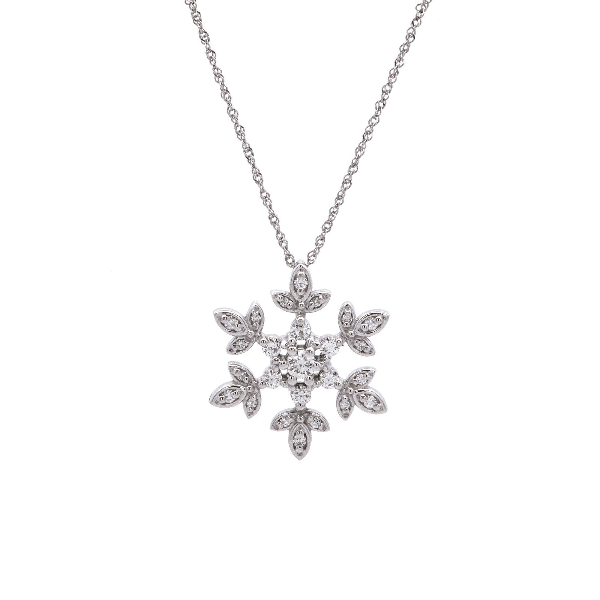 Stowe Diamond Snowflake Pendant With 18" Chain, 14K White Gold