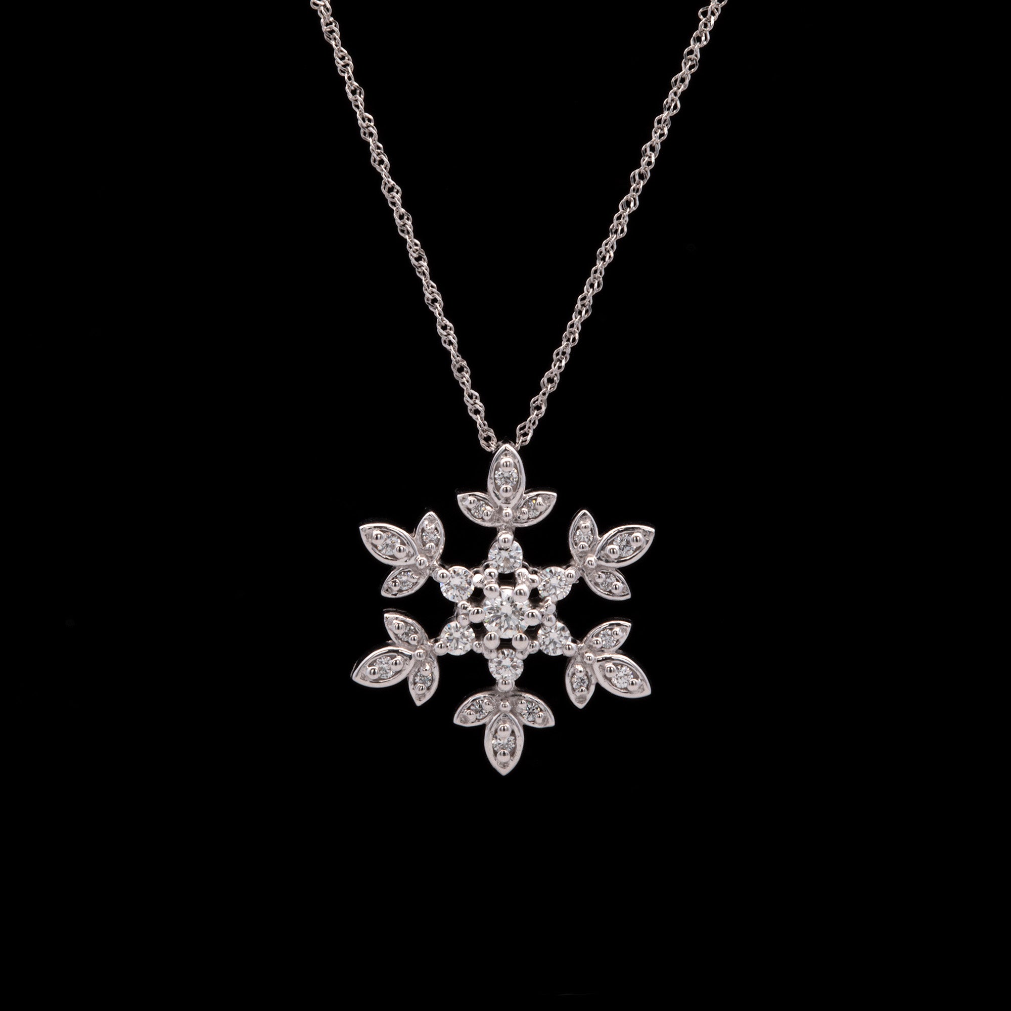 14K White Gold Stowe Diamond Snowflake Pendant With 18" Chain. Diamonds Weigh A Total Of 0.45 Carats And Have G-H Color And VS1 Clarity. Diameter Measures 18mm.