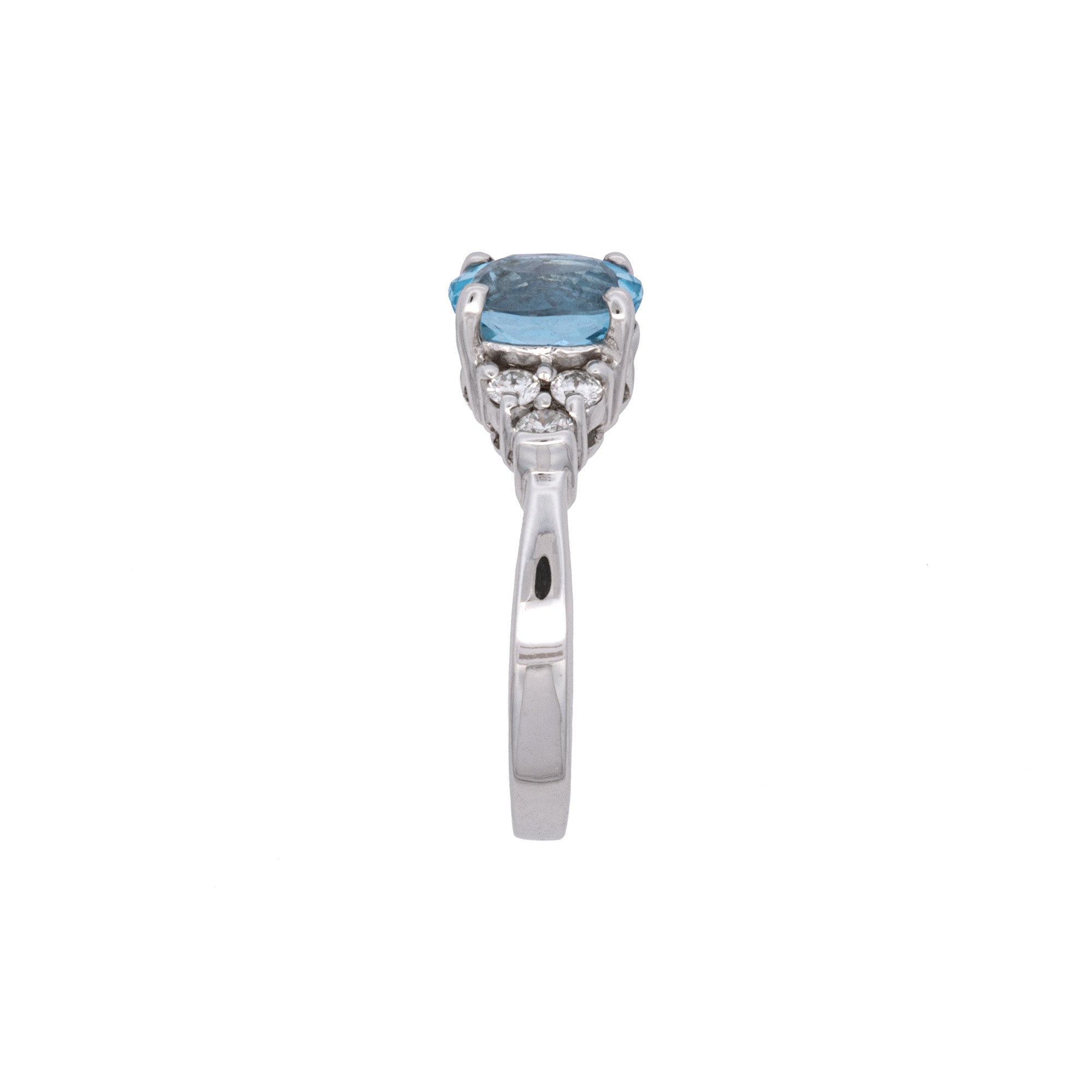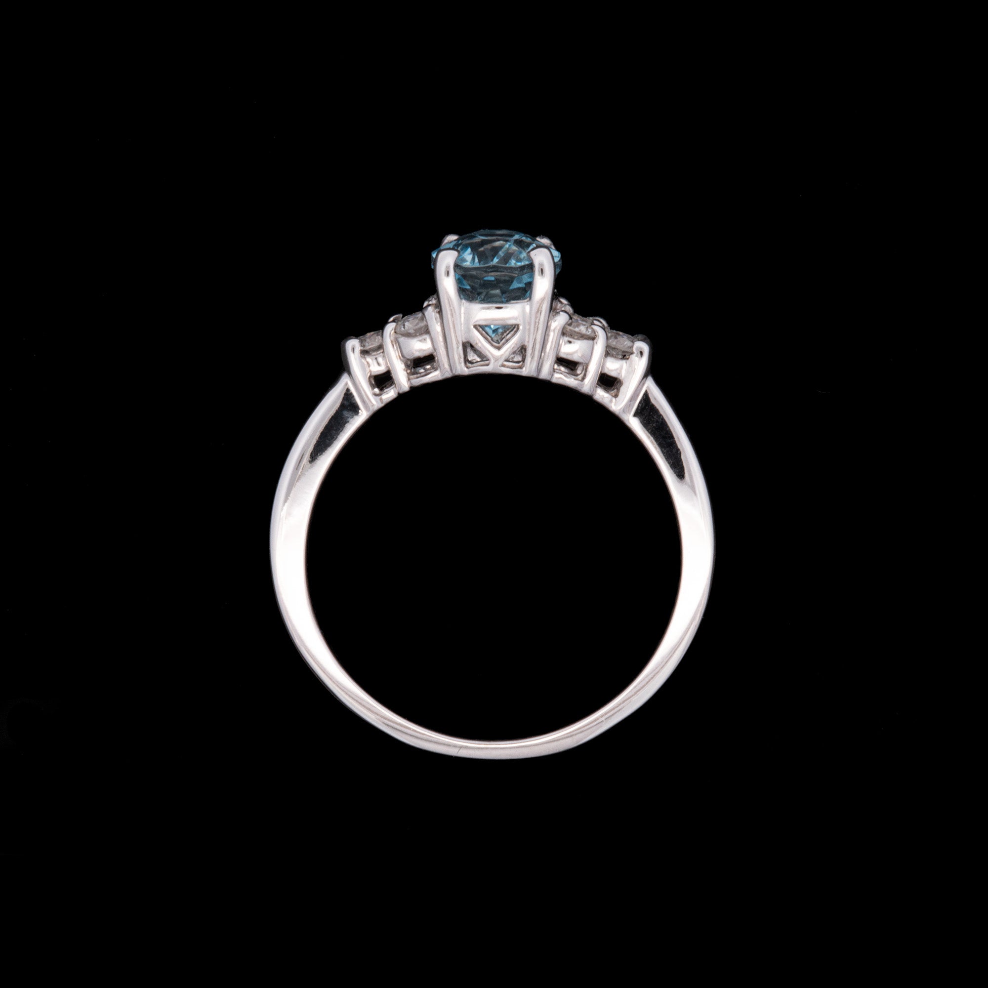 14K White Gold Oval Aquamarine And Diamond Ring. Aquamarine Weighs 1.32 Carats. Diamonds Weigh A Total Of 0.24 Carats. Sizing Available.