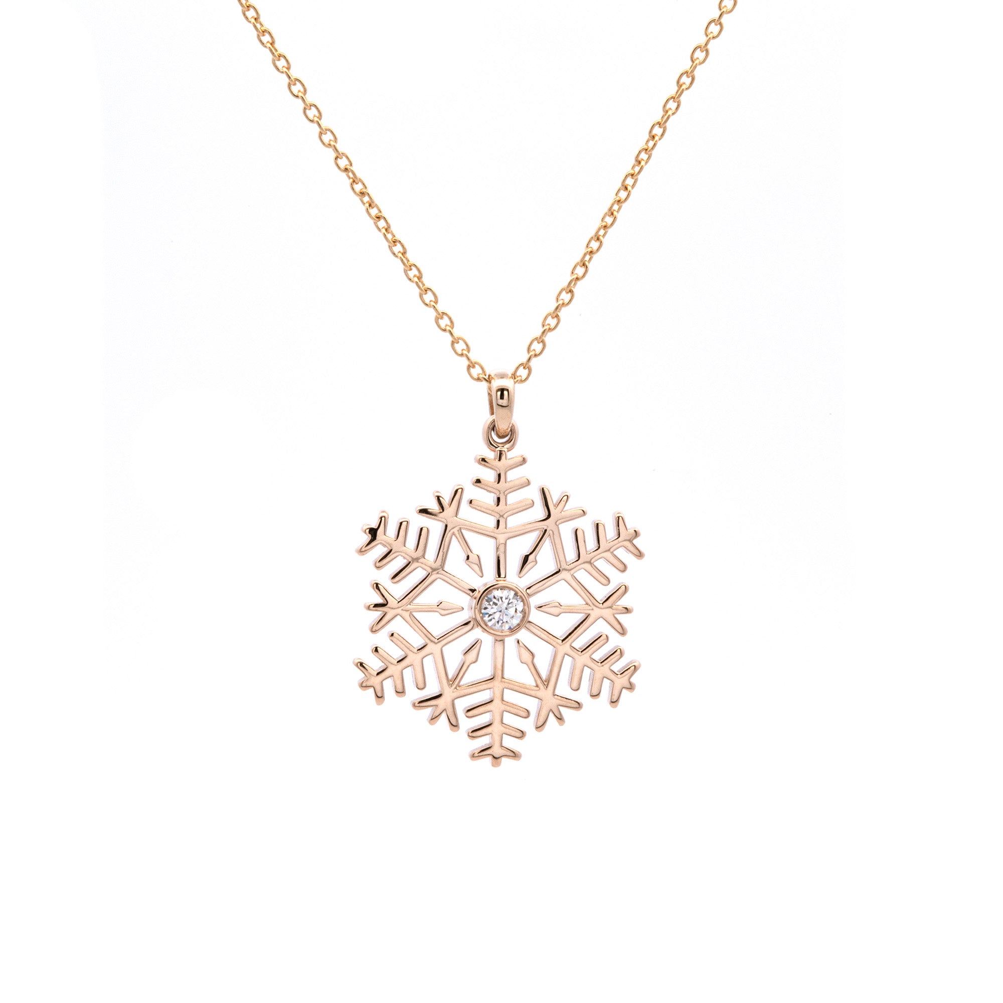 Bolton Diamond Snowflake Pendant With 18 Inch Chain, 14K Yellow Gold