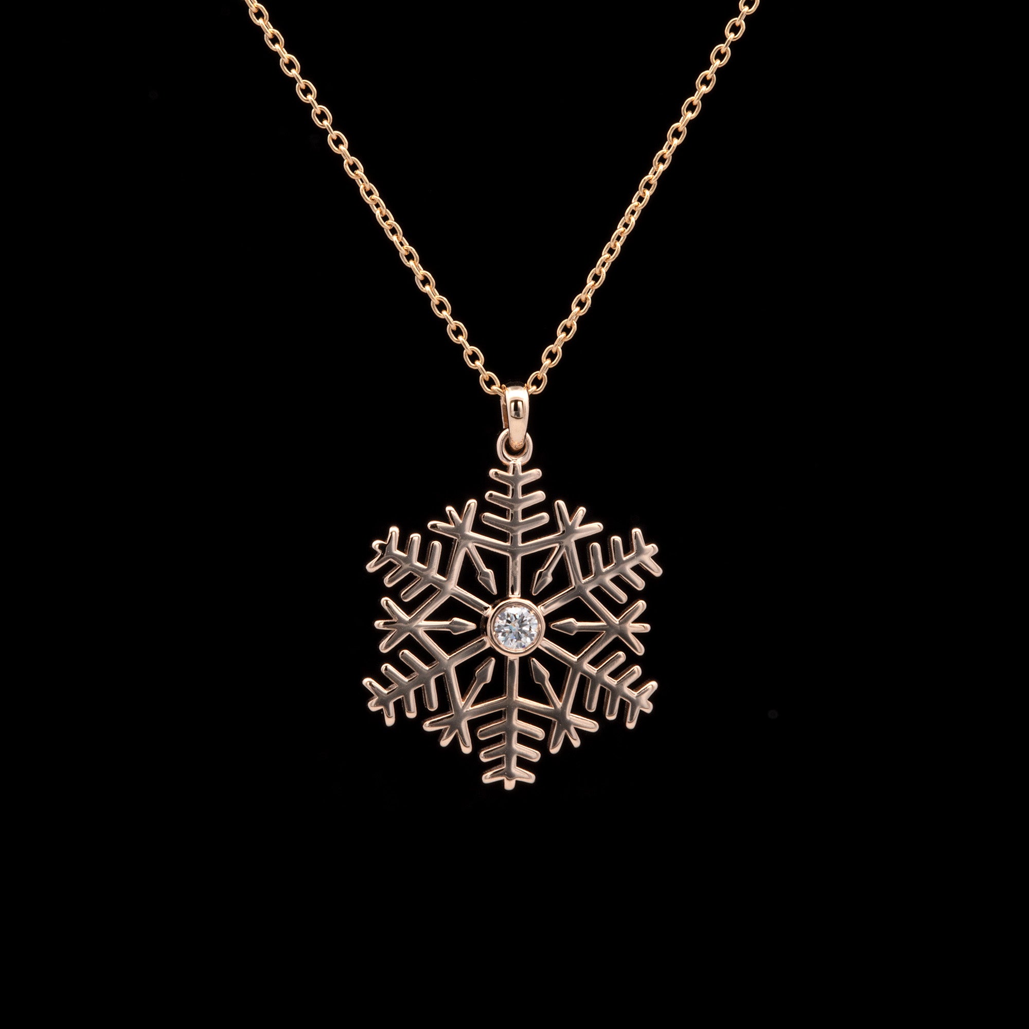Bolton Snowflake Pendant With 18" Chain, 14K Yellow Gold