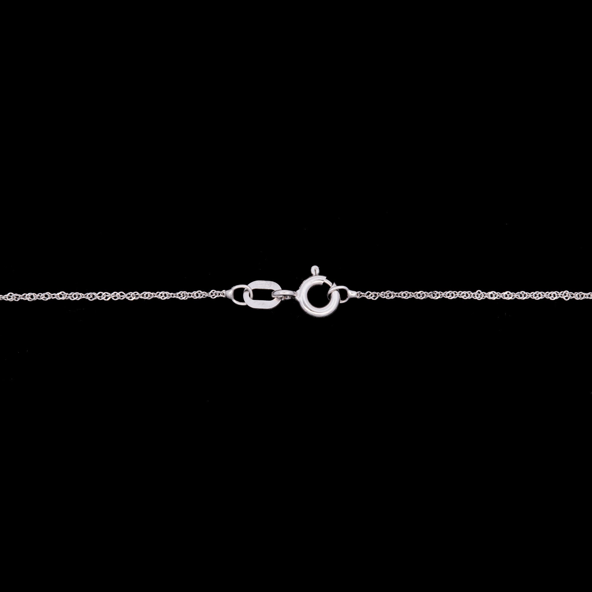 14K White Gold Bezel Set Cushion Cut Ceylon Sapphire And Diamond Pendant With 18 Inch Chain. Cushion Cut Ceylon Sapphire Weighs 1.10 Carats. Diamond Weighs 0.03 Carats.