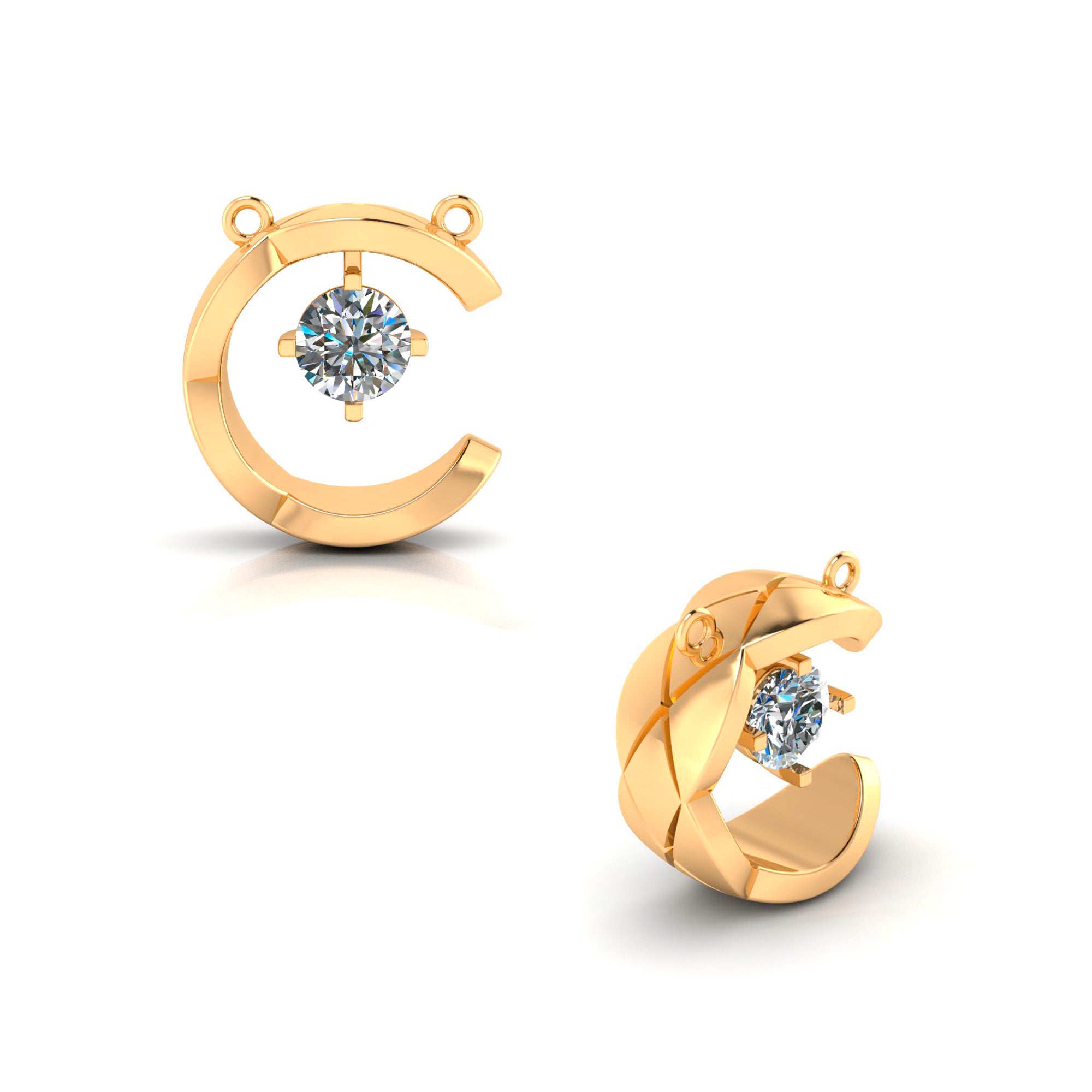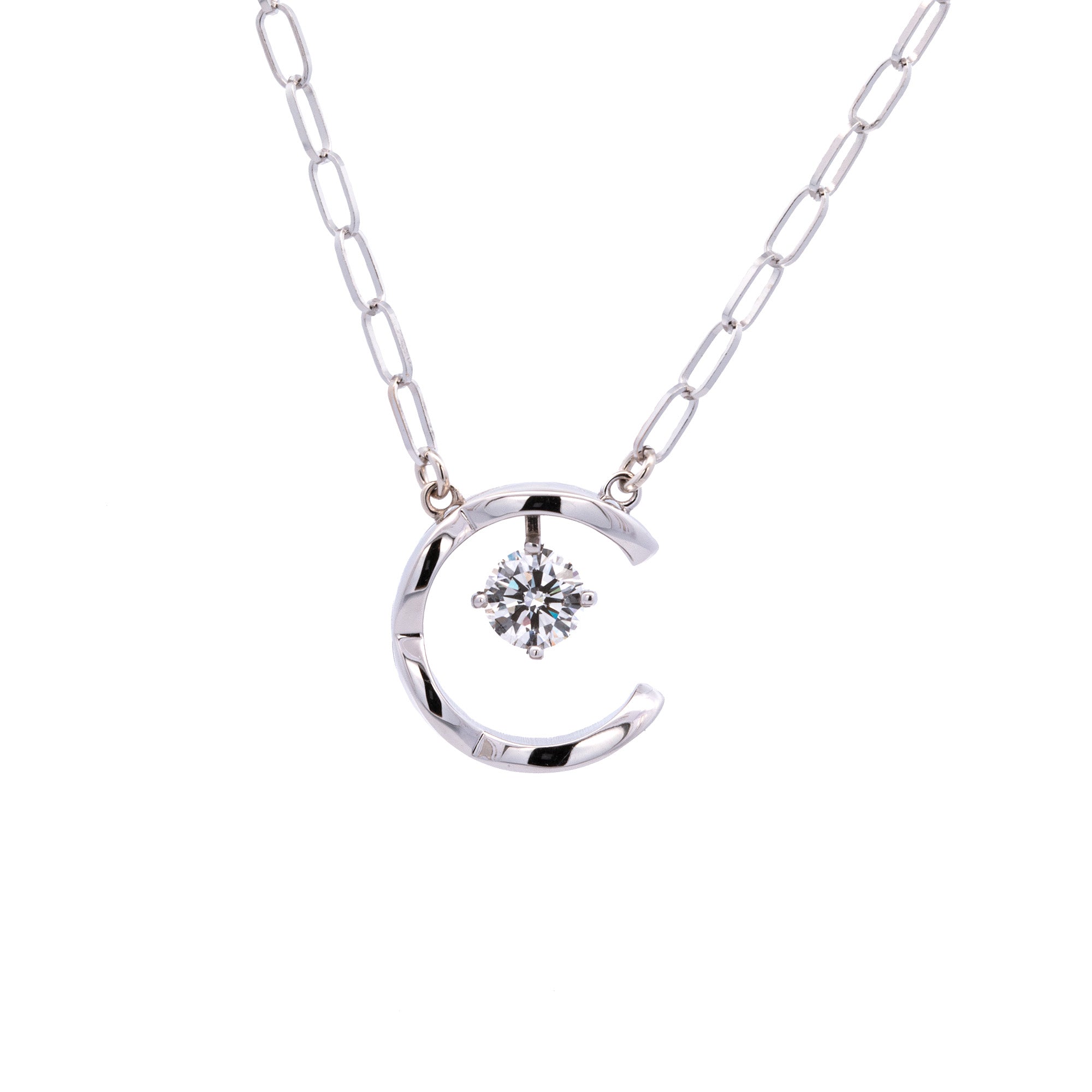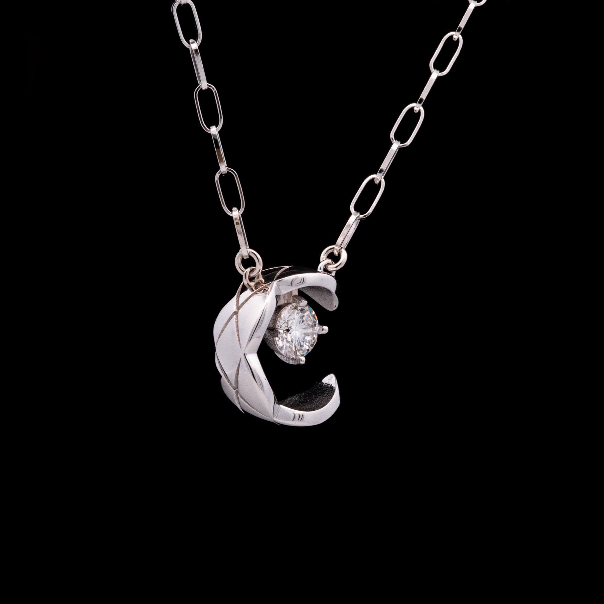 Custom 18K White Gold Quilted Pattern "C" Pendant With Round Diamond And 15 Inch Thin Paperclip Chain