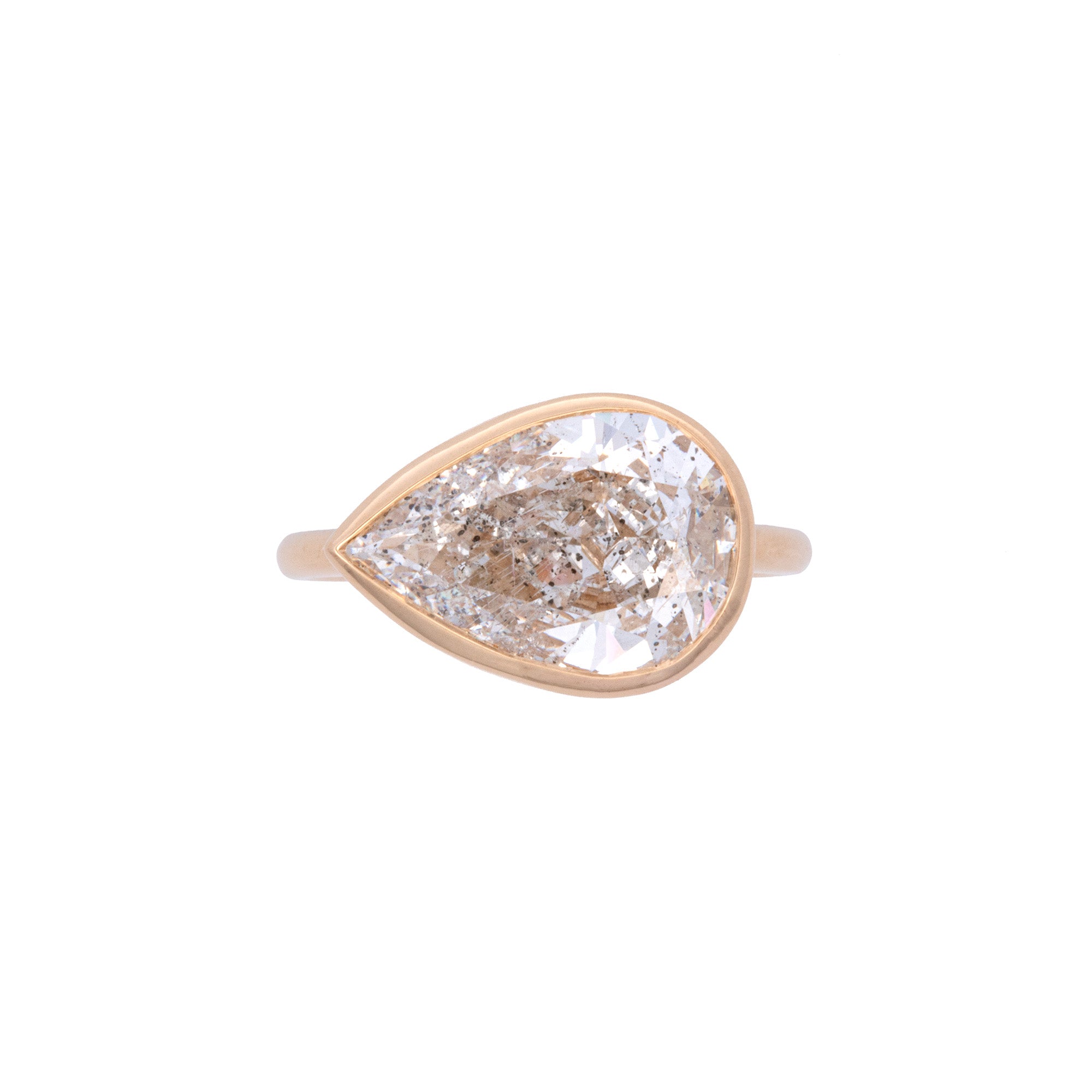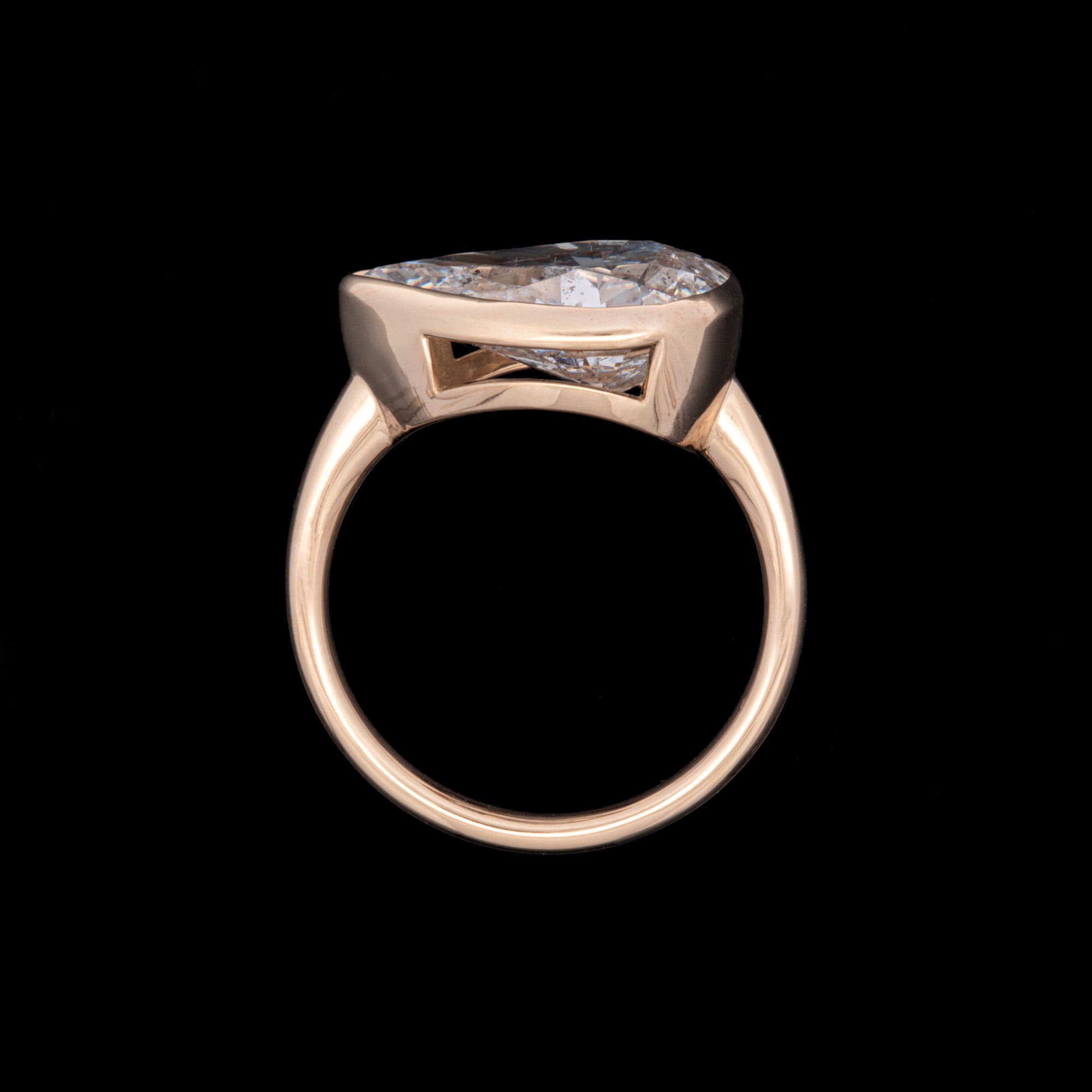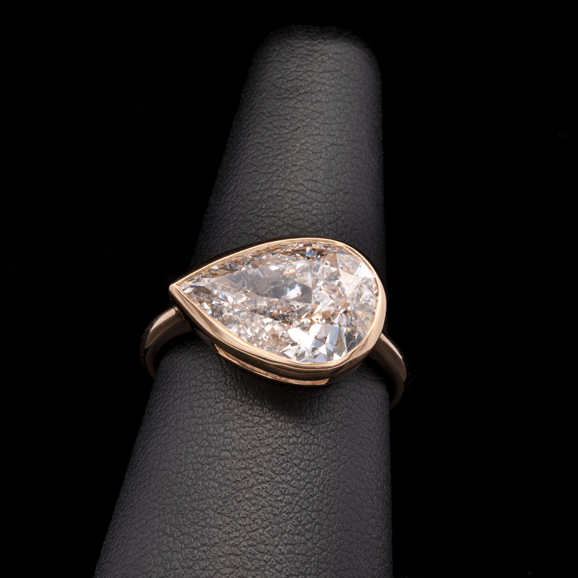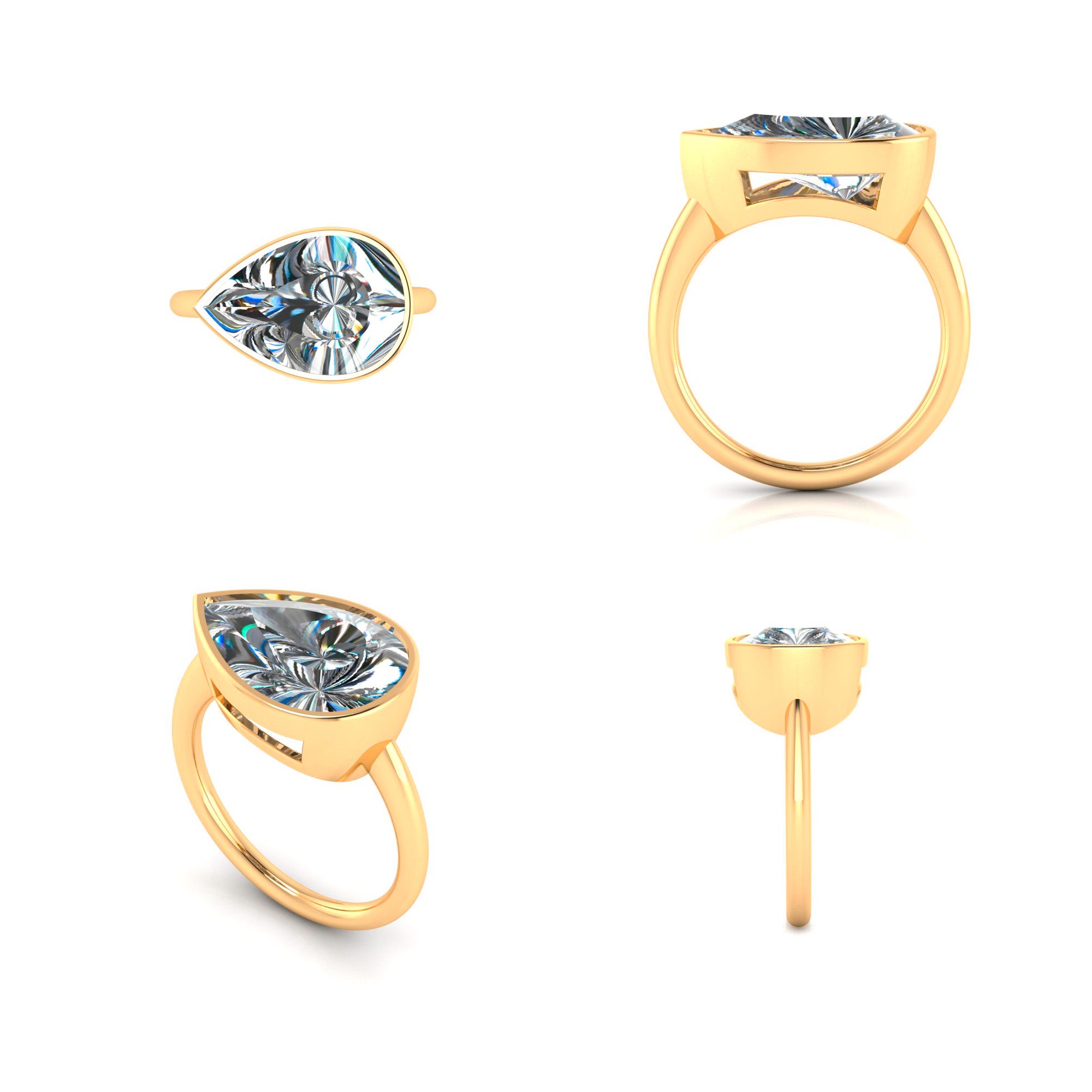 Custom 18K Yellow Gold Bezel Set Pear Shape Diamond Ring.