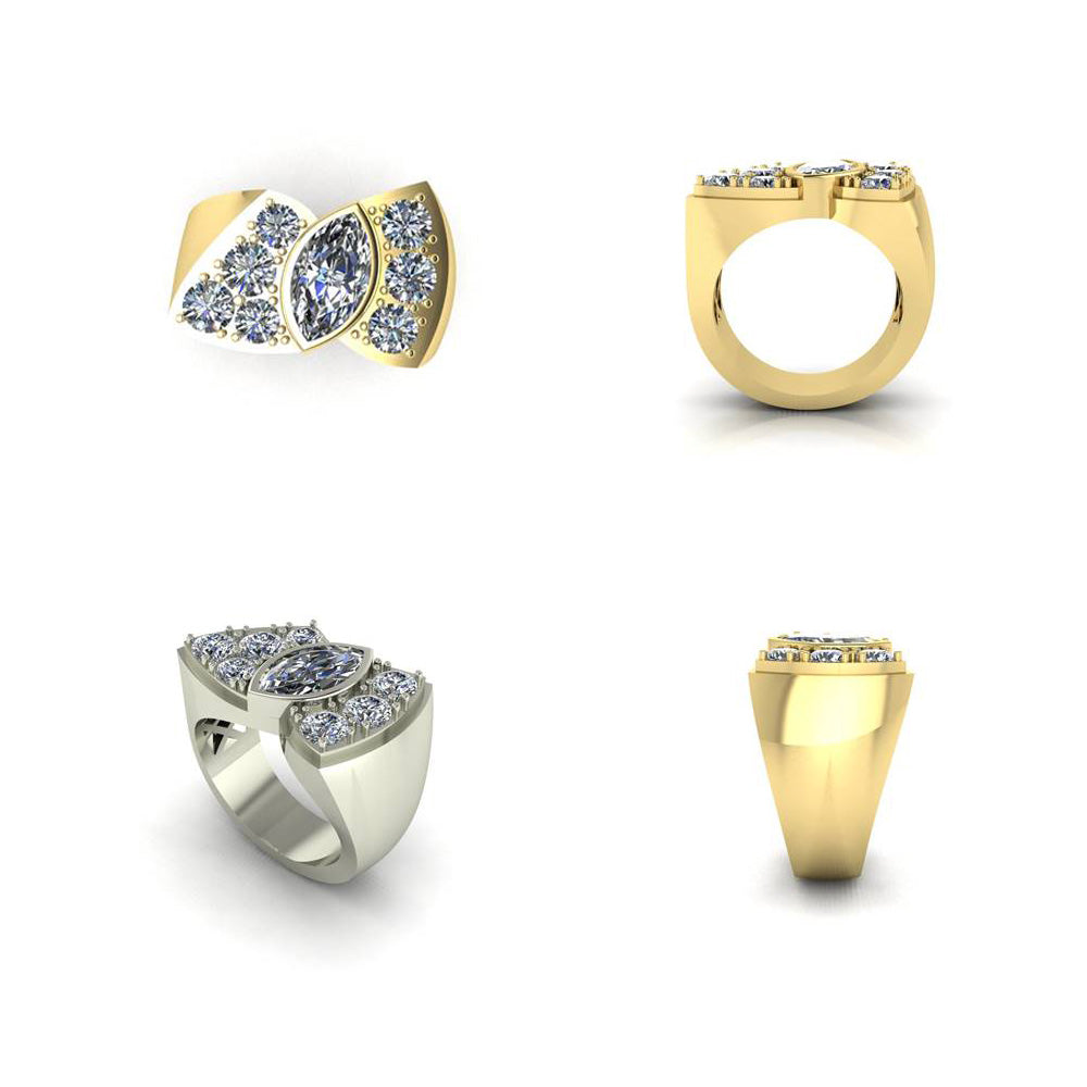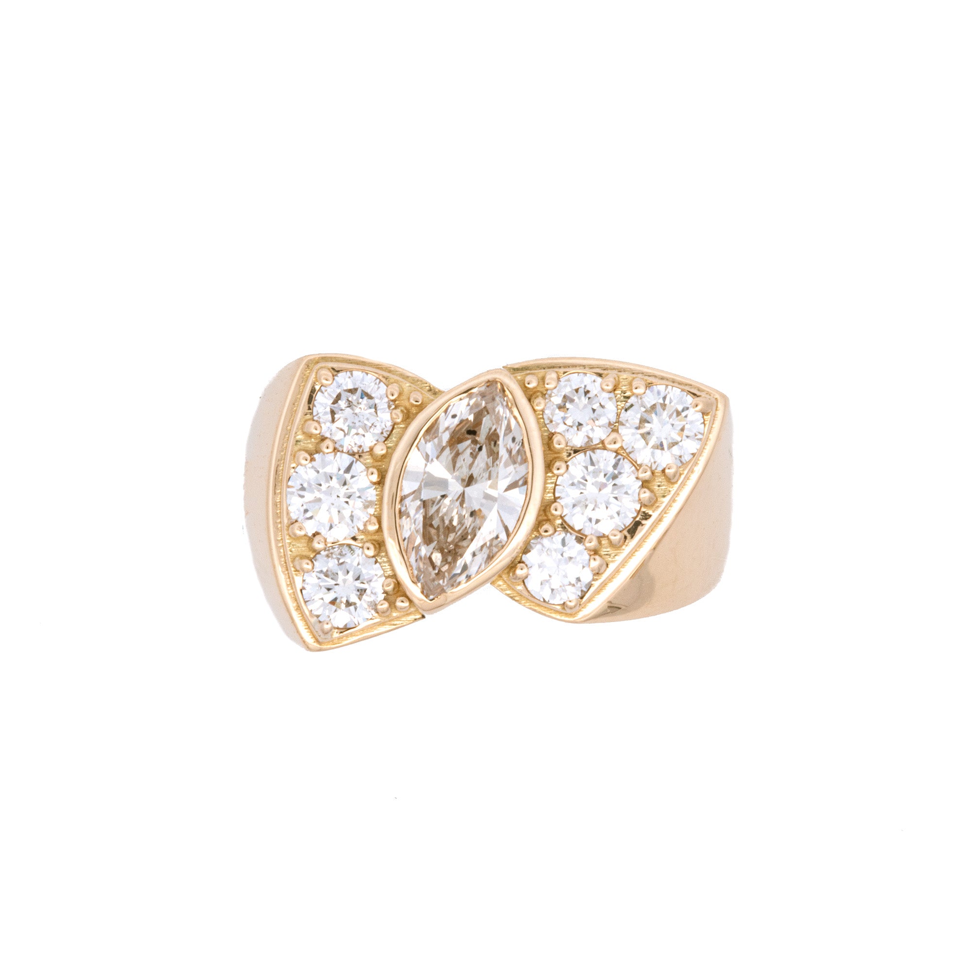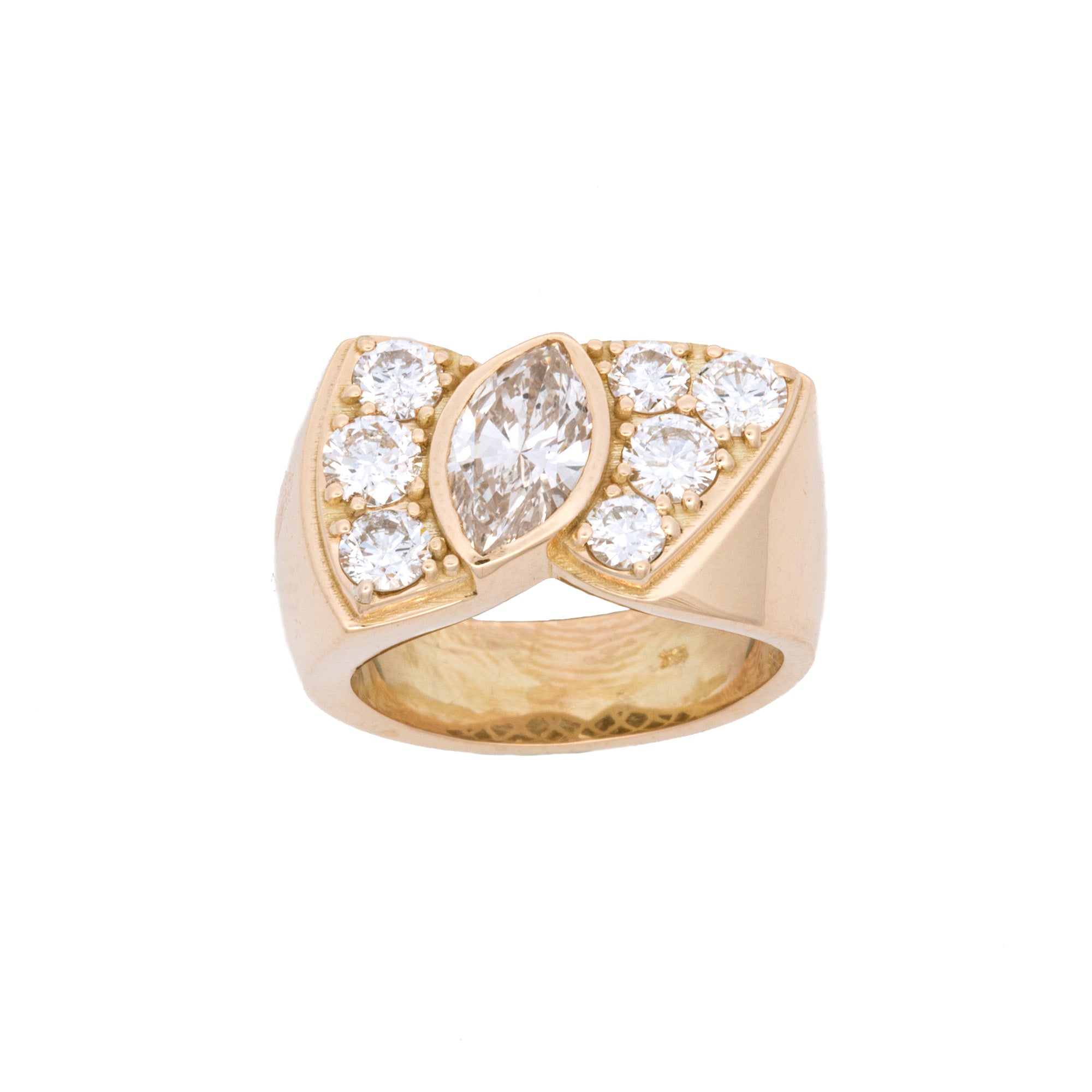 Custom 18K Yellow Gold Marquise And Round Diamond Ring