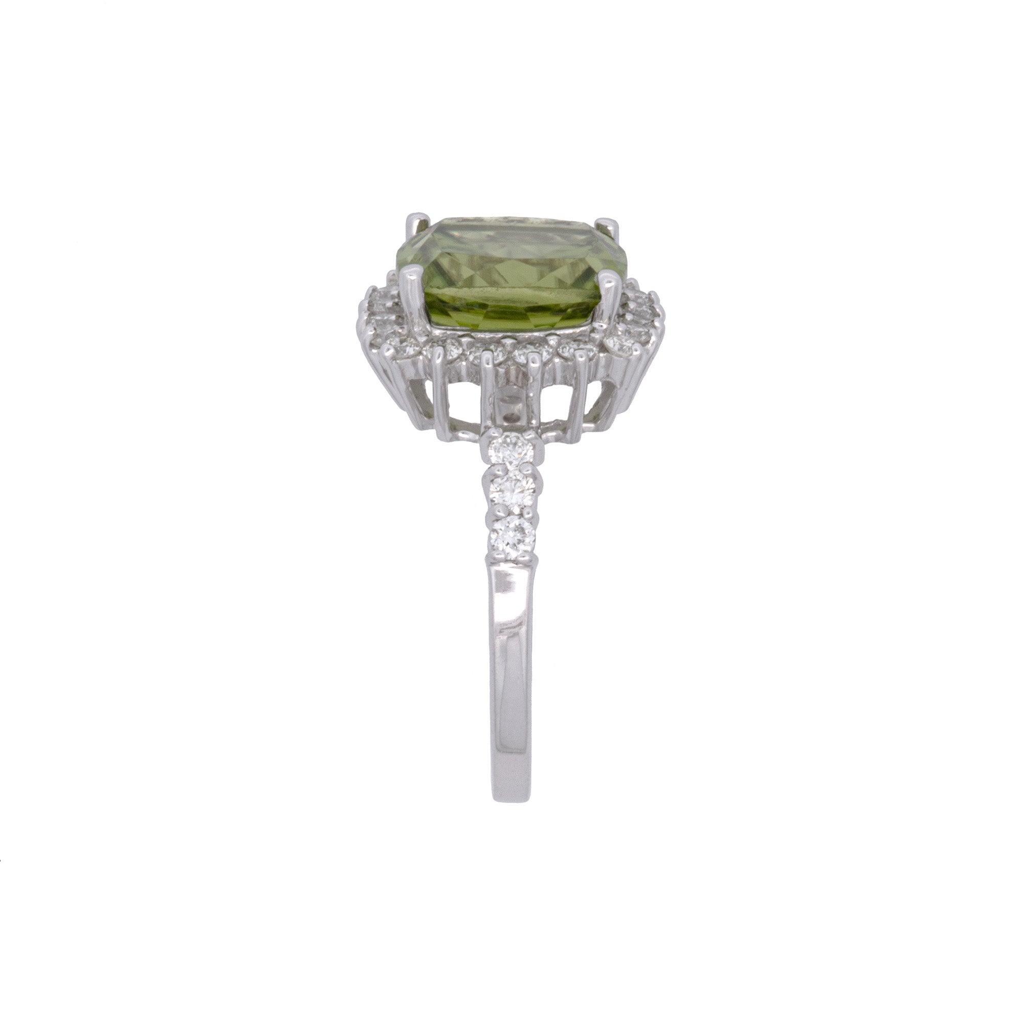 14K White Gold Cushion Cut Peridot And Diamond Halo Ring