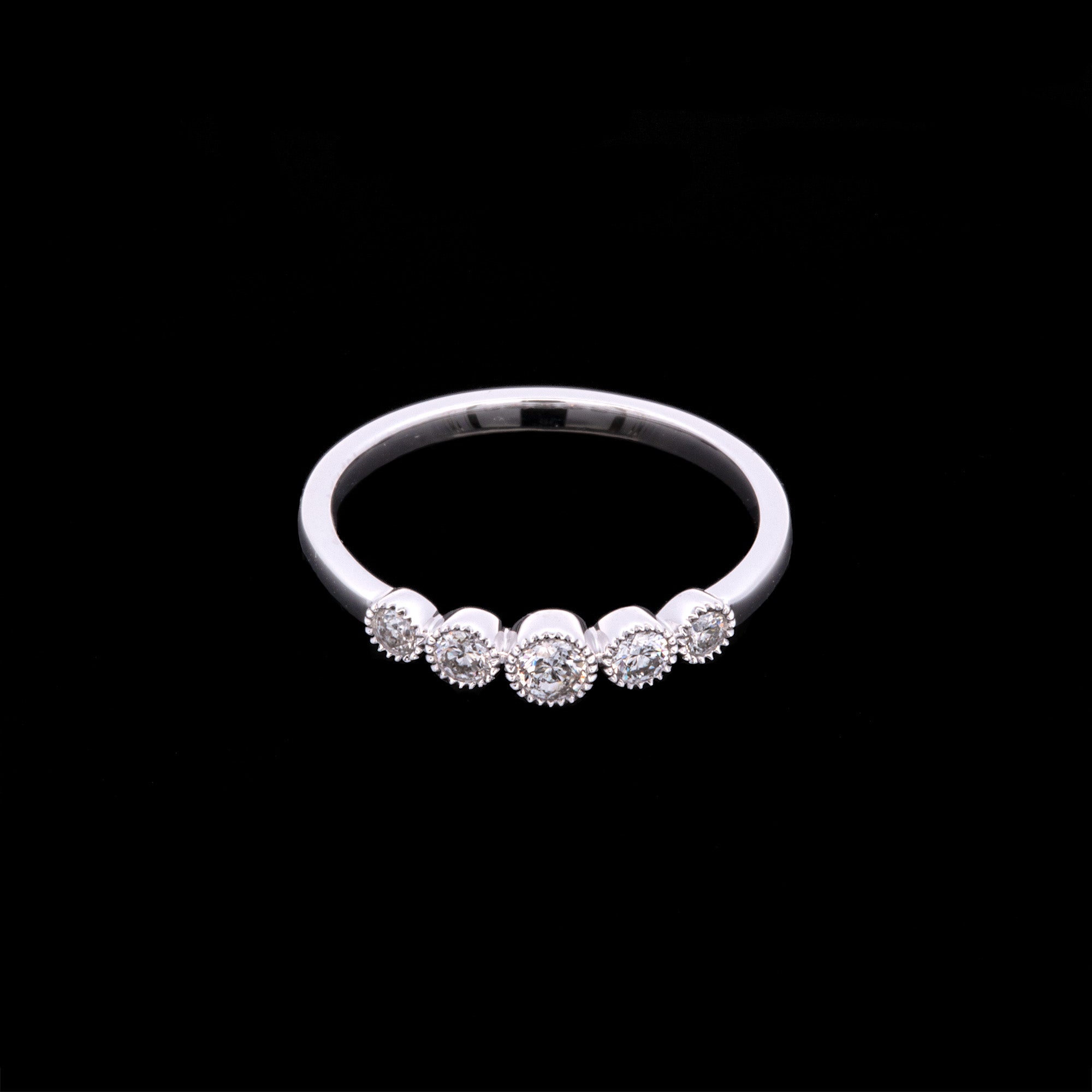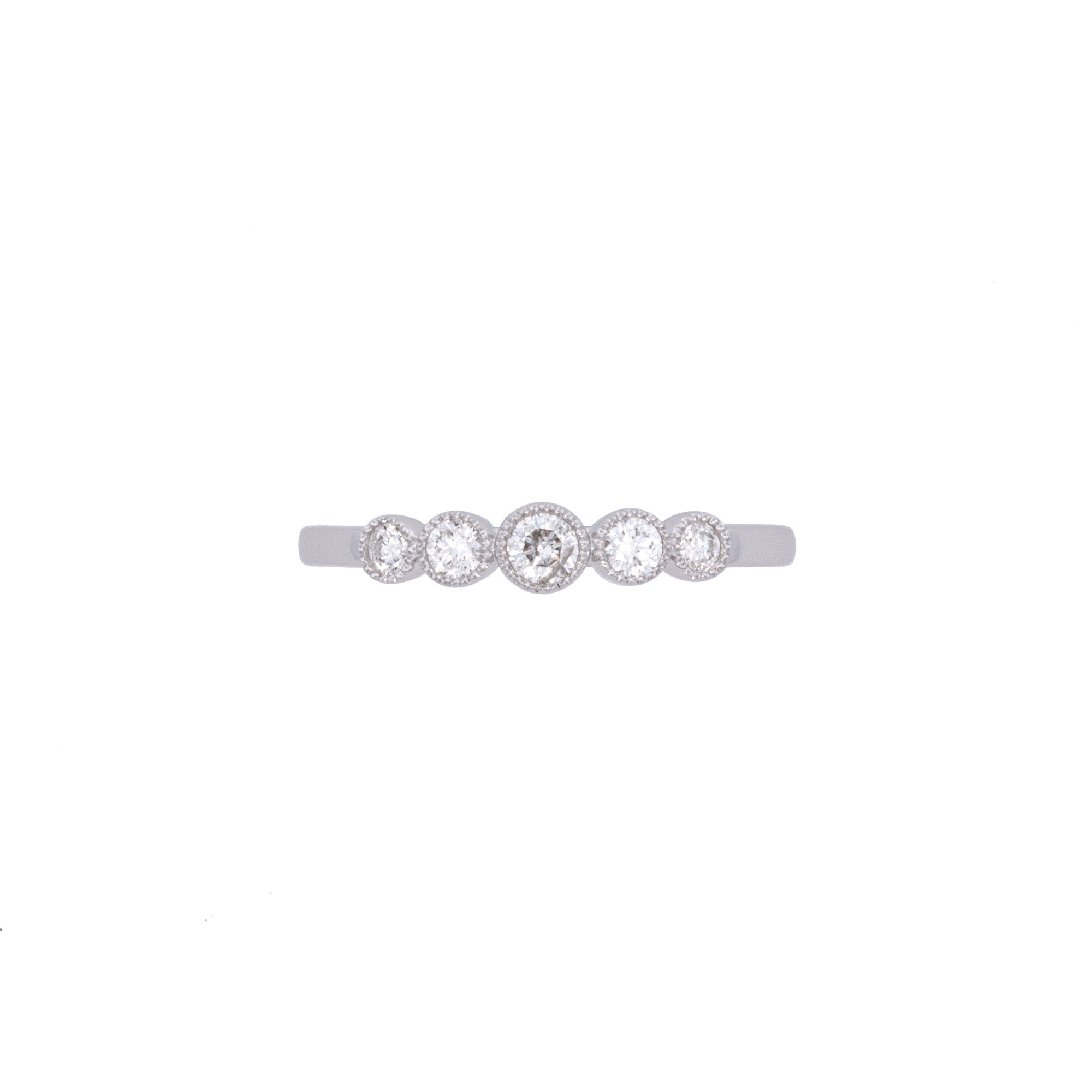 14K White Gold Five Stone Graduated Diamond Ring. Diamonds Weigh A Total Of 0.27 Carats. Sizing Available.