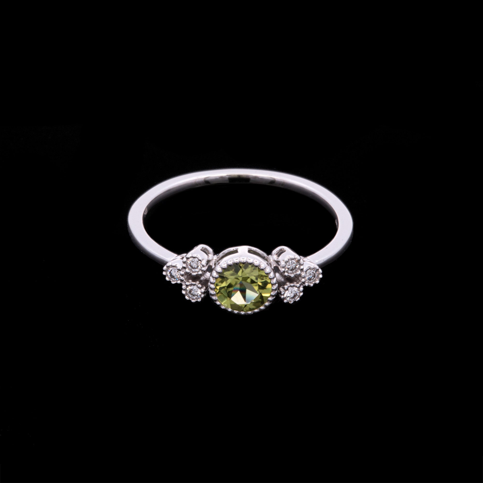 14K White Gold Peridot And Diamond Ring. Peridot Weighs 0.50 Carats. Diamonds Weigh A Total Of 0.07 Carats. Sizing Available.