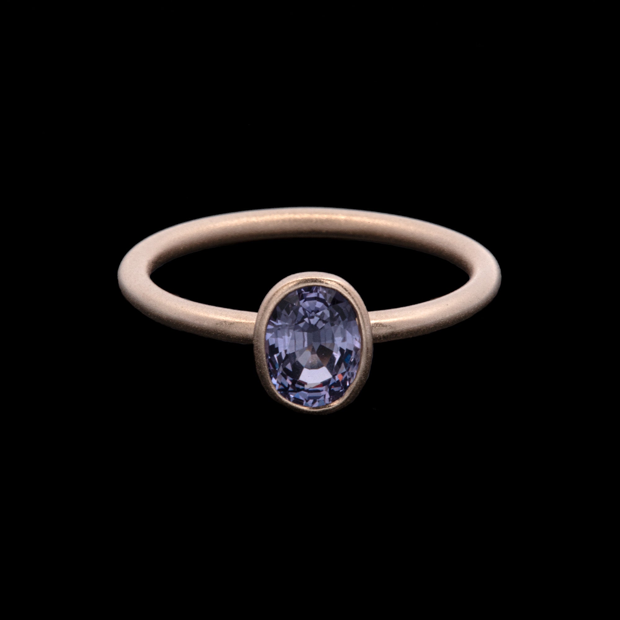 14K Yellow Gold Bezel Set Oval Purple Sapphire Ring. Sapphire Weighs 1.05 Carats. Sizing Available.