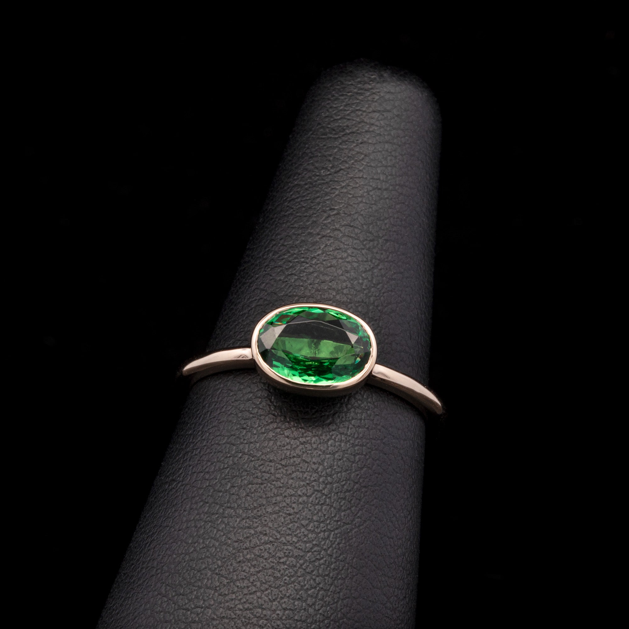 14K Yellow Gold Bezel Set Oval Tsavorite Garnet Ring