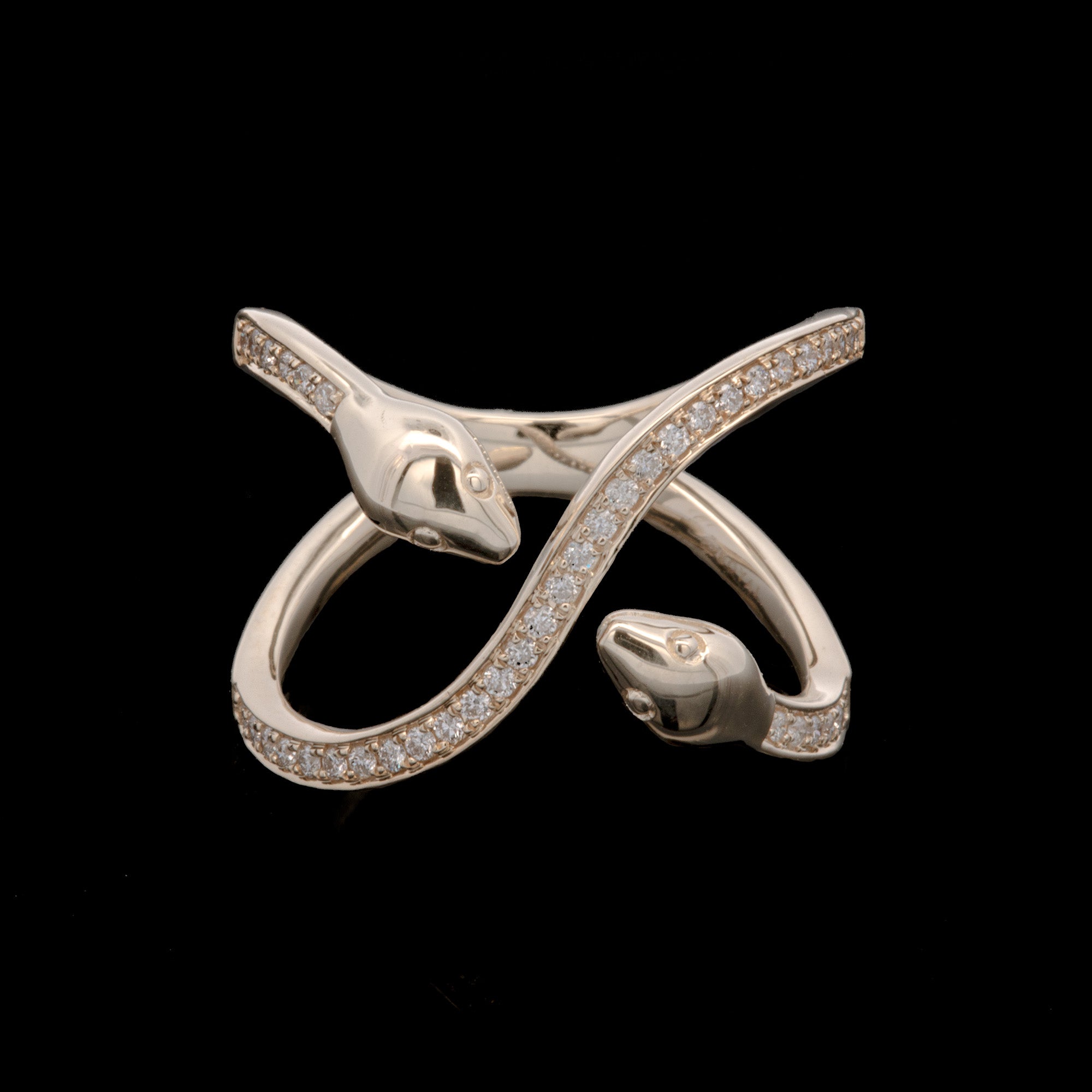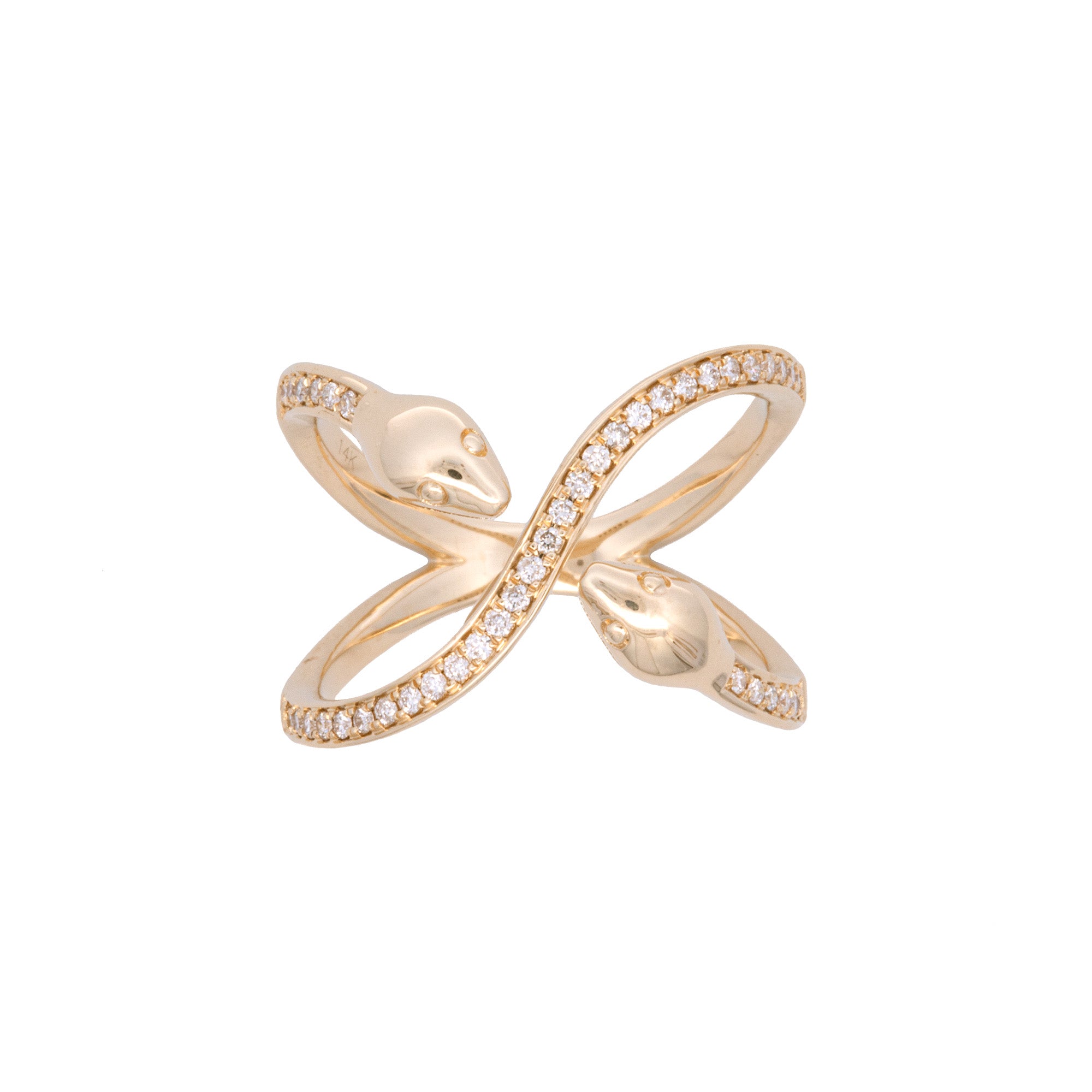 14K Yellow Gold Diamond Snake Ring. Diamonds Weigh A Total Of 0.25 Carats.