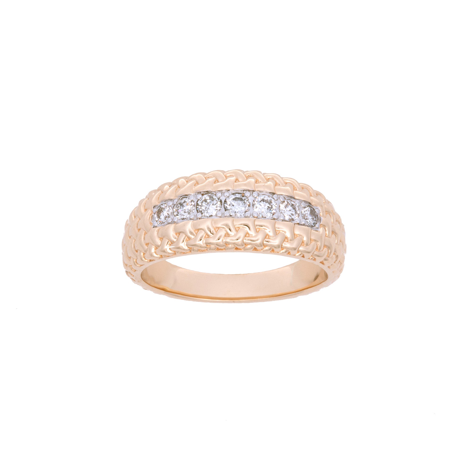 14K Yellow Gold Diamond Woven Gold Band. Diamonds Weigh A Total Of 0.33 Carats.
