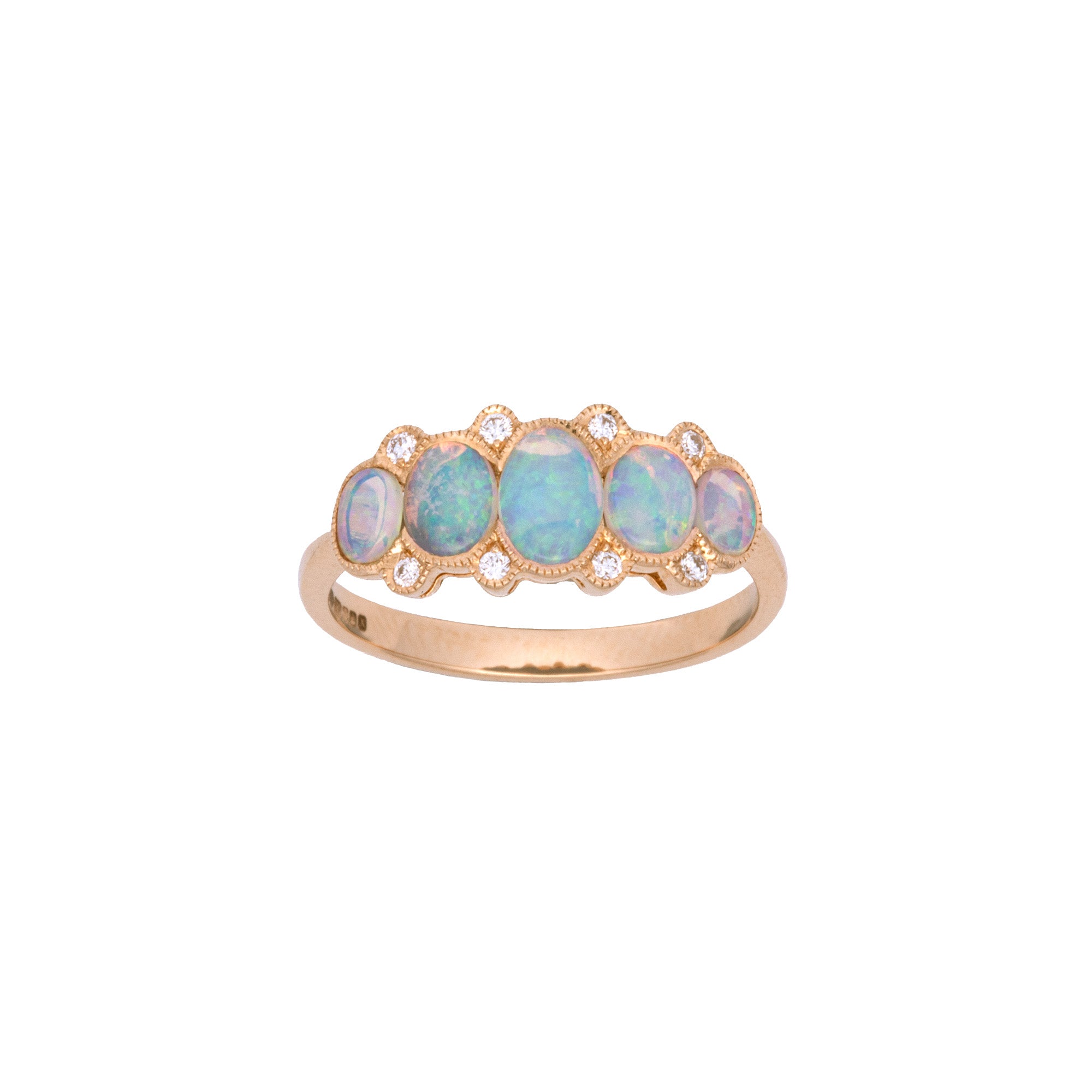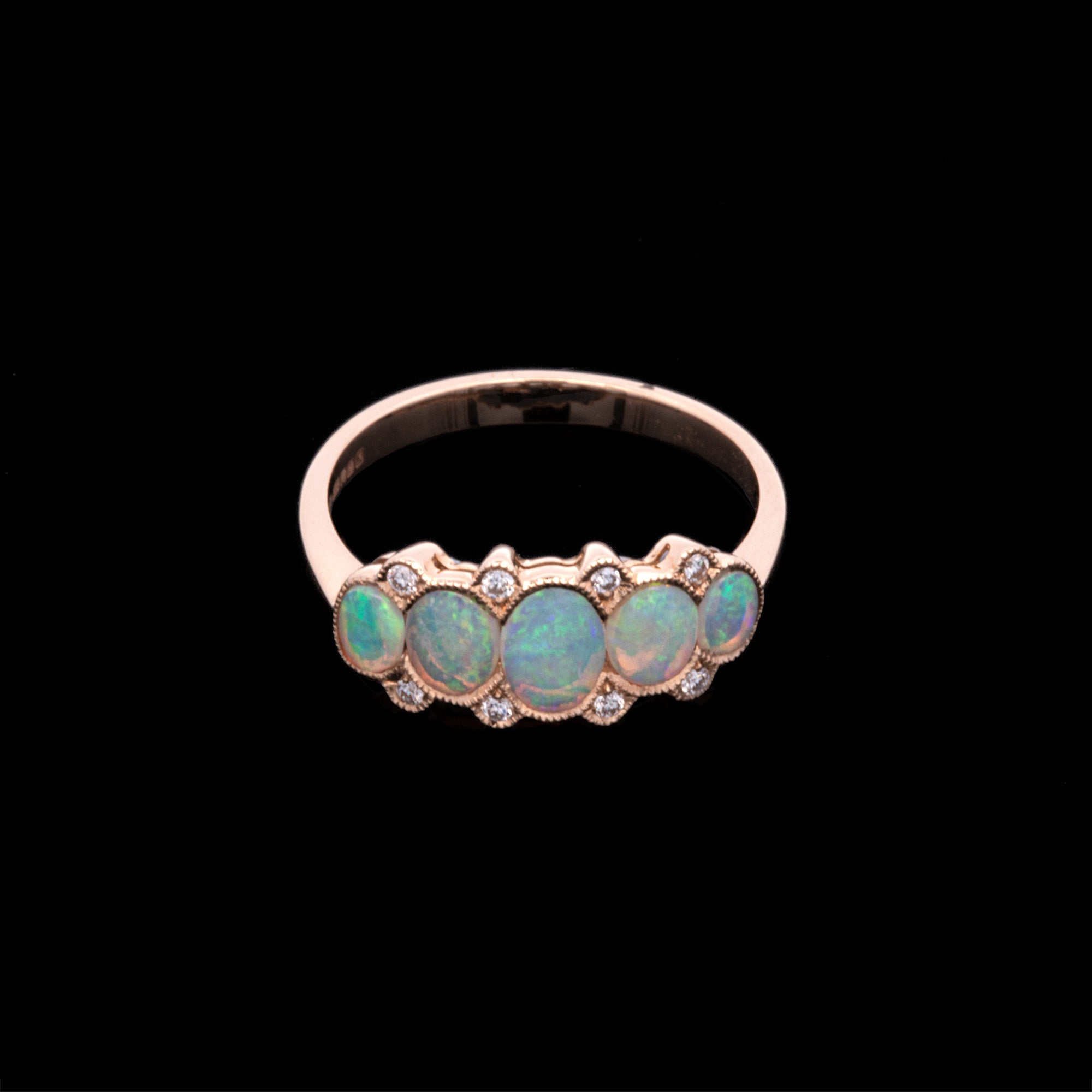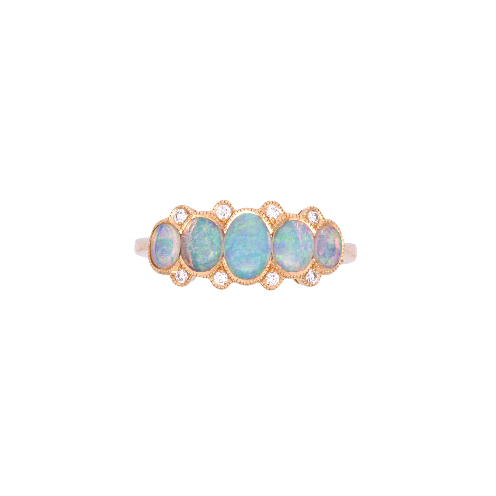 14K Yellow Gold Five Stone Opal And Diamond Ring