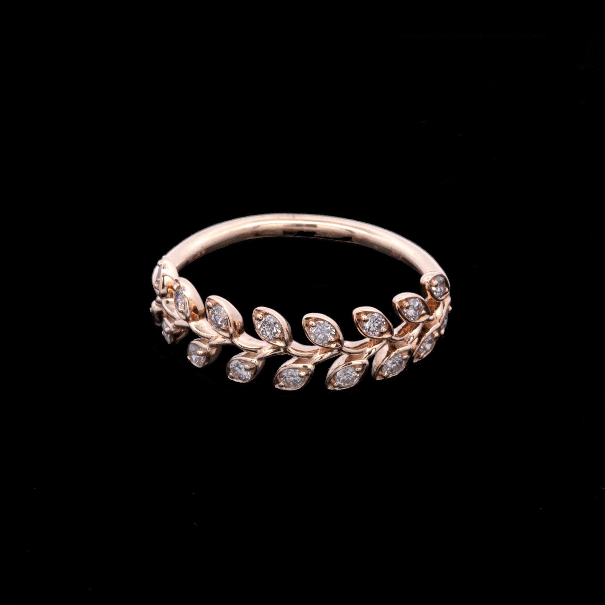 14K Yellow Gold Off-Set Diamond Leaf Ring. Seventeen Diamonds Weigh A Total Of 0.32 Carats. Sizing Available.
