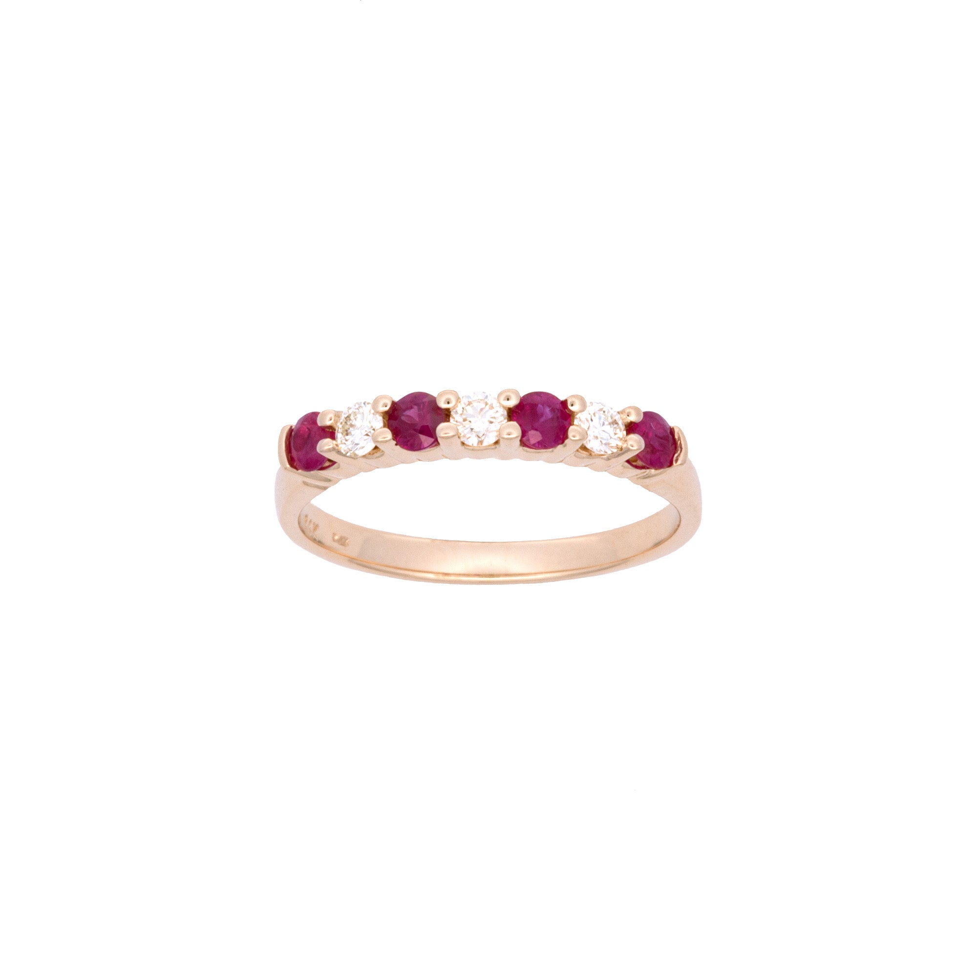 14K Yellow Gold Ruby And Diamond Band. Rubies Weigh A Total Of 0.40 Carats. Diamonds Weigh A Total Of 0.22 Carats. Sizing Available.