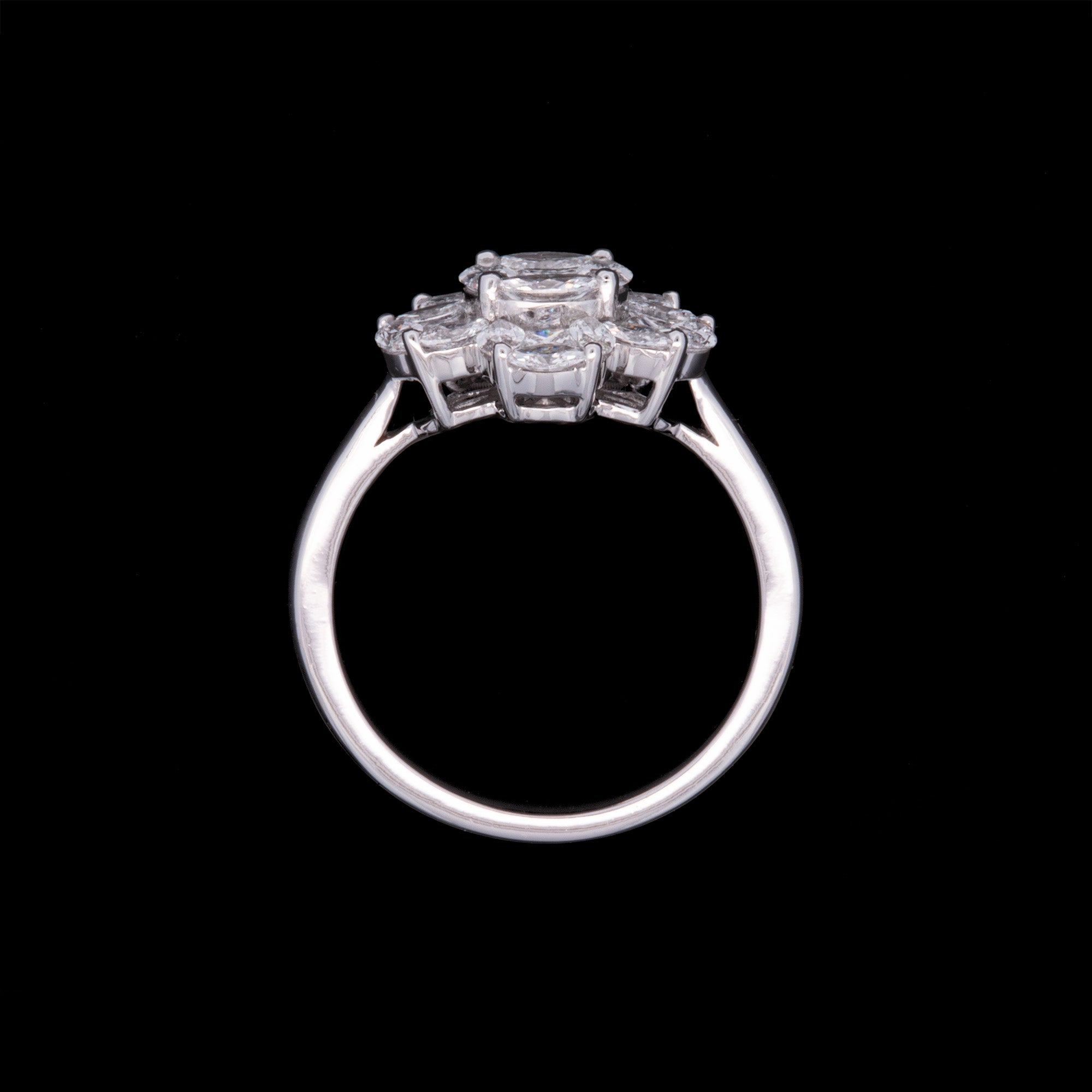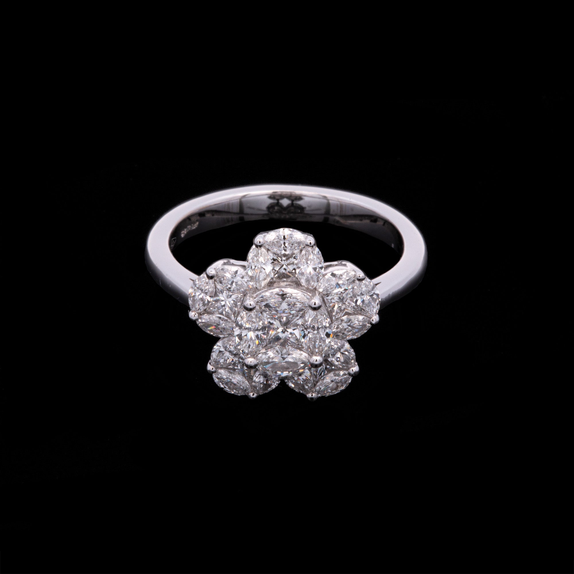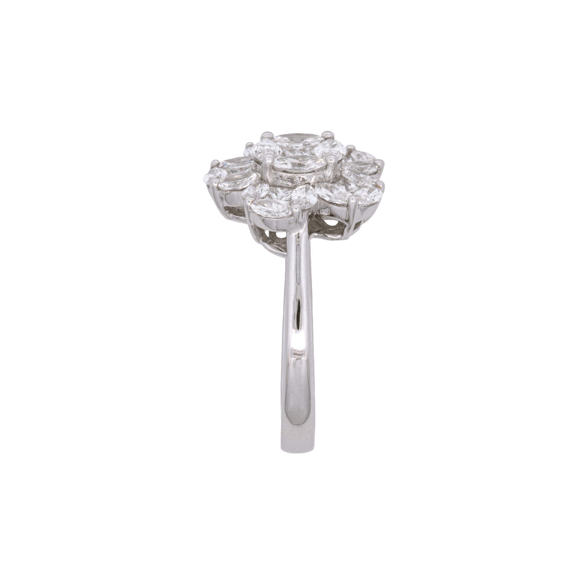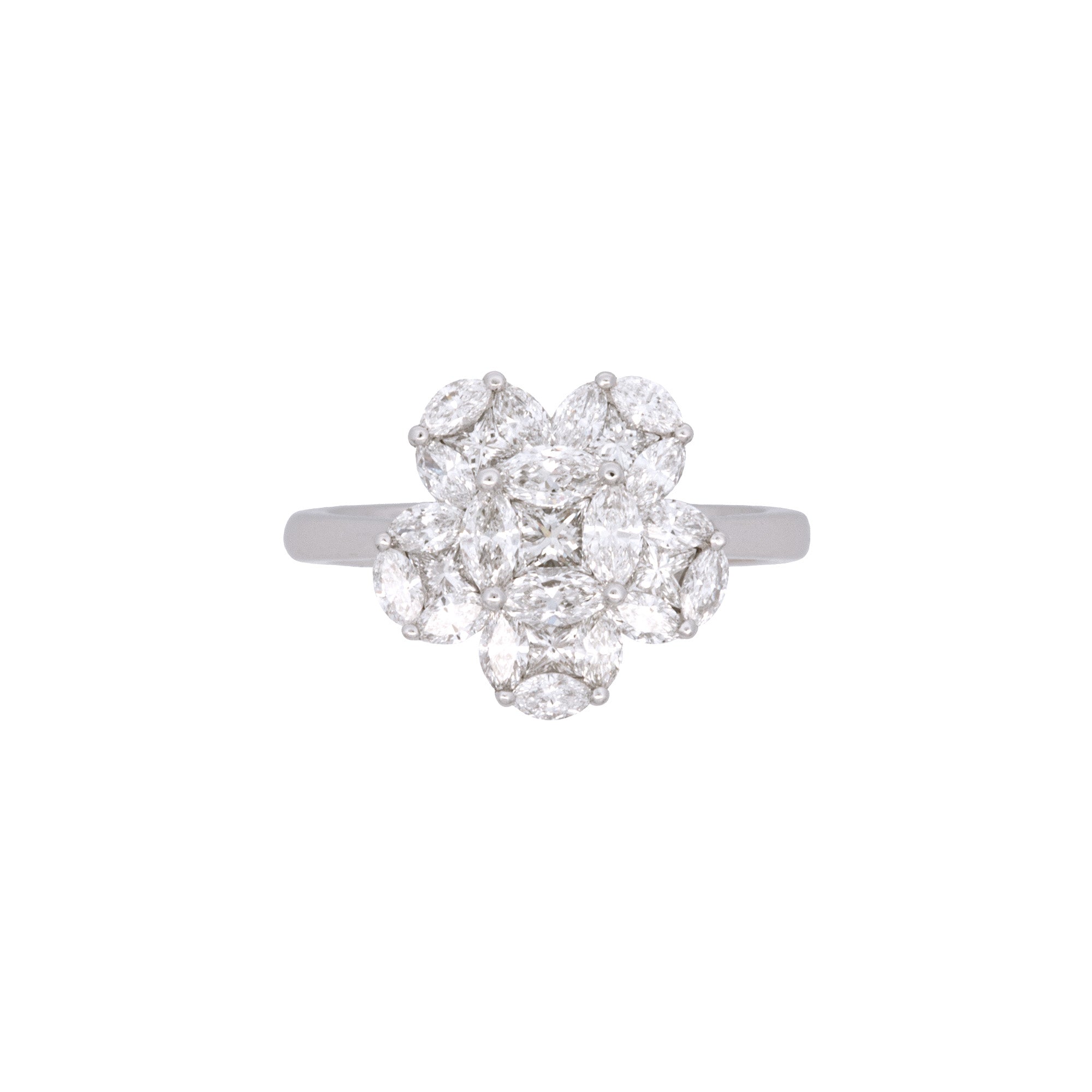 18K White Gold Marquise And Princess Cut Diamond Cluster Ring