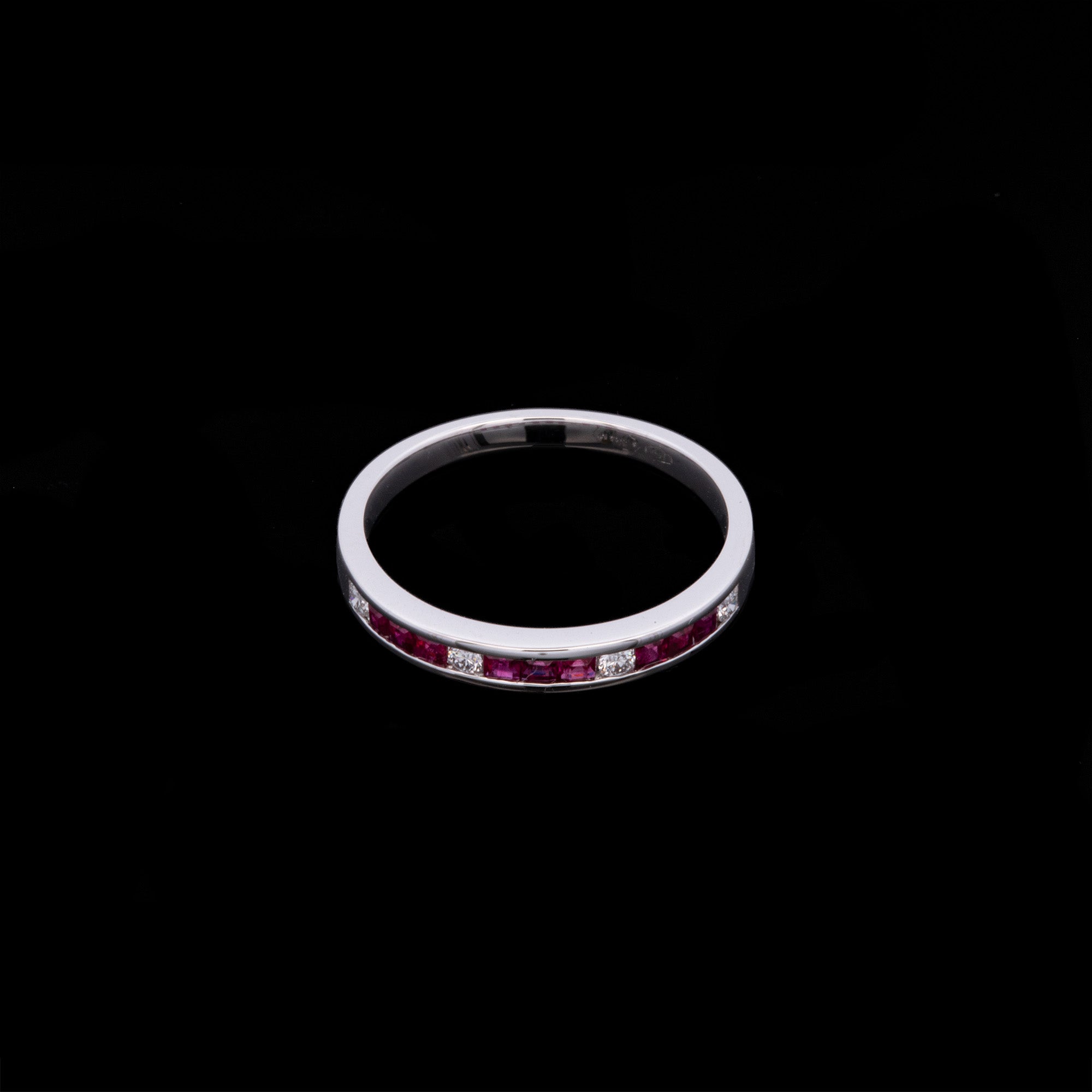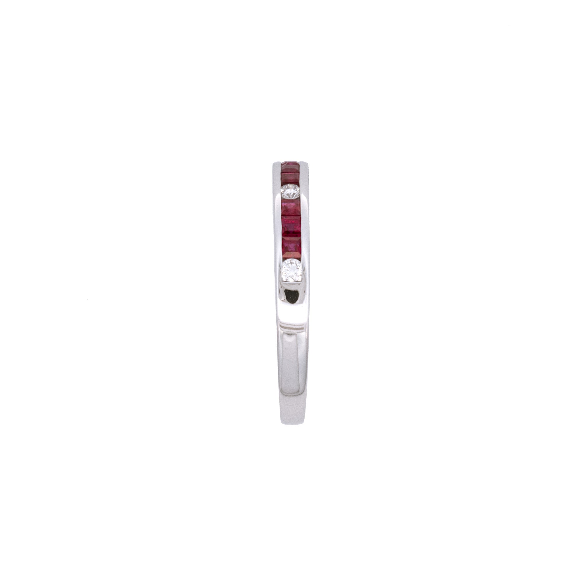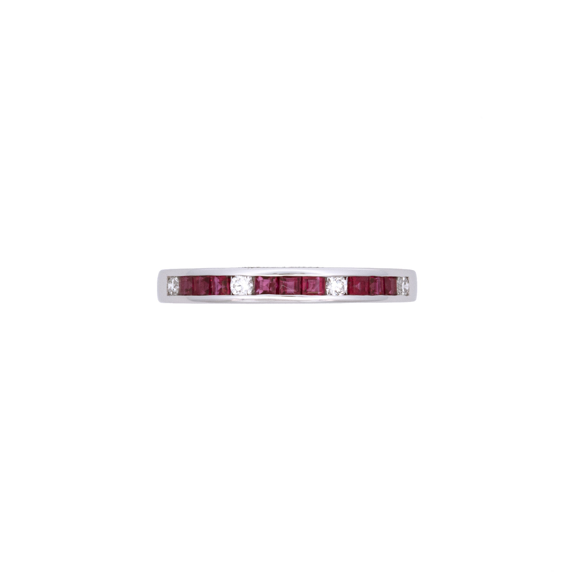 18K White Gold Square Cut Ruby And Diamond Channel Set Band