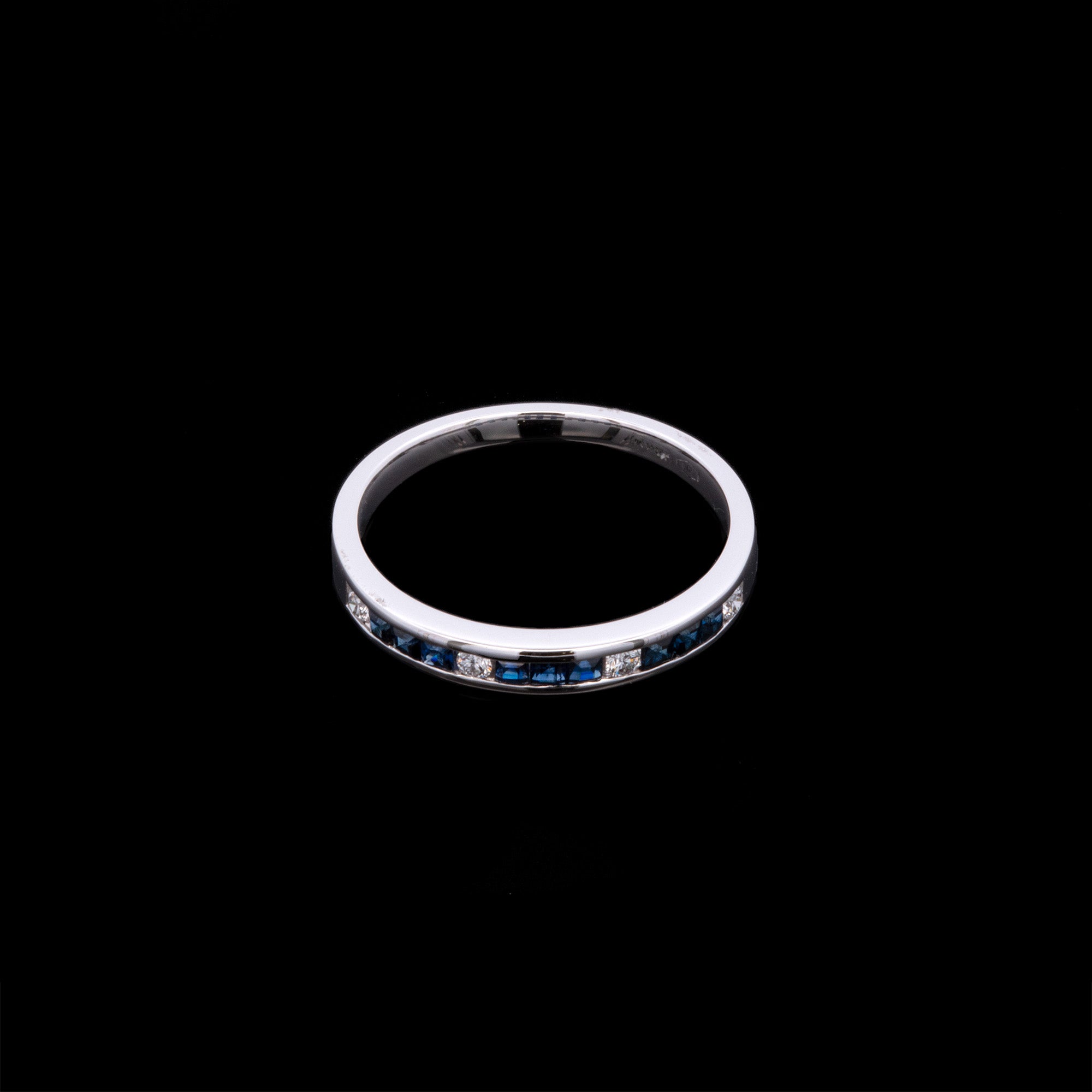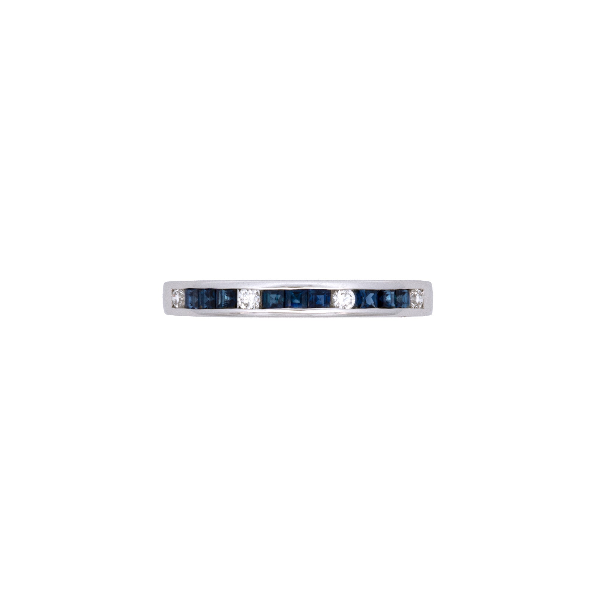 18K White Gold Square Cut Sapphire And Diamond Channel Set Band