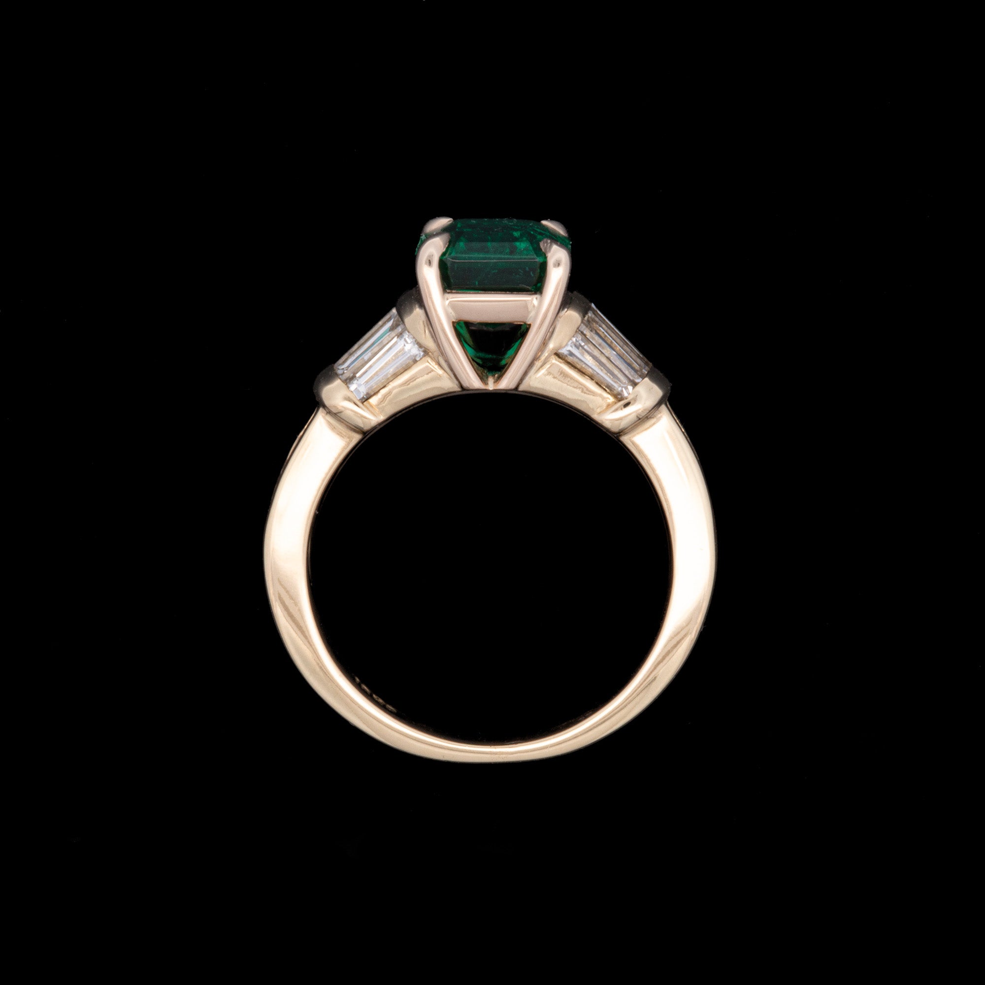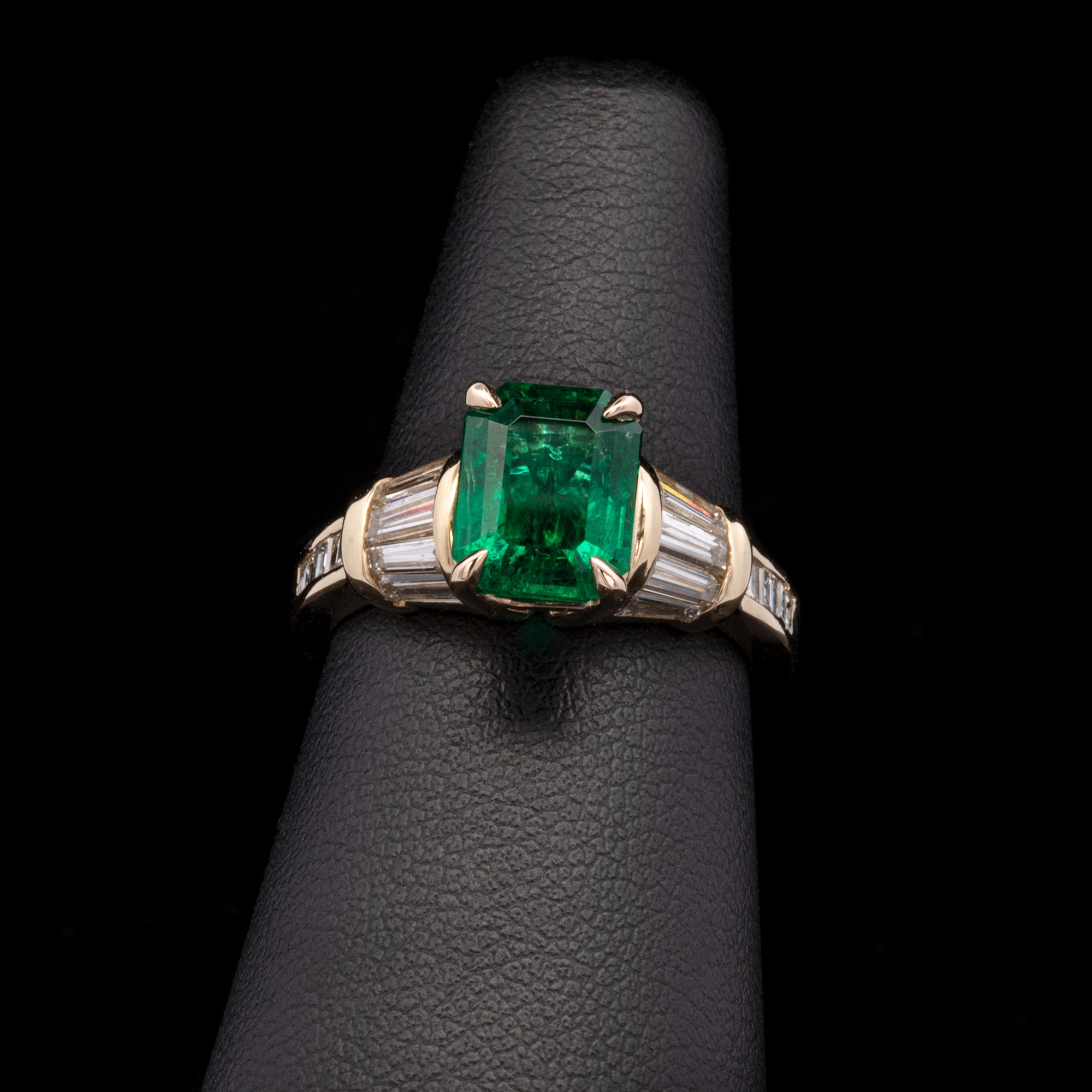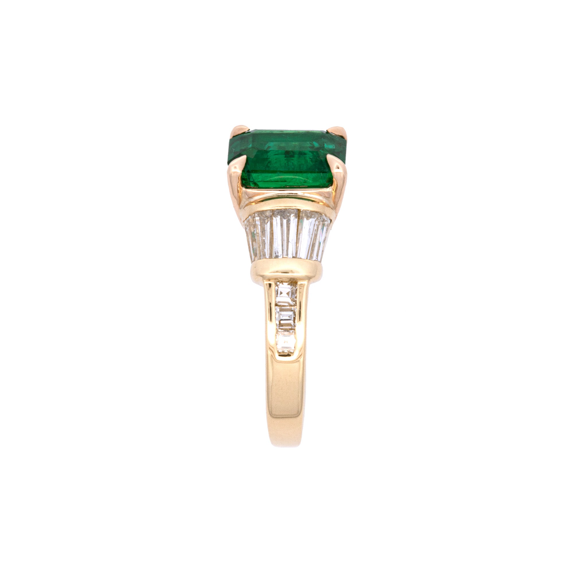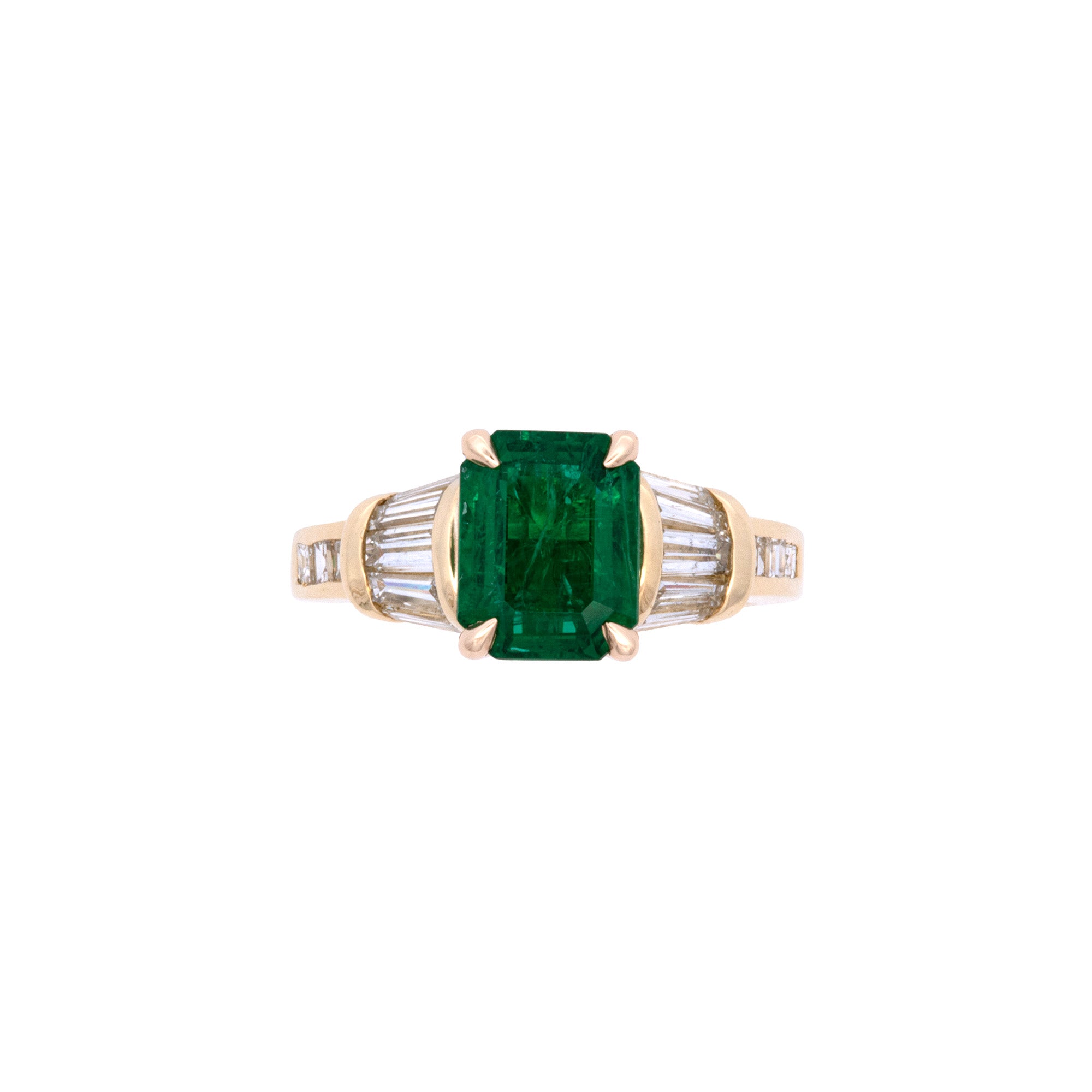 18K Yellow Gold Emerald And Diamond Ring. Emerald Weighs 2.33 Carats; GIA Certified. Sixteen Diamonds Weigh A Total Of 0.75 Carats And Have G-H Color, VS1-VS2 Clarity. Sizing Available.