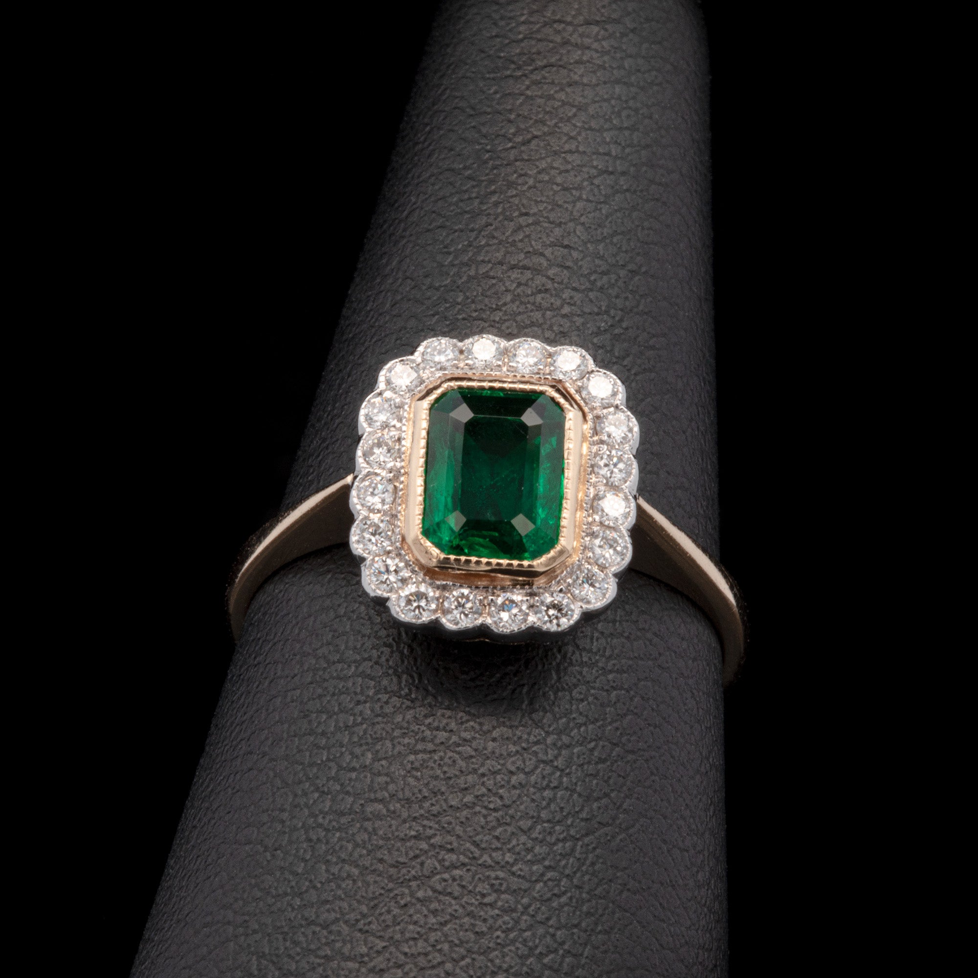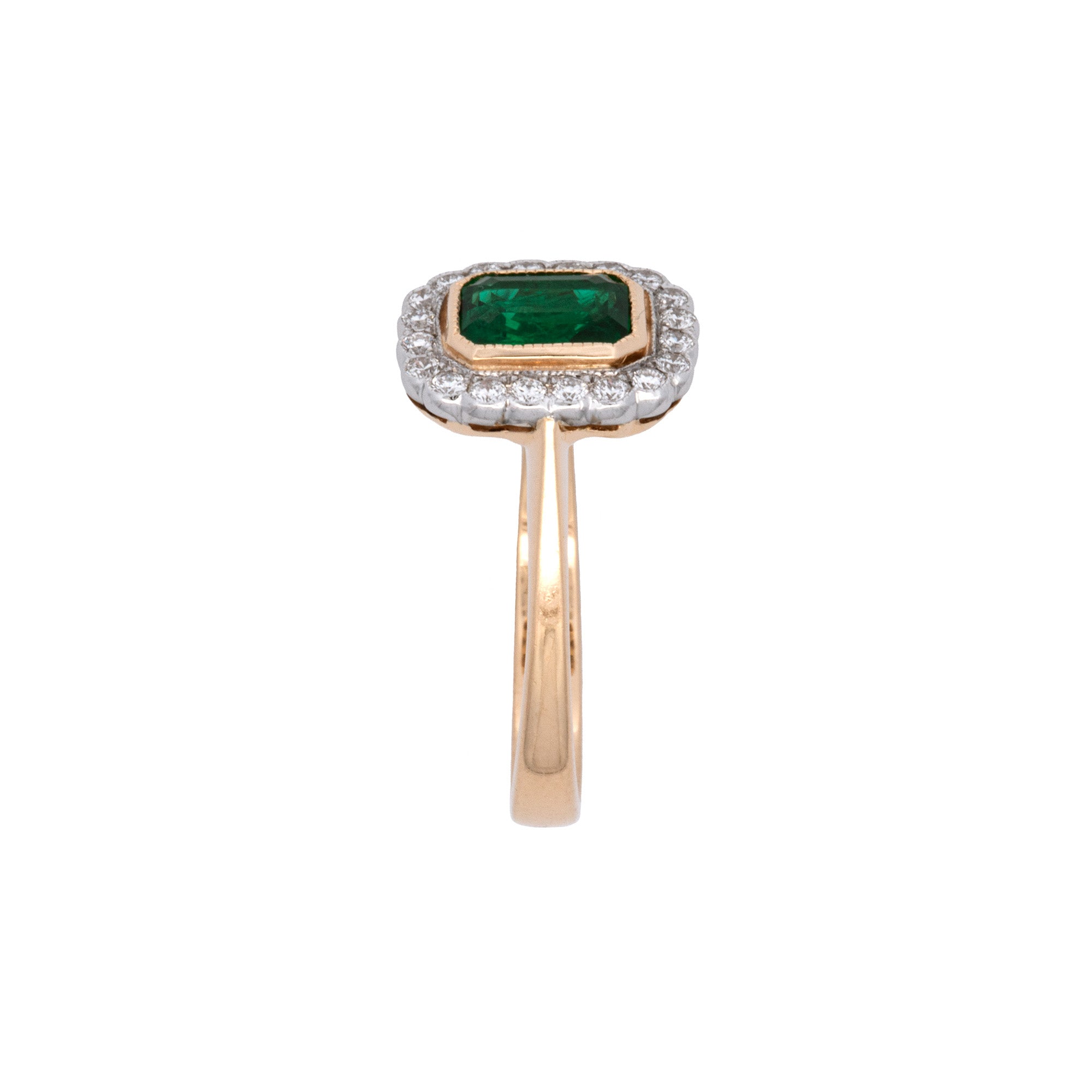 18K Yellow Gold Octagonal Emerald And Diamond Halo Ring