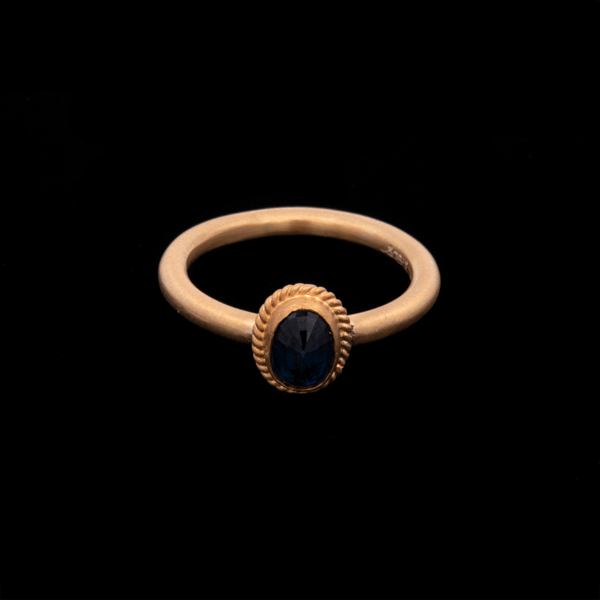 24K Yellow Gold Oval Sapphire Ring With Rope Bezel. Hand Made In Turkey. Sizing Available.