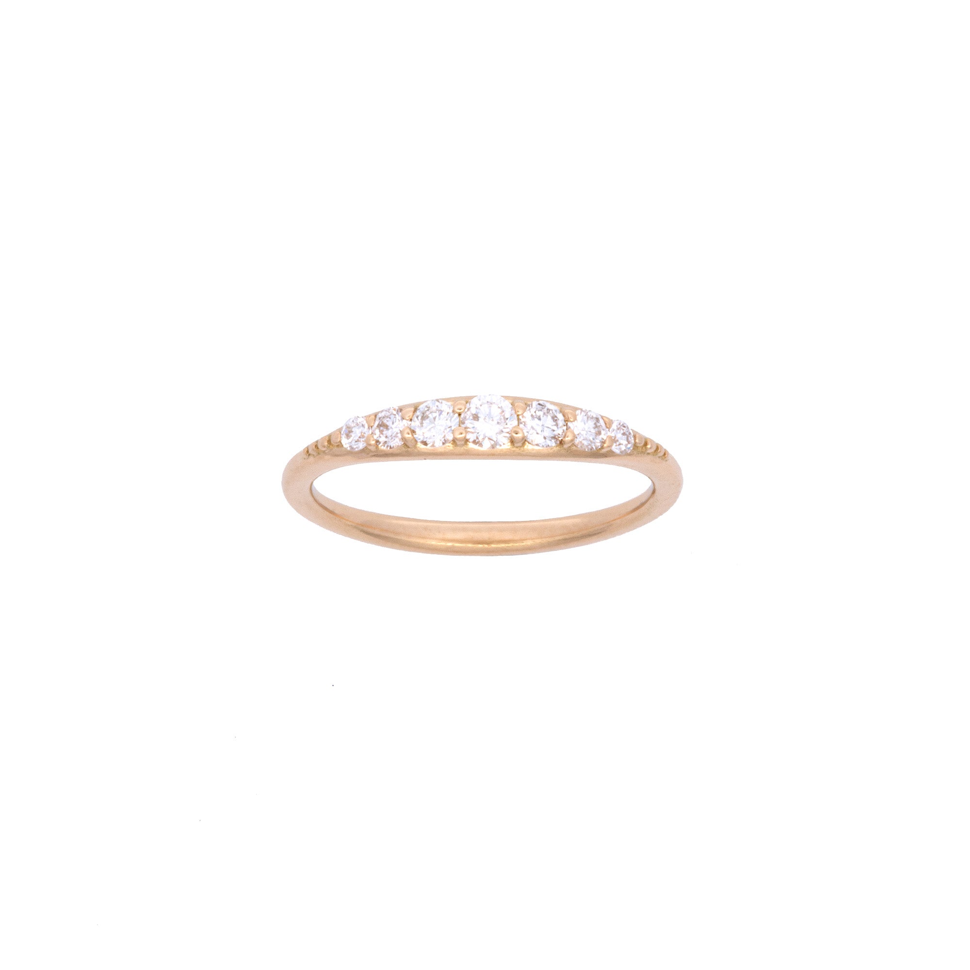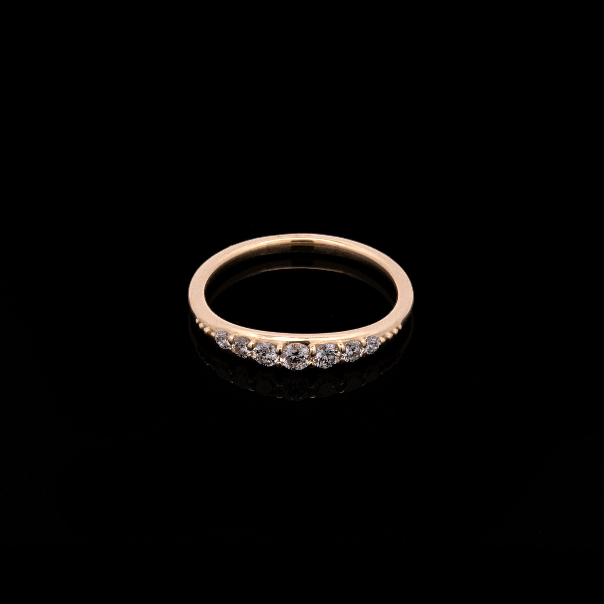 Custom 18K Yellow Gold Graduated Seven Diamond Antique-Style Wedding Band. Diamonds Weigh A Total Of 0.32 Carats And Have G-H Color, SI1 Clarity.