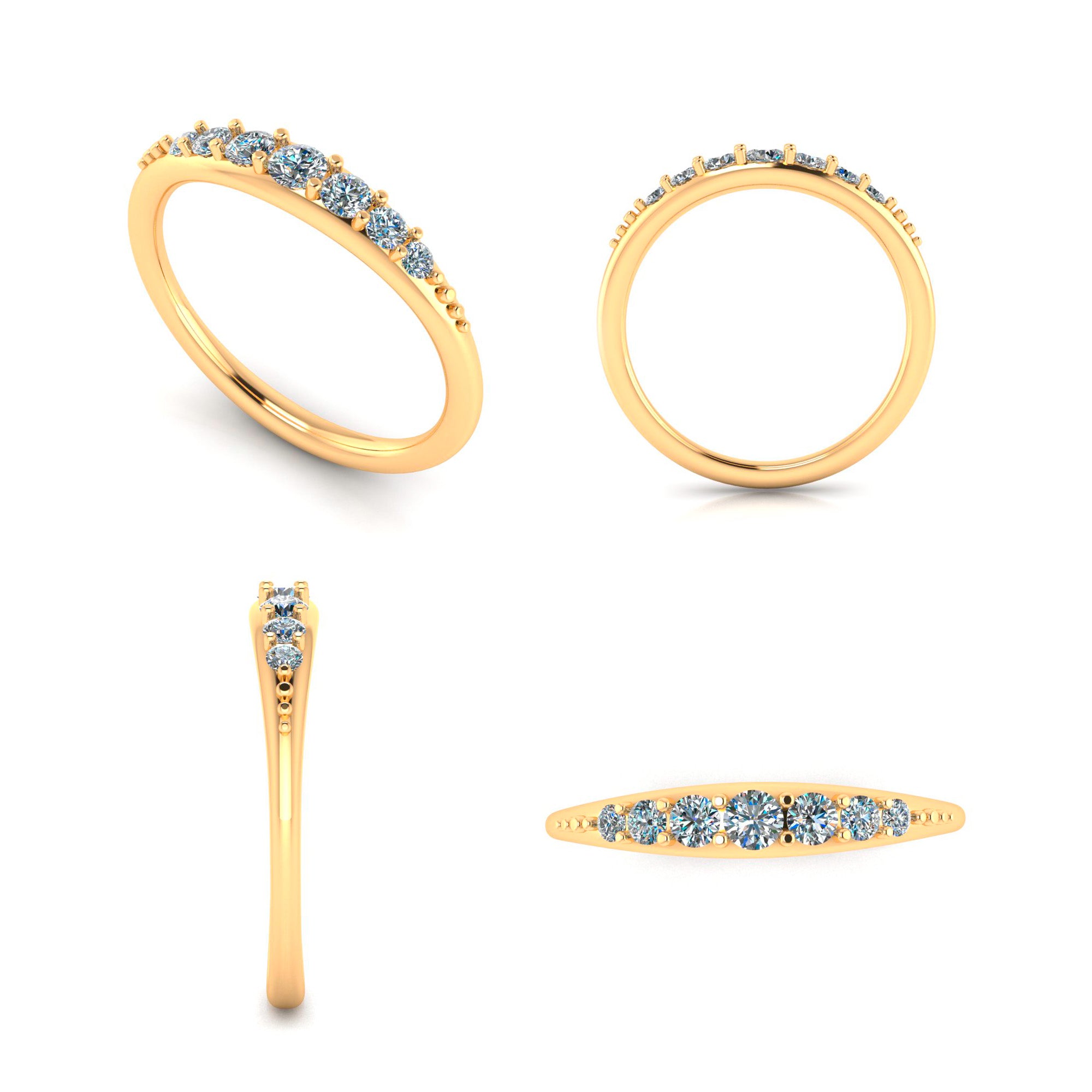 Custom 18K Yellow Gold Graduated Seven Diamond Antique-Style Wedding Band