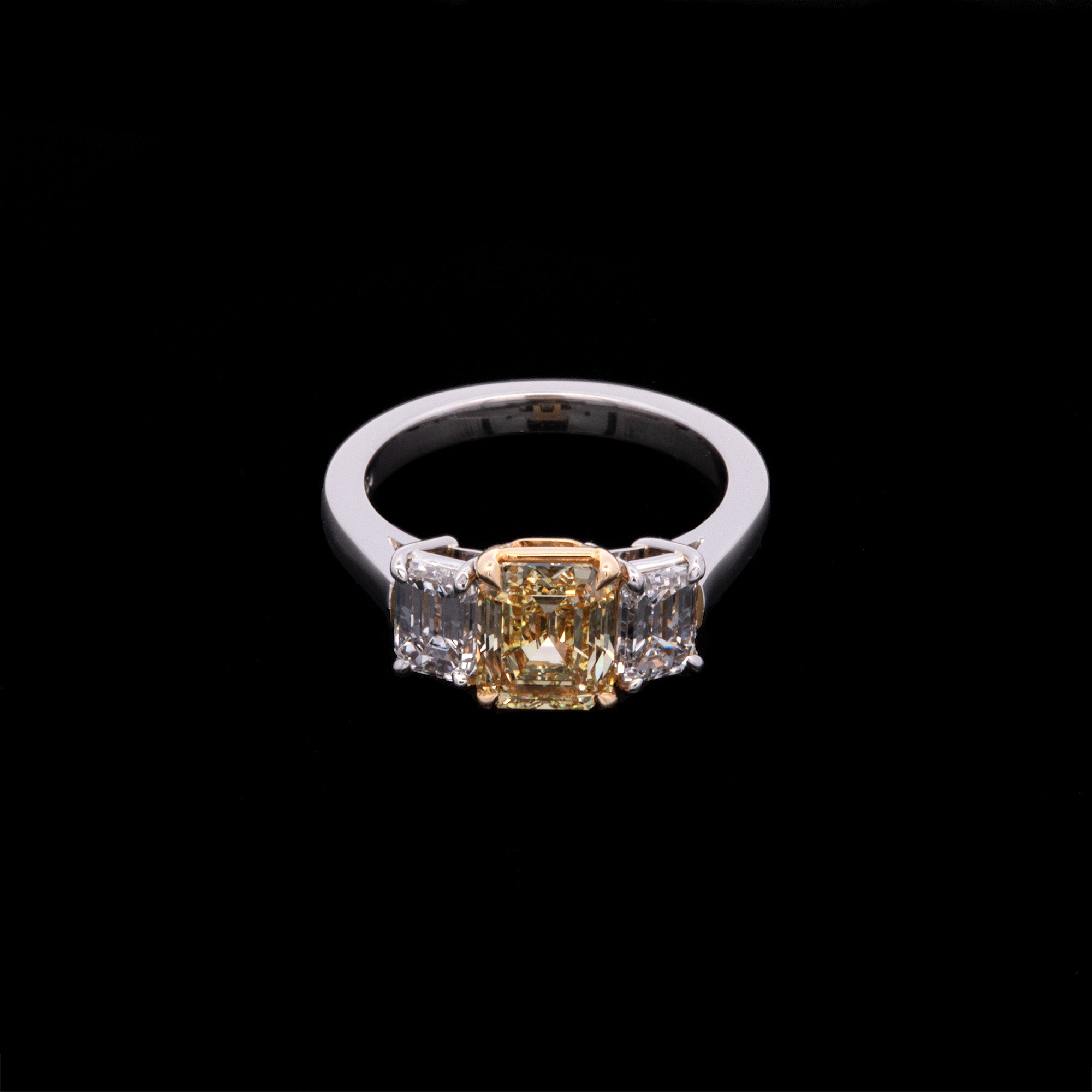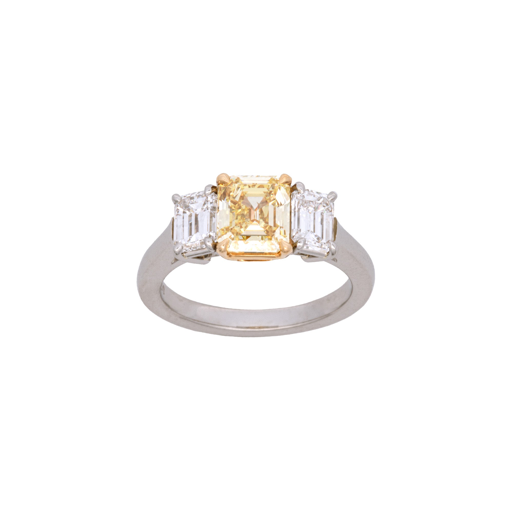 Platinum And 18K Yellow Gold Emerald Cut Fancy Intense Yellow Diamond Ring