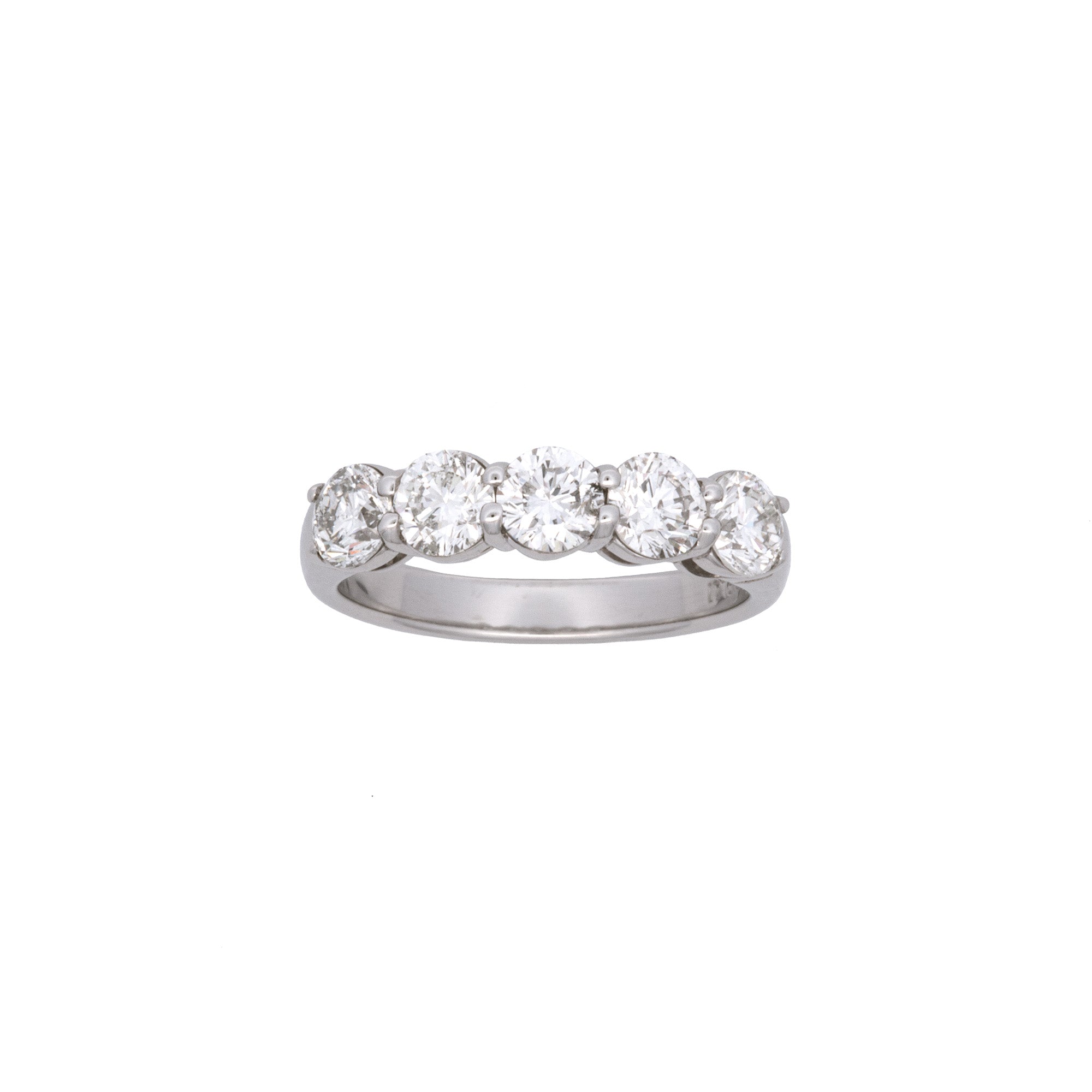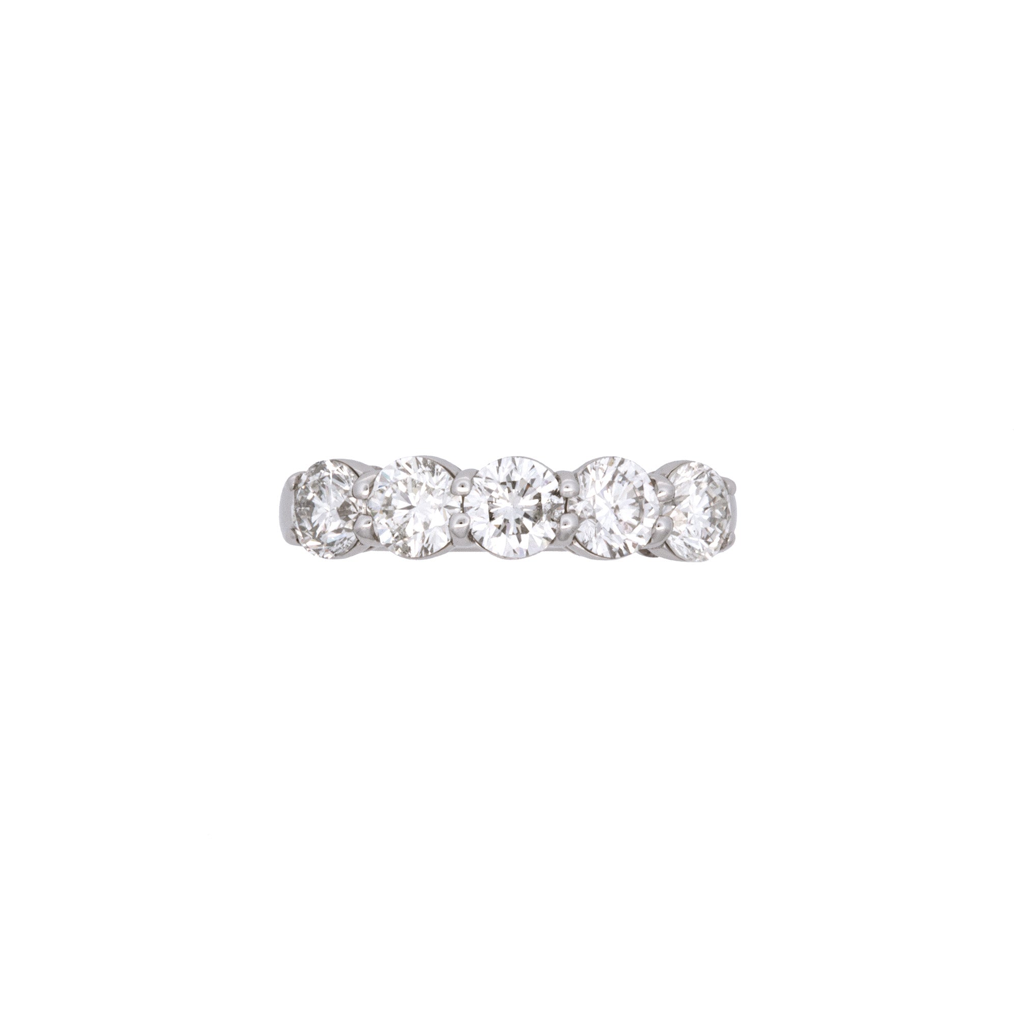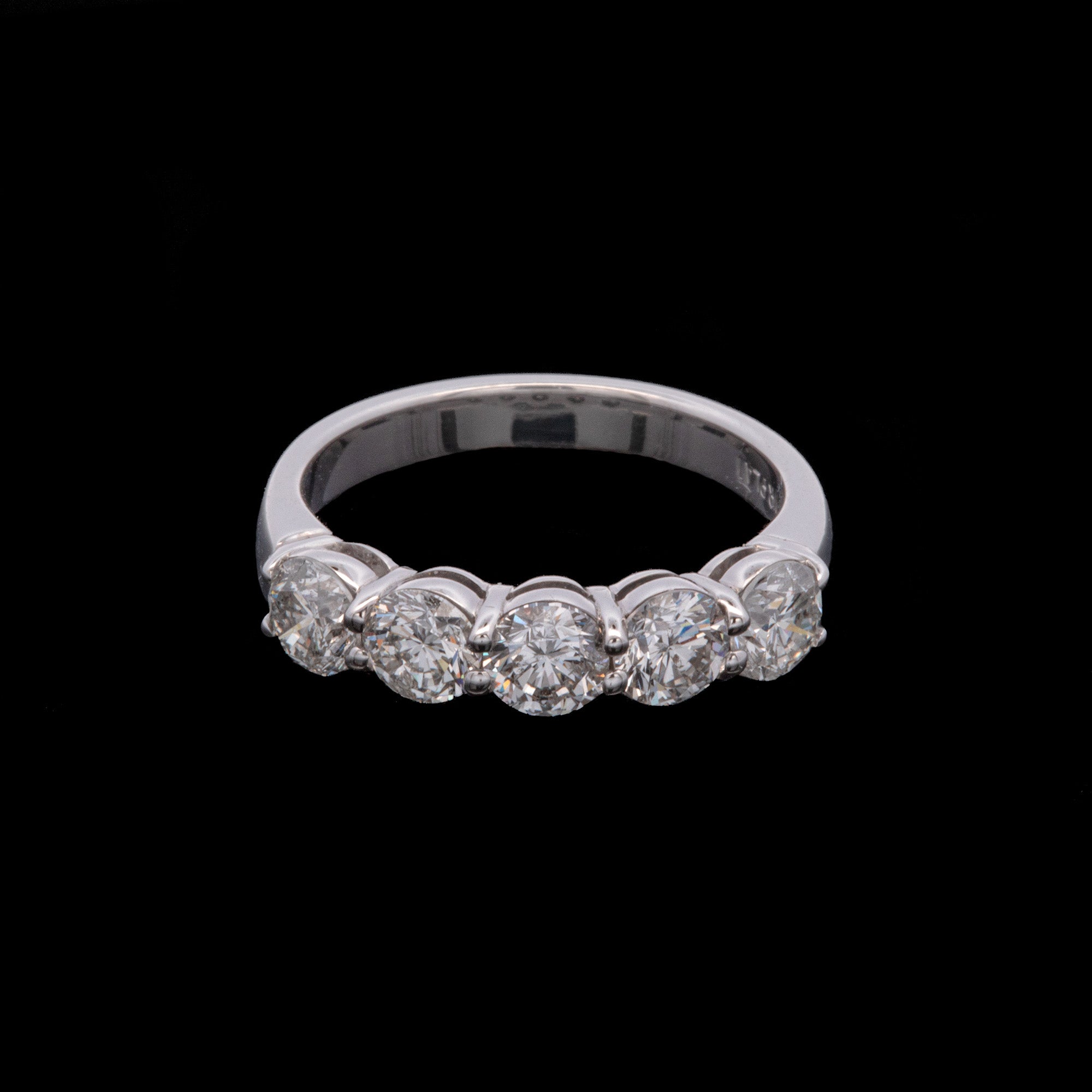 Platinum Diamond Five Stone Wedding Band. Diamonds Weigh A Total Of 1.55 Carats. Sizing Available.